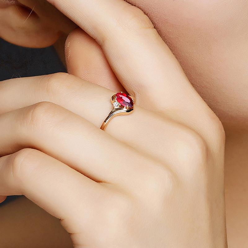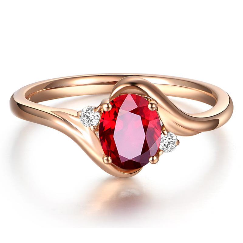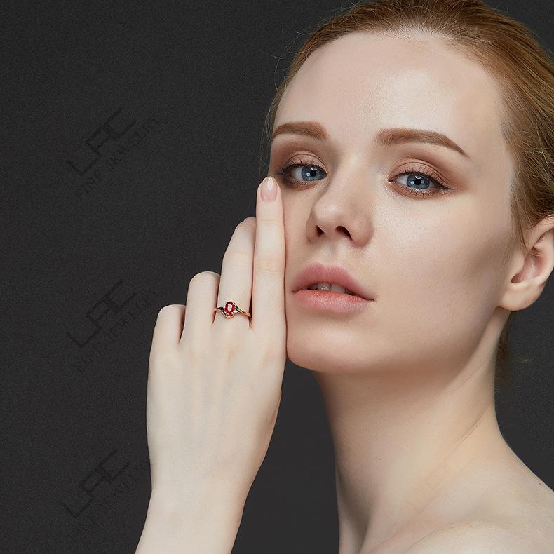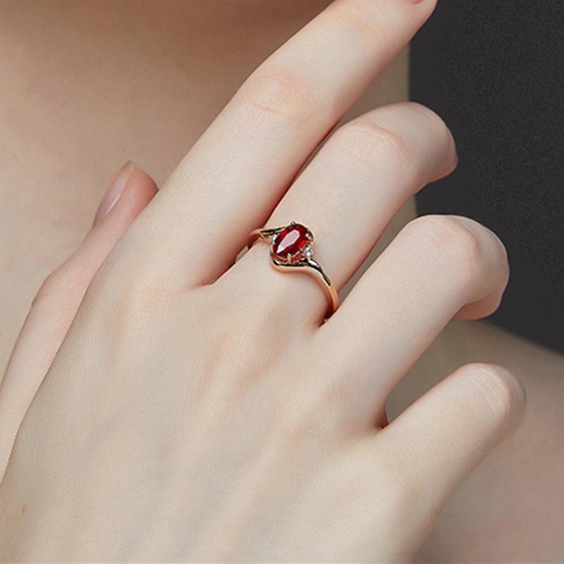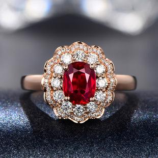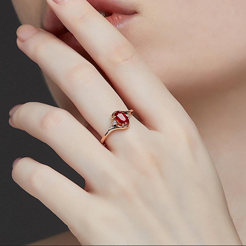 Anillo de tesoro de color con pago en vivo, moda femenina, anillo abierto de oro rosa con diamante rojo ovalado, anillo de rubí con sangre de pollo