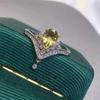 Anillo de diamantes ovalados de fuente viva para mujer, venta al por mayor de fábrica, anillo abierto, moda europea y americana, anillo de un quilate tipo huevo de paloma