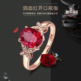 Anillo de mariposa con diamante rojo para mujer, chapado en cobre, oro rosa de 18 quilates, anillo abierto con imitación de turmalina roja sangre de paloma, anillo con gema de color.