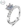 Anillo de diamante moissanita simulado de un quilate para mujer, fábrica mayorista de fuente en vivo, anillo abierto, corona, seis garras, anillo de circón