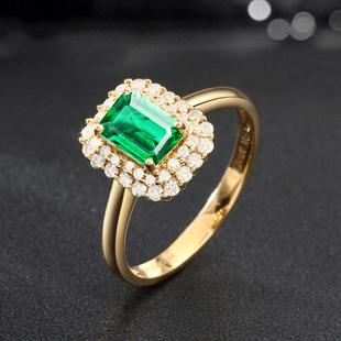 Anillo de turmalina verde artificial, chapado en cobre y oro de 18 quilates, abierto, con circón cuadrado y gema color esmeralda.