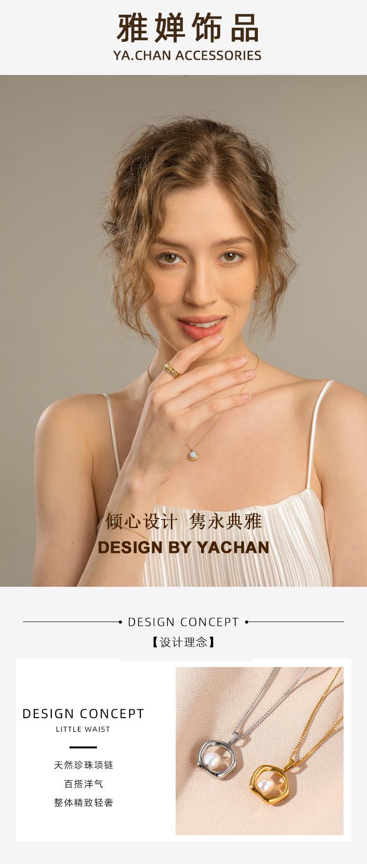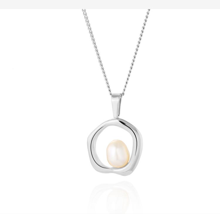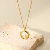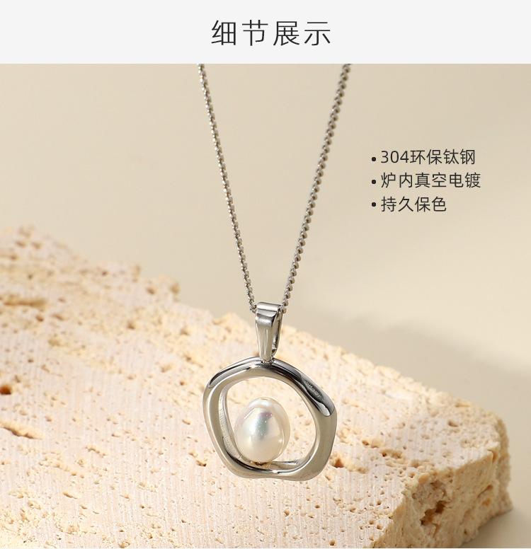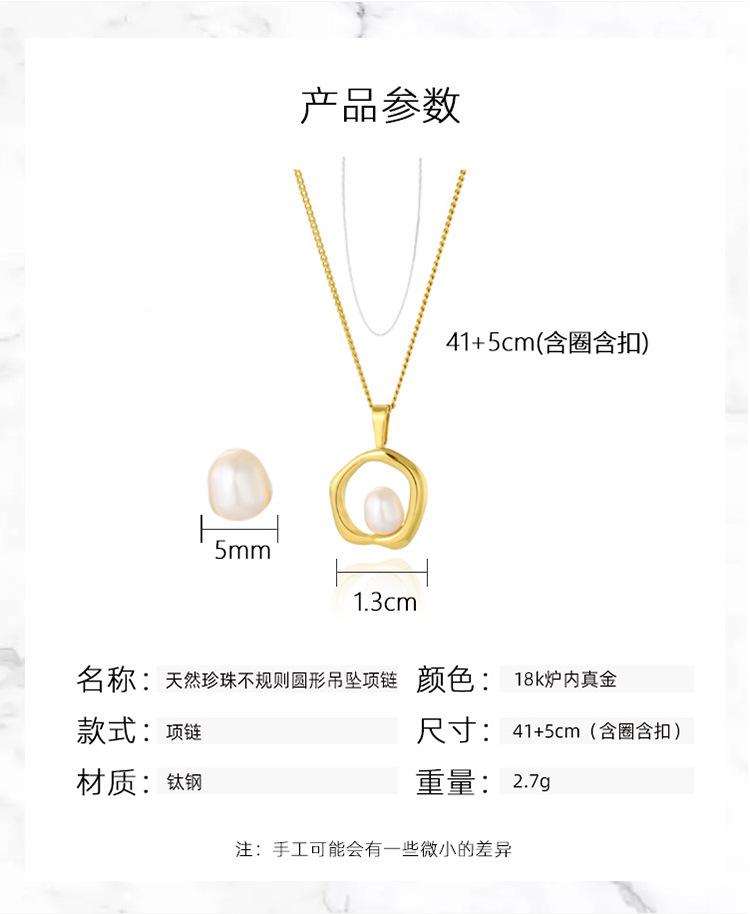 Collar de Acero de Titanio con Colgante de Perla de Anillo Irregular Chapado en Oro Real de 18K Diseño Retro Nicho Collar que No se Desvanece