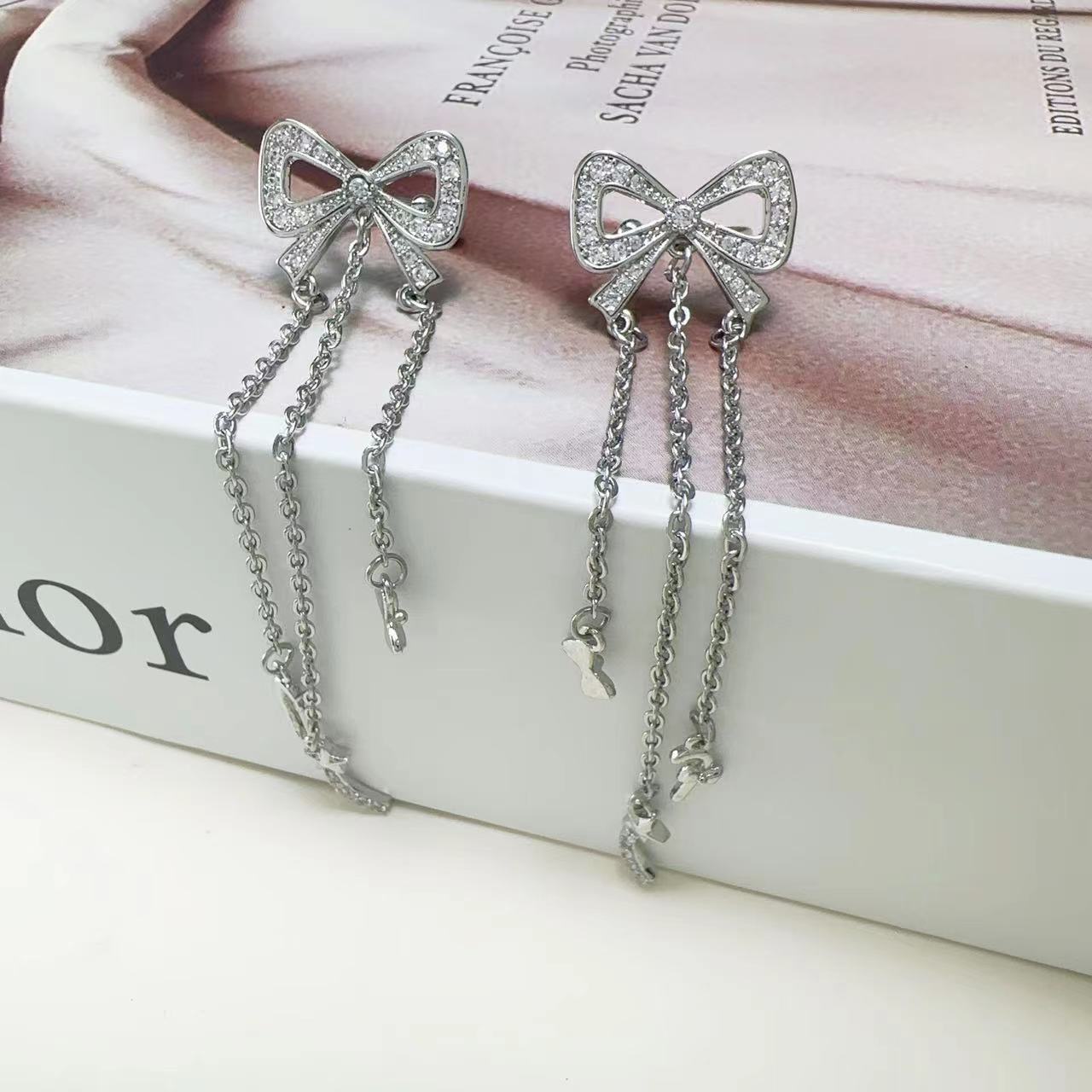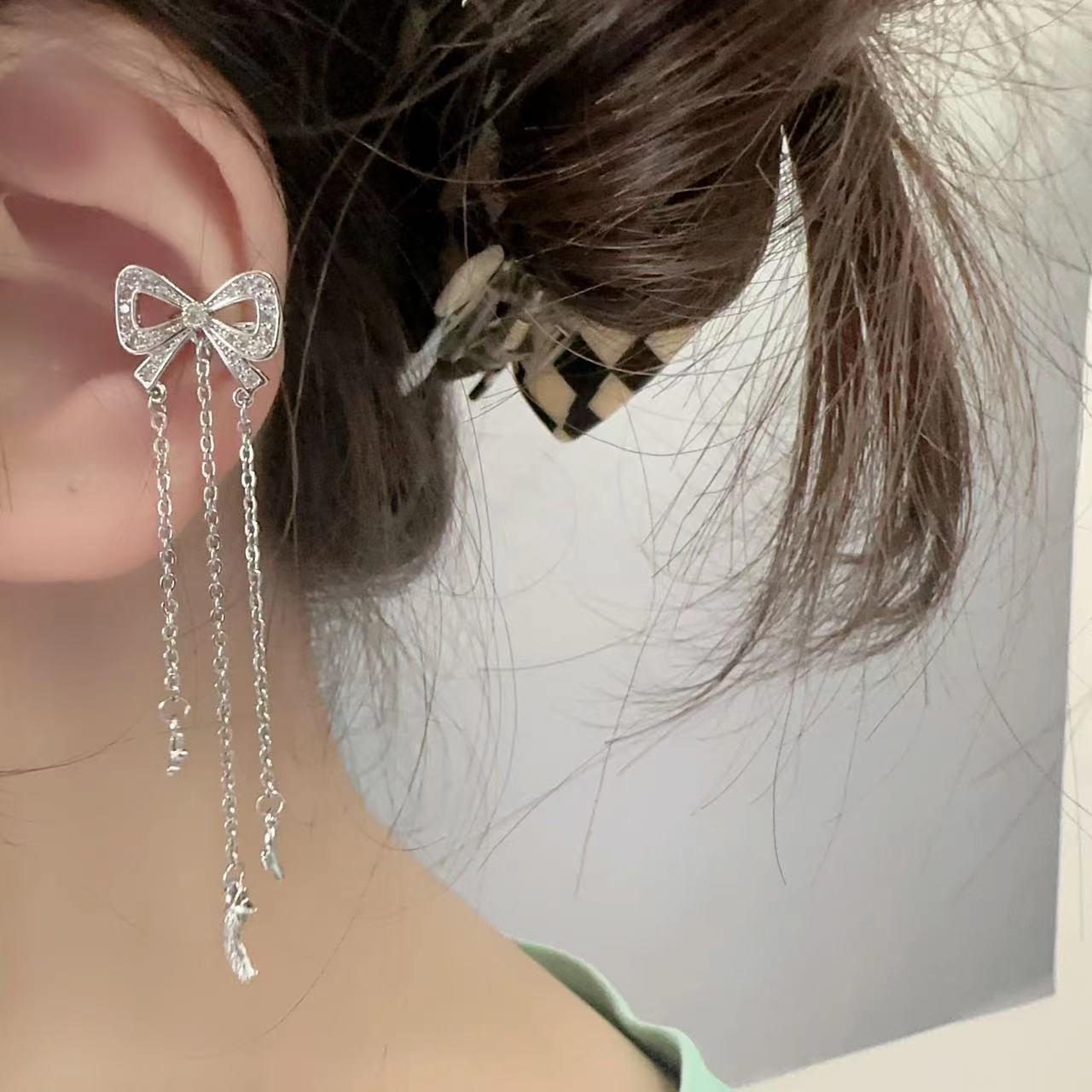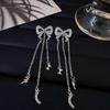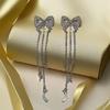 Pendientes largos con borlas y lazo de diamantes para mujer, diseño de nicho, ligeros, elegantes, de lujo, a la moda, que combinan con todo.