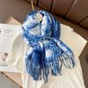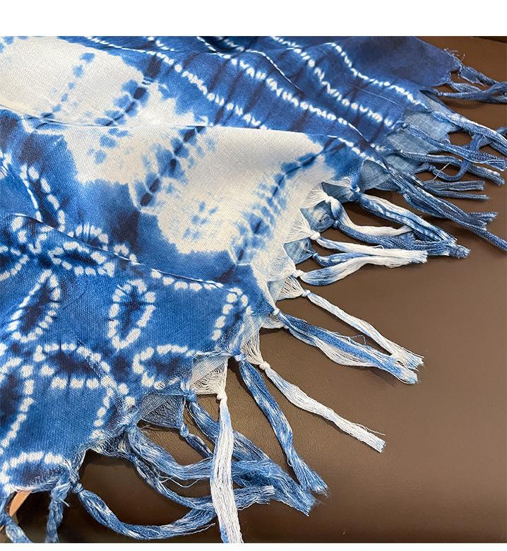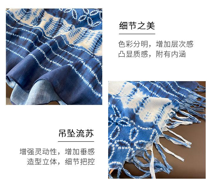 Bufanda larga azul de verano para vacaciones en la playa, de seda, para playa, primavera y otoño, cálida, de algodón y lino.