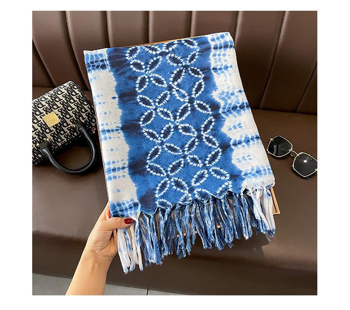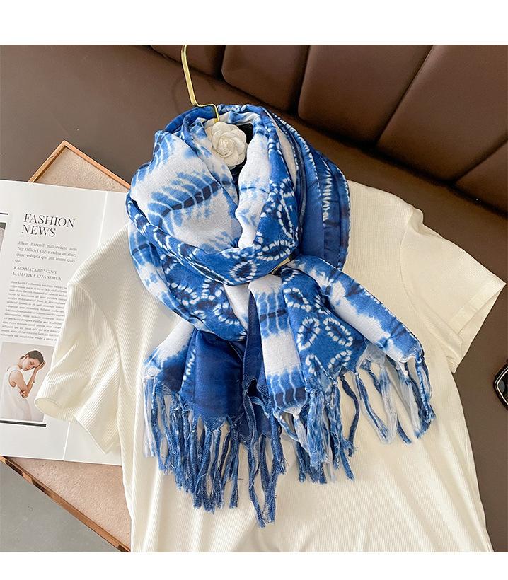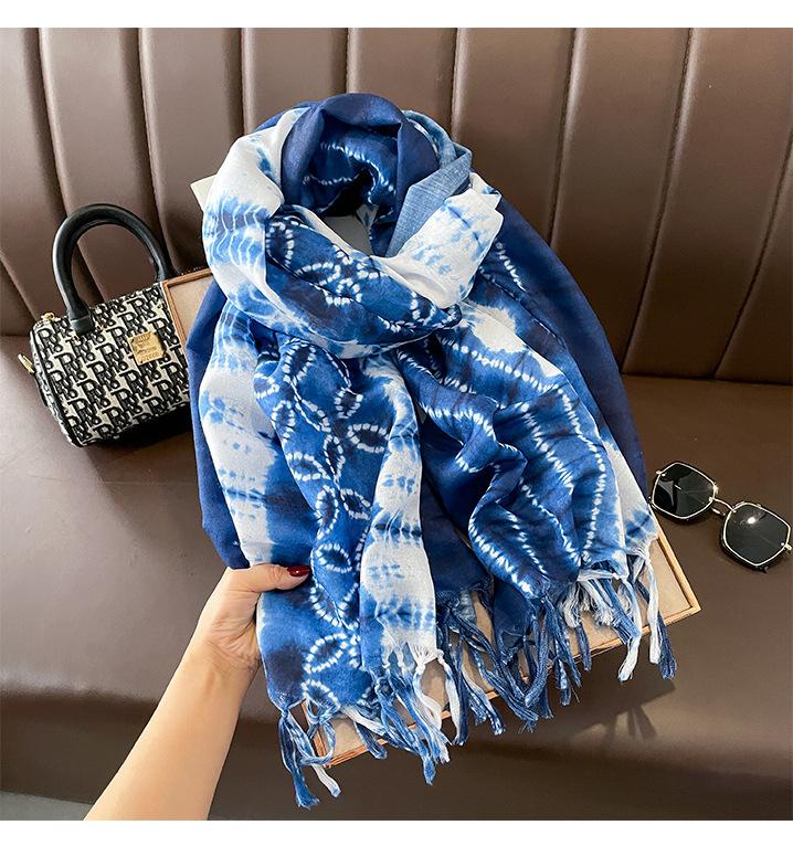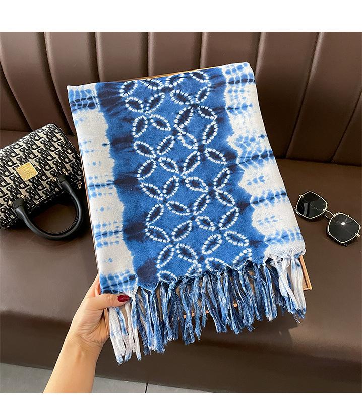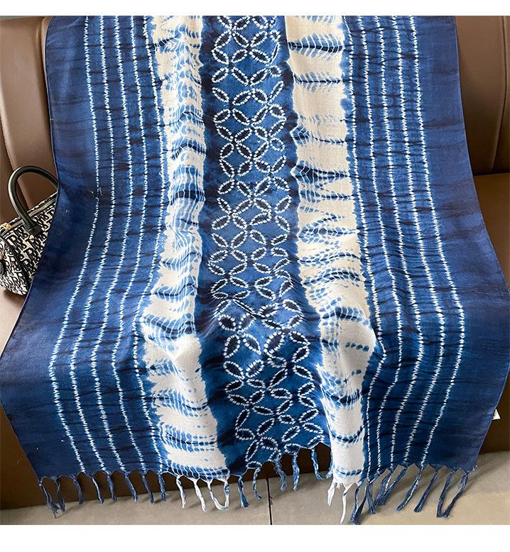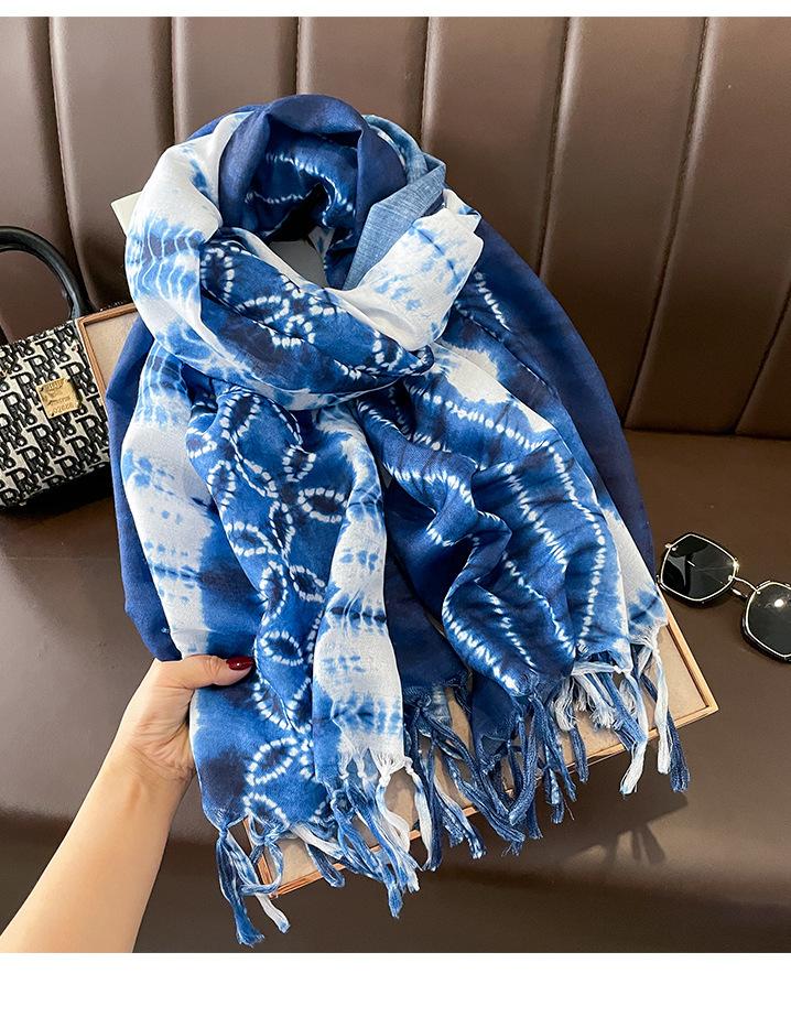 Bufanda de algodón y lino con protección solar de verano 2023, estilo étnico, estampada, para viajes, cálida y para habitaciones con aire acondicionado.
