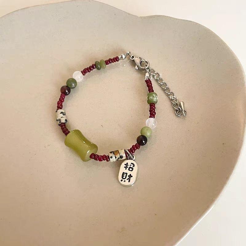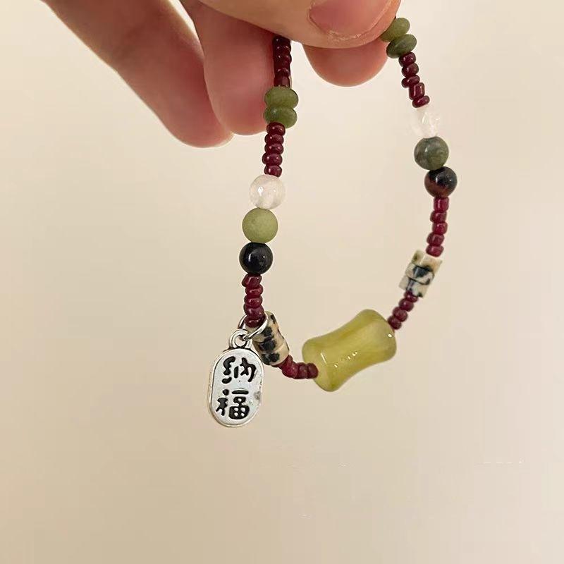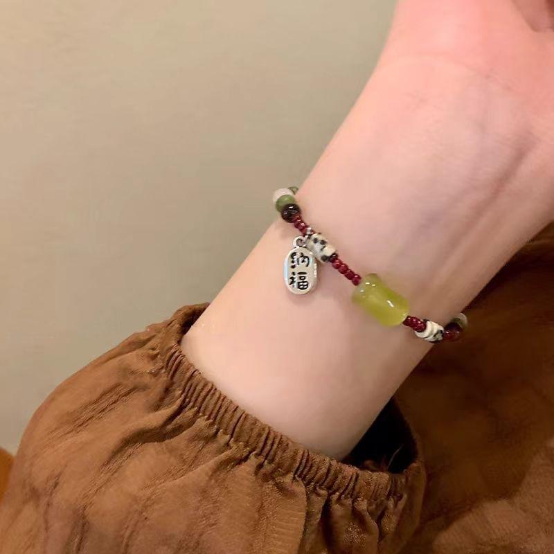 Nueva pulsera de cuentas de piedra natural de la suerte de estilo chino para mujer, ligera, de lujo, con nicho, exquisita pulsera de diseño vintage.