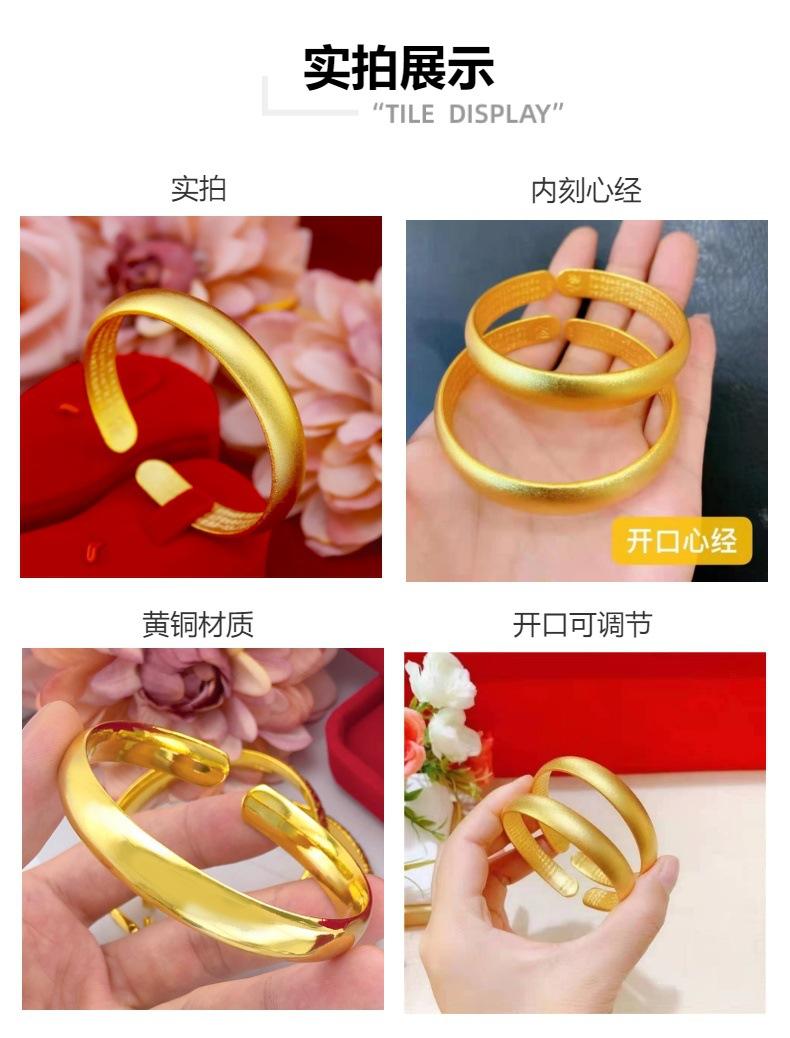 Joyería Shajin Gran Misericordia Maldición Sutra del Corazón Pulsera para Damas Abertura Engrosada 10mm Pulsera de Oro Imitación Pulsera Herencia Método Antiguo