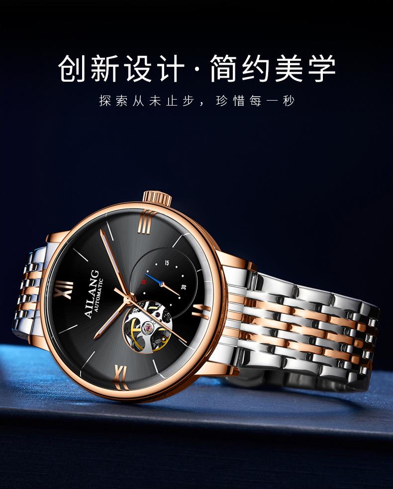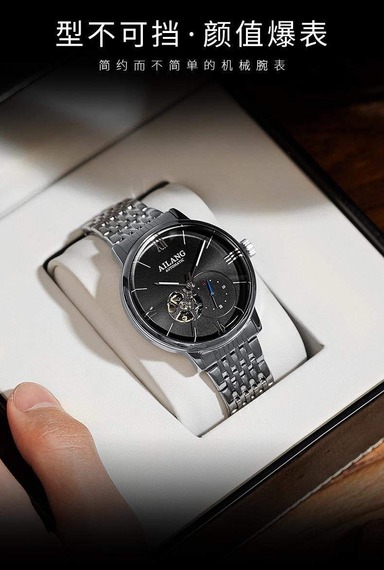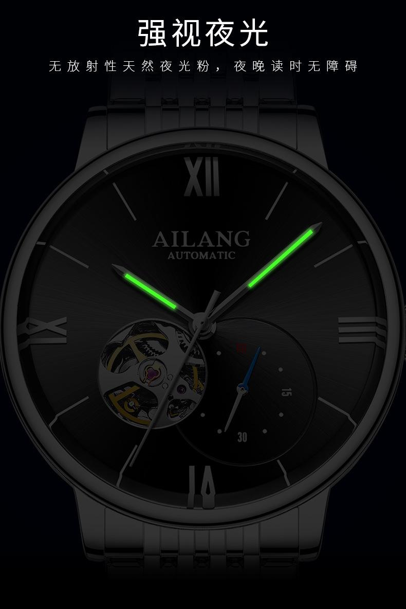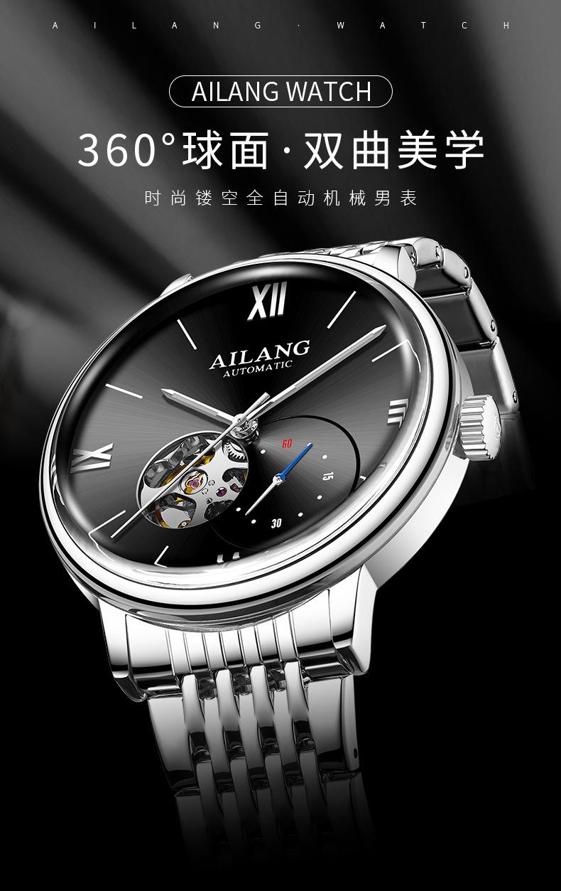 Reloj AILANG para hombre, reloj mecánico con correa de acero, movimiento de negocios, reloj automático hueco, resistente al agua, reloj de tendencia al por mayor
