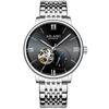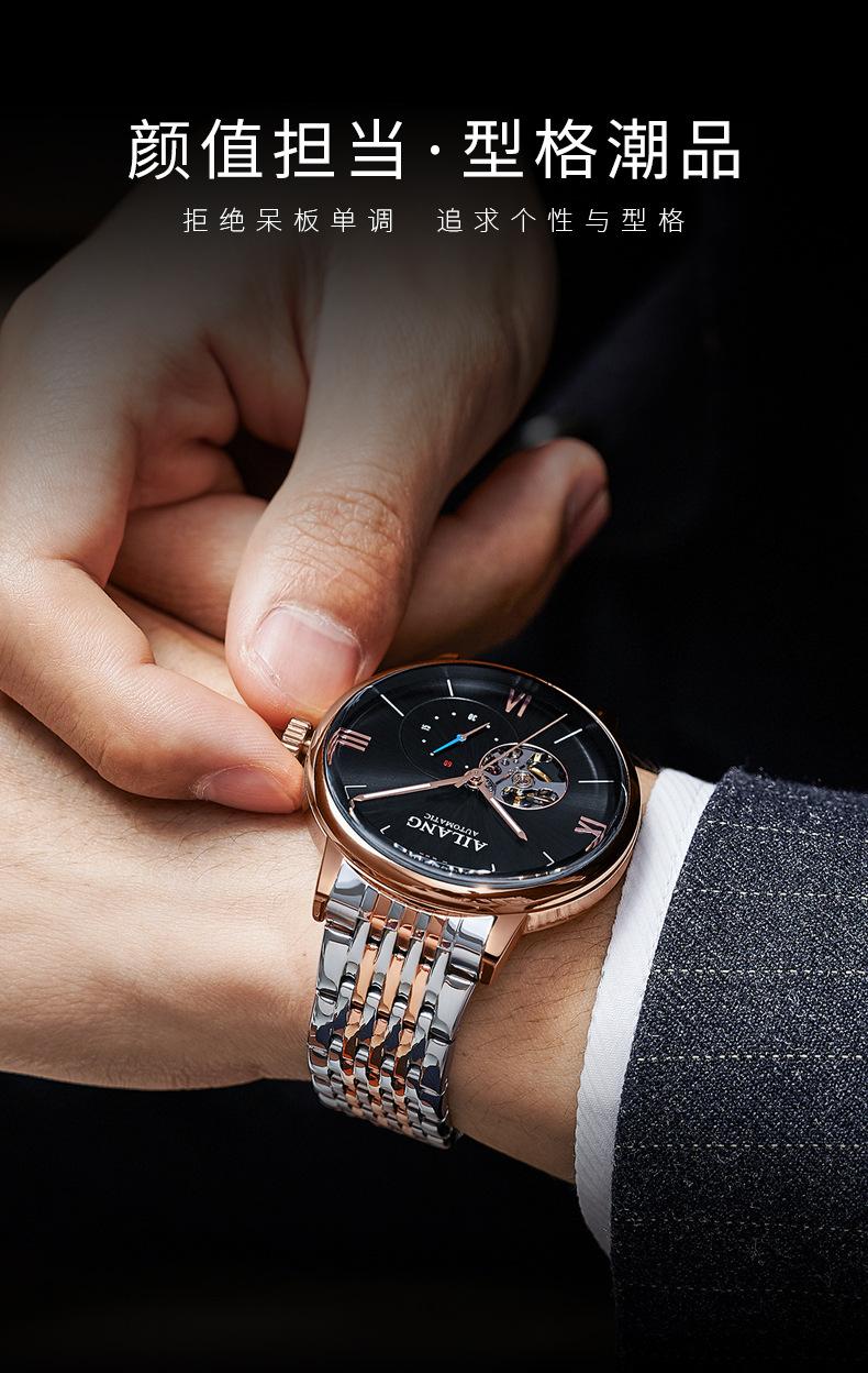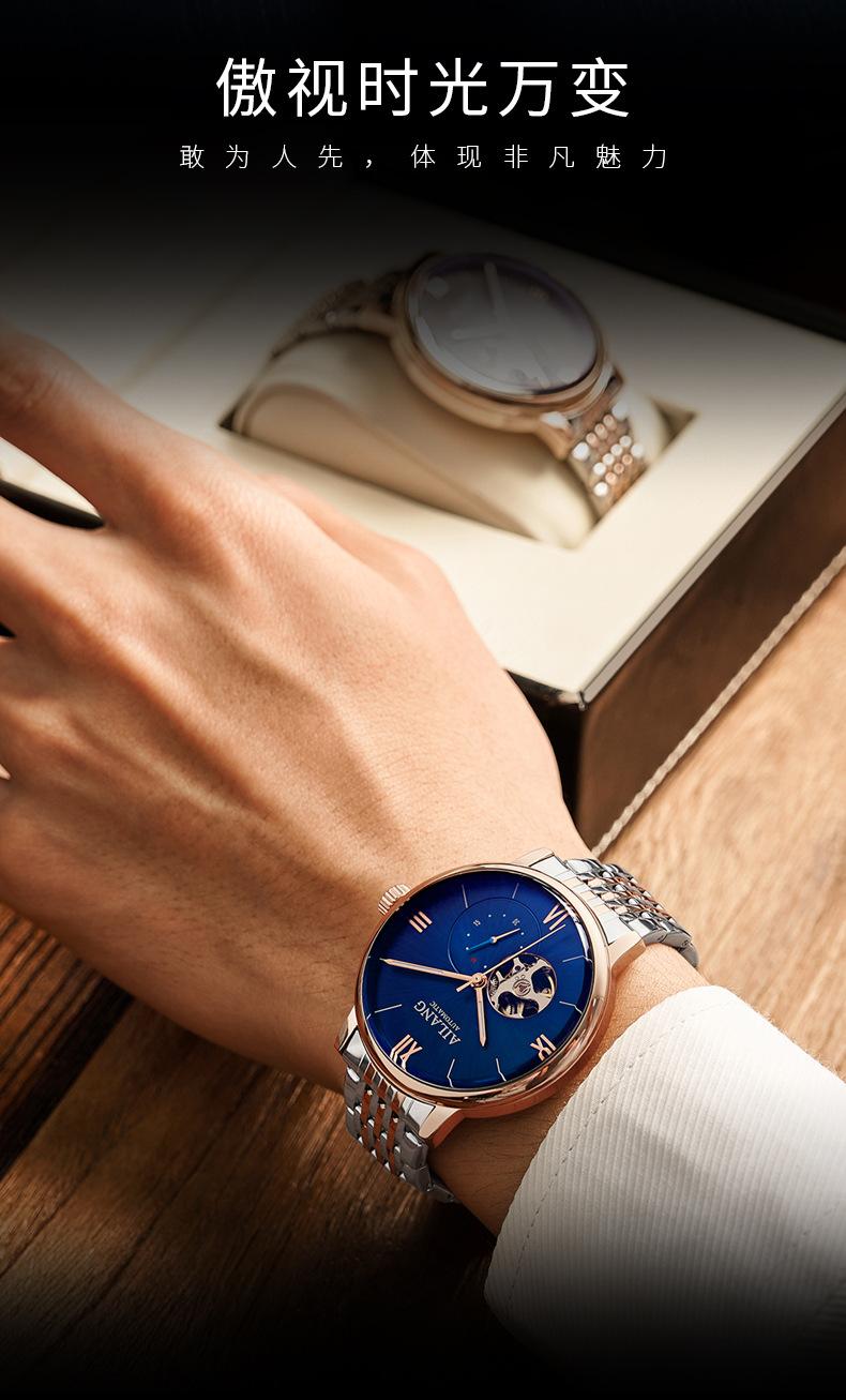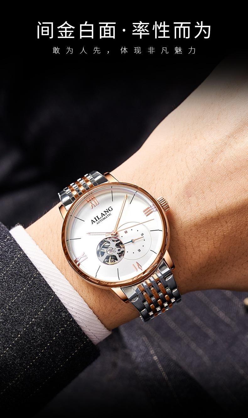 Reloj AILANG para hombre, reloj mecánico con correa de acero, movimiento de negocios, reloj automático hueco, resistente al agua, reloj de tendencia al por mayor