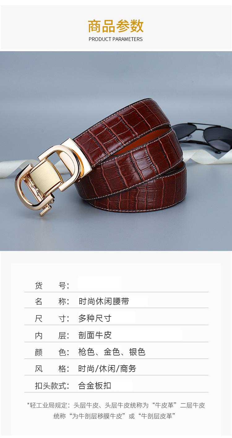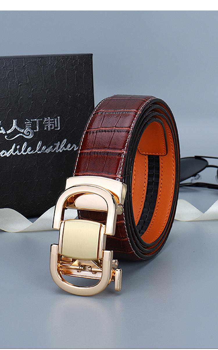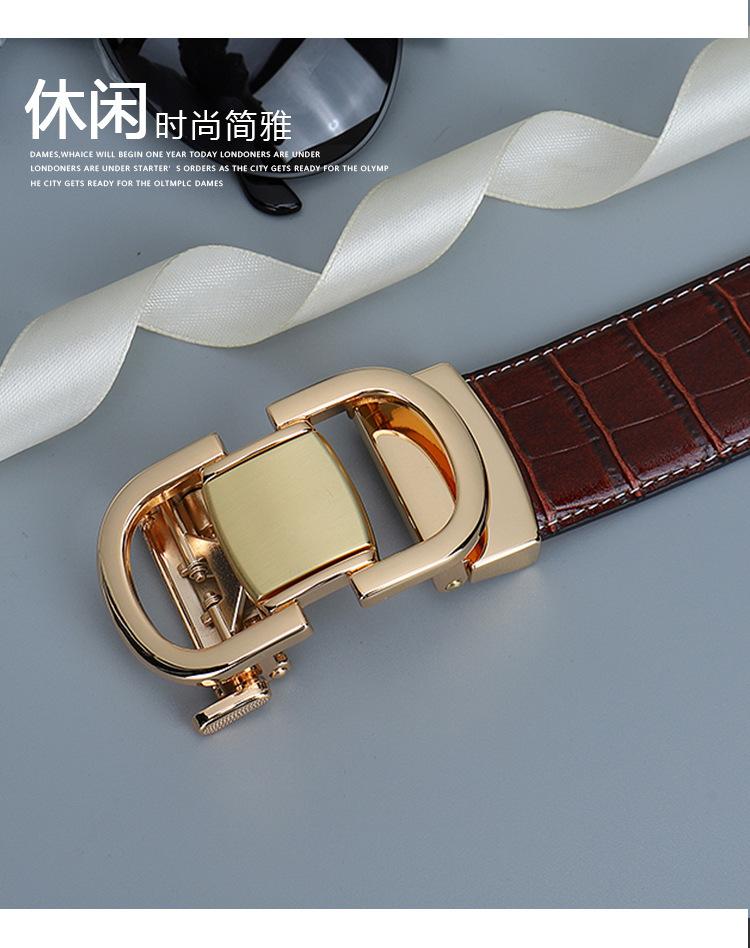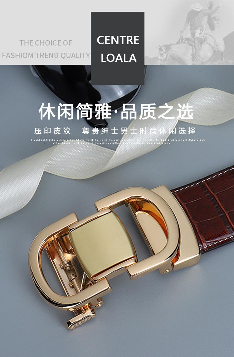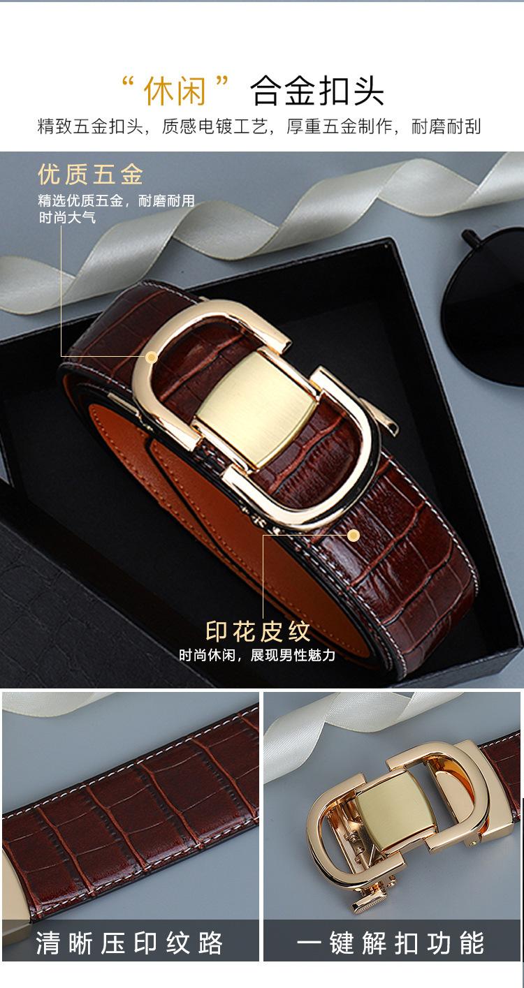 Cinturón de Cuero para Hombre, Cinturón de Hebilla Automática de Cuero Genuino para Pantalones, Cinturón Casual Simple, Cinturón de Venta Caliente Transfronterizo