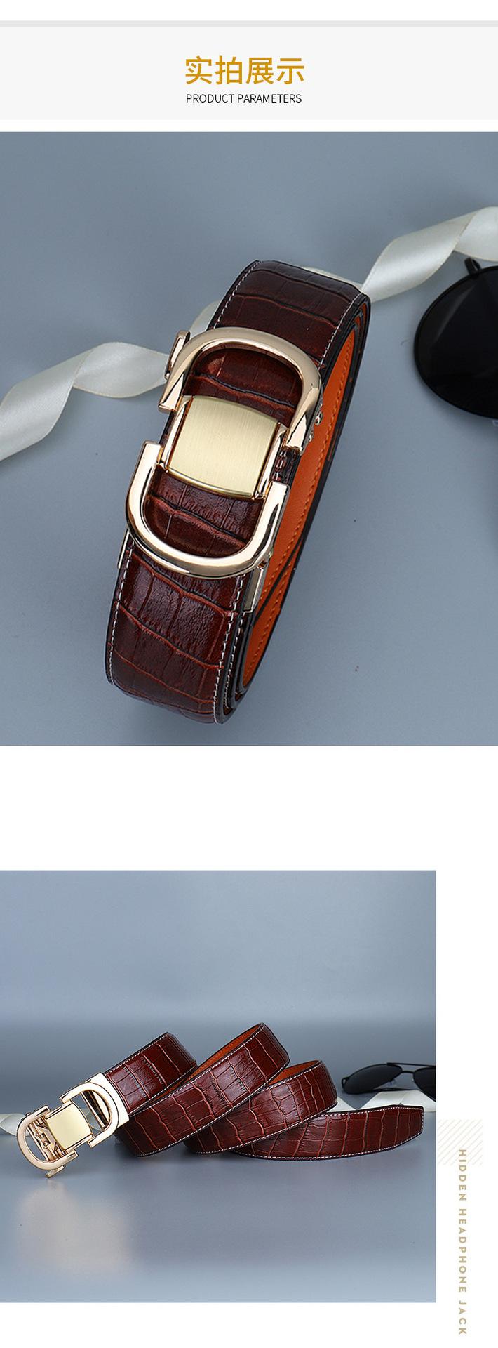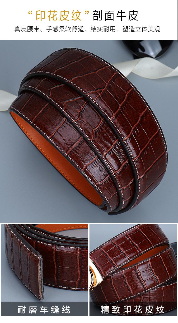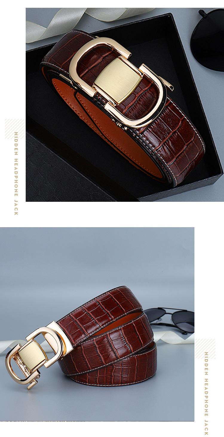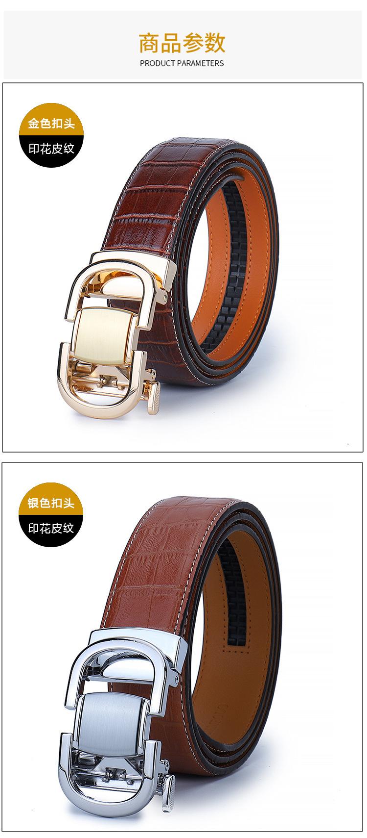 Cinturón de Cuero para Hombre, Cinturón de Hebilla Automática de Cuero Genuino para Pantalones, Cinturón Casual Simple, Cinturón de Venta Caliente Transfronterizo