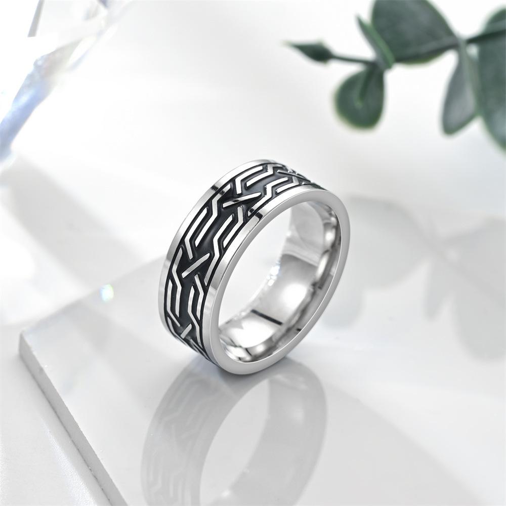 Joyería de anillo para hombre en stock venta caliente acero de titanio no se desvanece corrosión mancha anillo negro joyería europea y americana de acero inoxidable