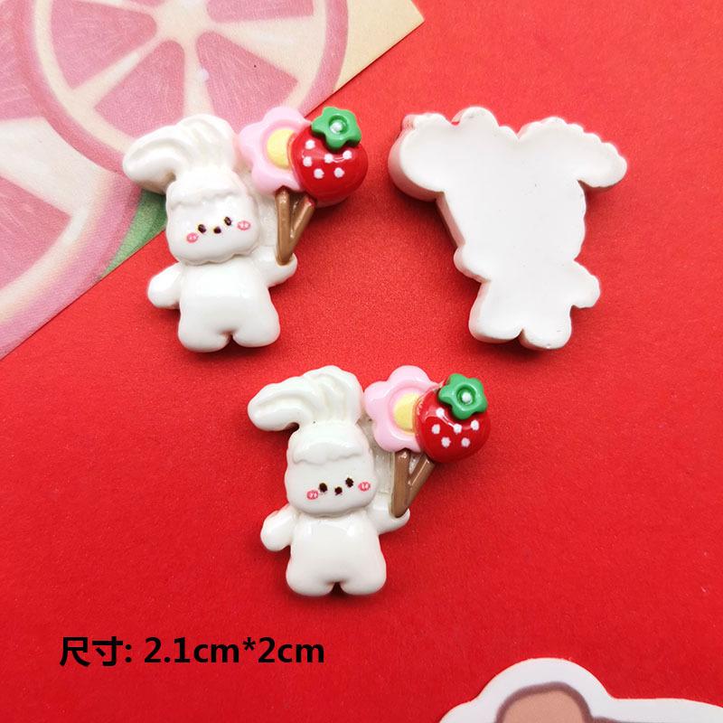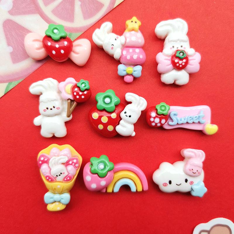 Ramo brillante de dibujos animados, conejo de fresa, accesorios de resina para bricolaje, pegamento en crema, funda para teléfono, tocado, horquilla, parche para taza de agua