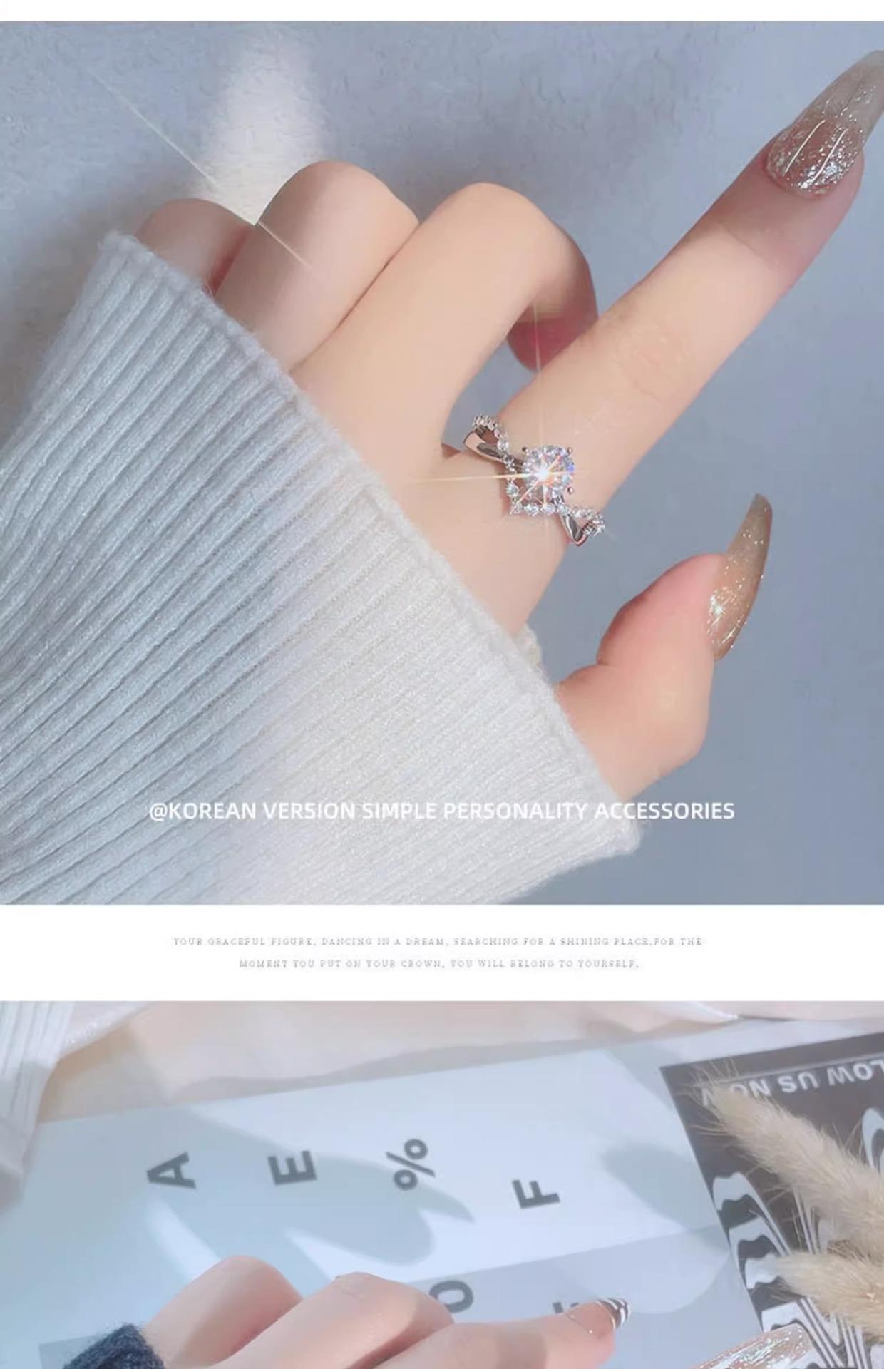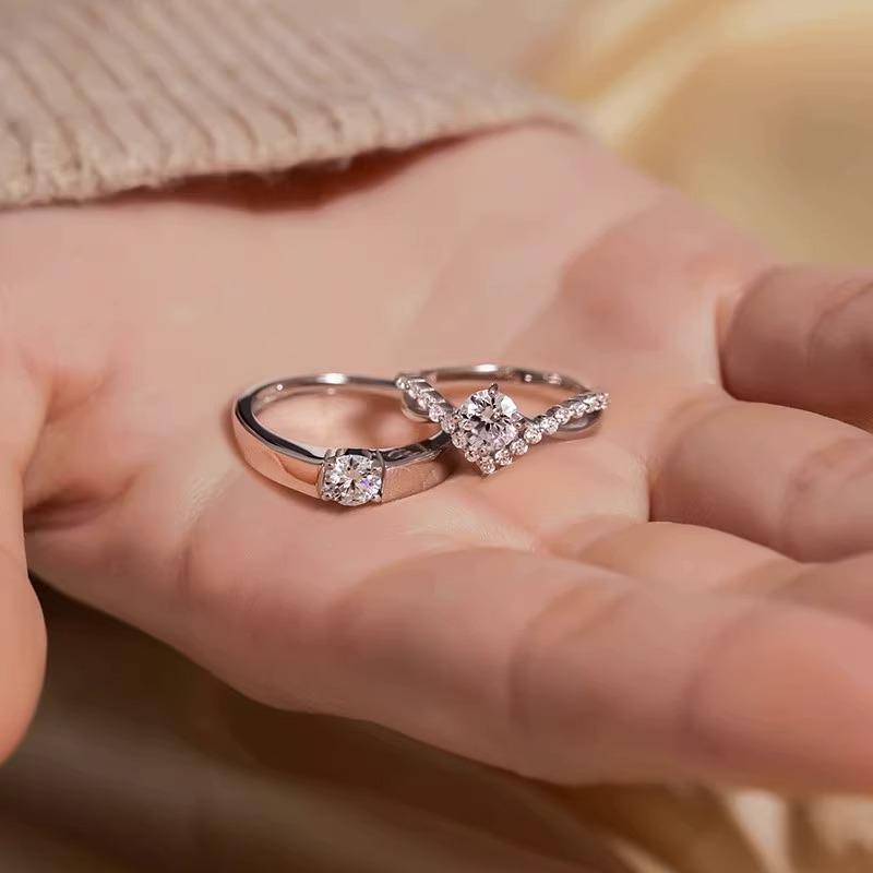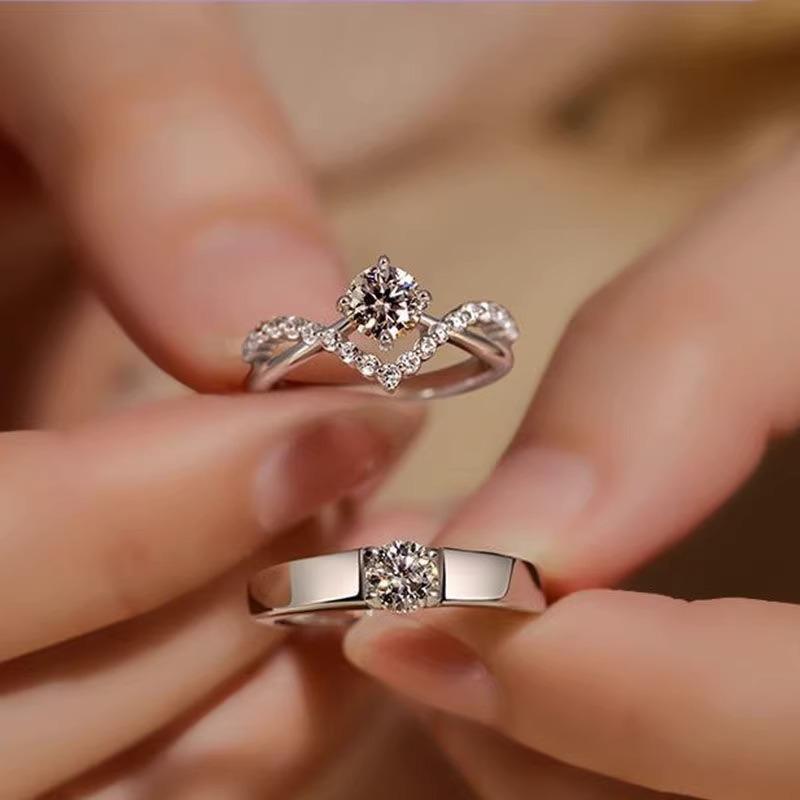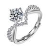 Anillo de diamantes de simulación de 1 quilate anillo de pareja anillo de cuatro garras anillo femenino ajustable en vivo boda boda anillo fábrica venta al por mayor