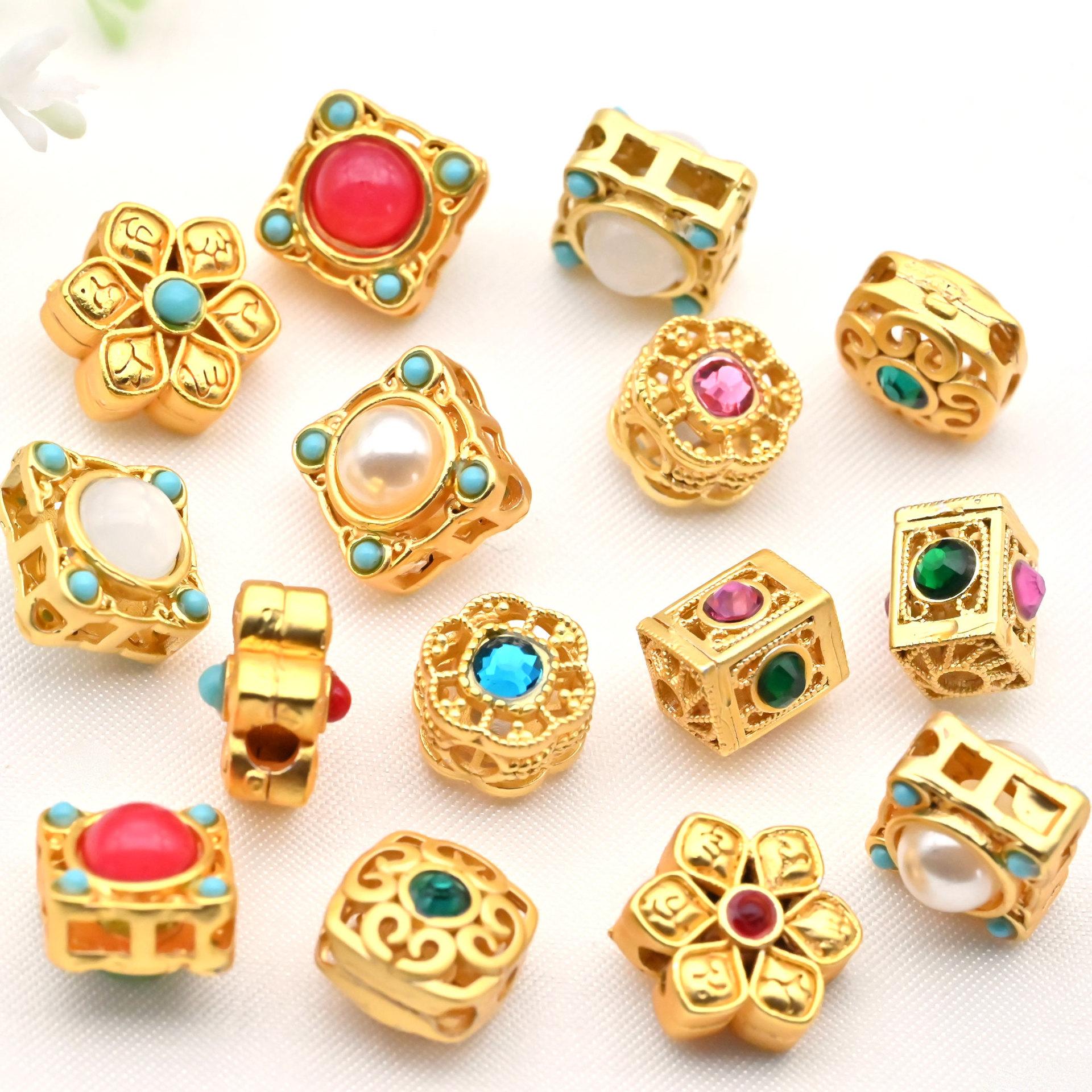 Nepal antiguo arena dorada oro estilo accesorios artesanía diy joyería hecha a mano pulsera pulsera accesorios cuentas espaciadoras cuentas sueltas