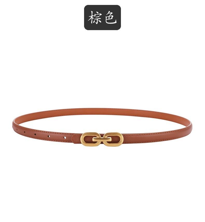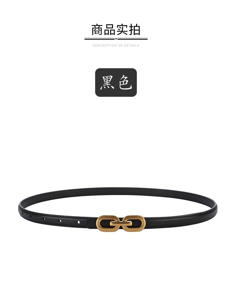 Cinturón de mujer de piel de vaca pura negra de primera capa, estilo coreano informal, sencillo y combinable, fino y decorativo.