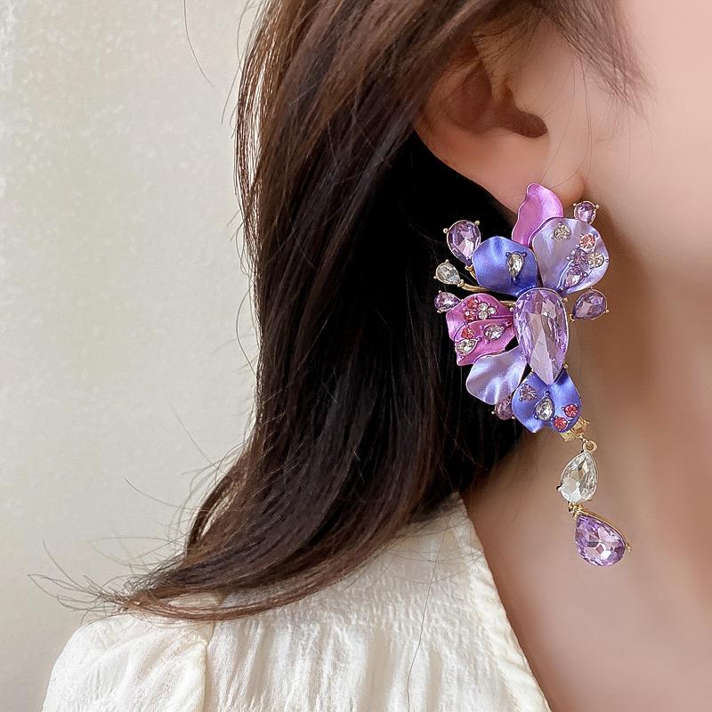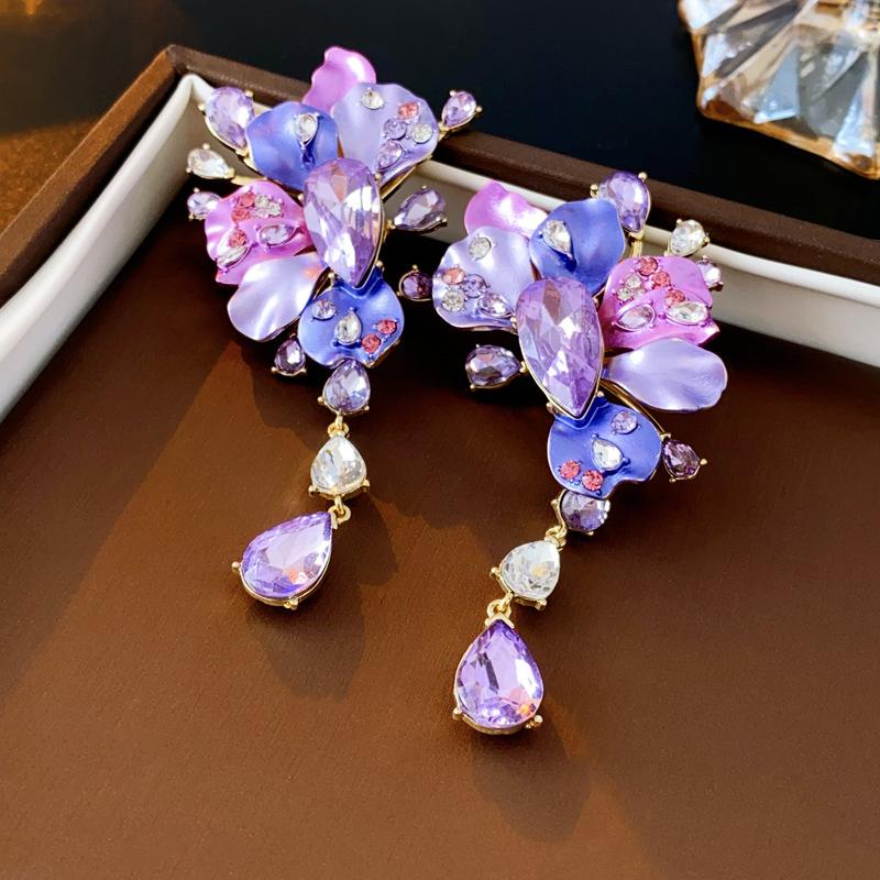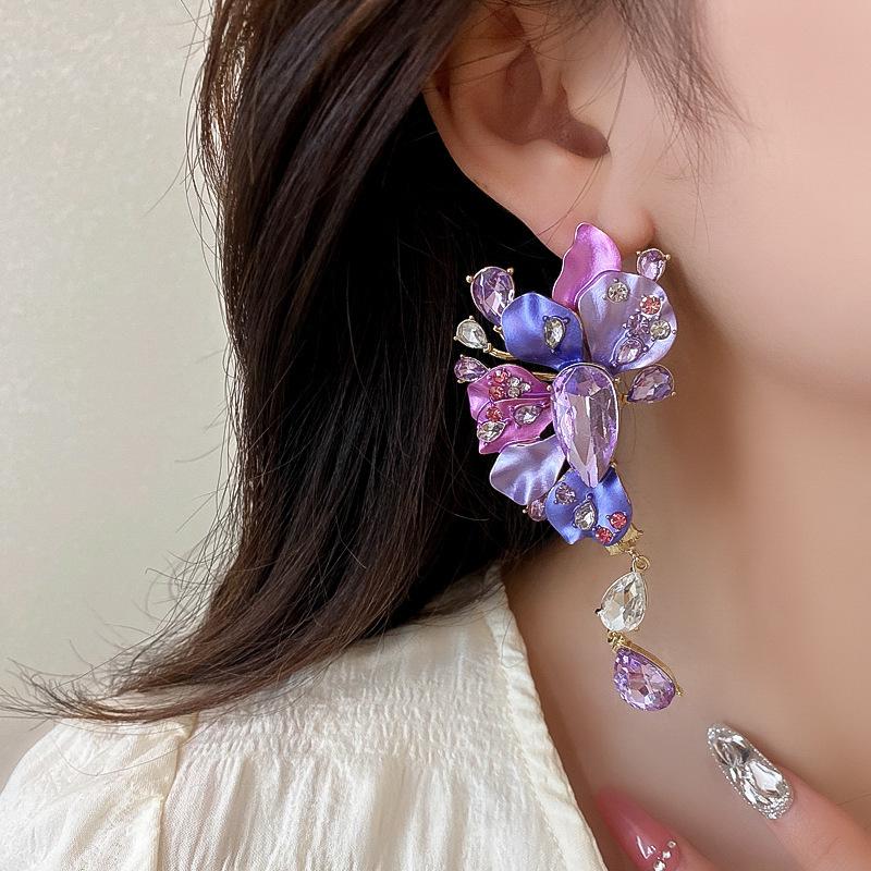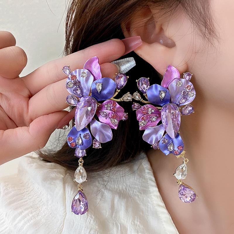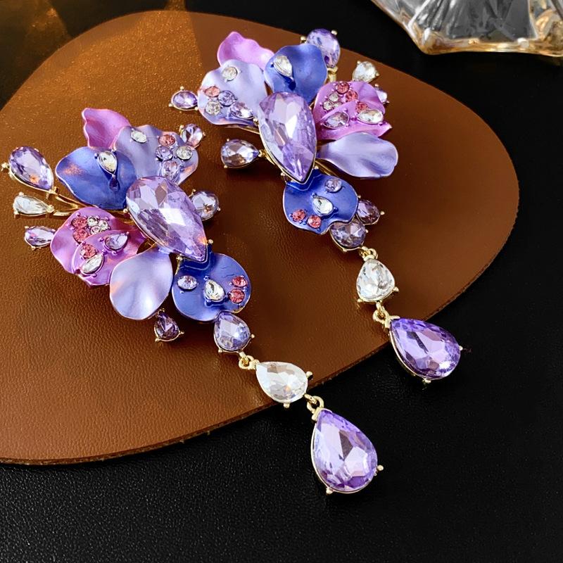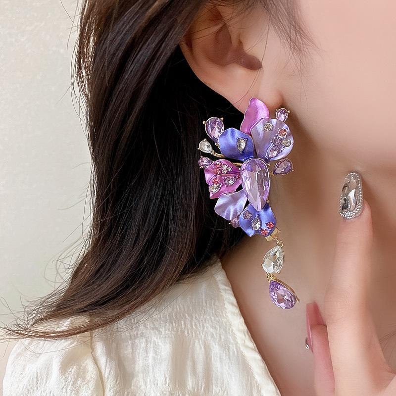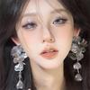 Pendientes largos con borlas de plata y flor de diamante retro, estilo europeo y americano, elegantes y exagerados, con personalidad de nicho, de alta gama para mujer.