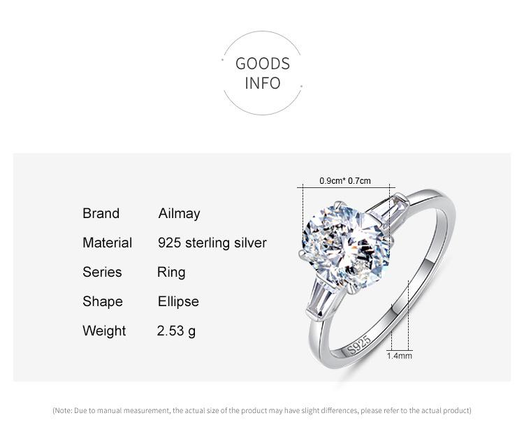 Anillo transfronterizo de plata de ley 925 para mujer, europeo y americano, óvalo, diamante artificial de 1 quilate, anillo de diamante artificial, entrega de una pieza