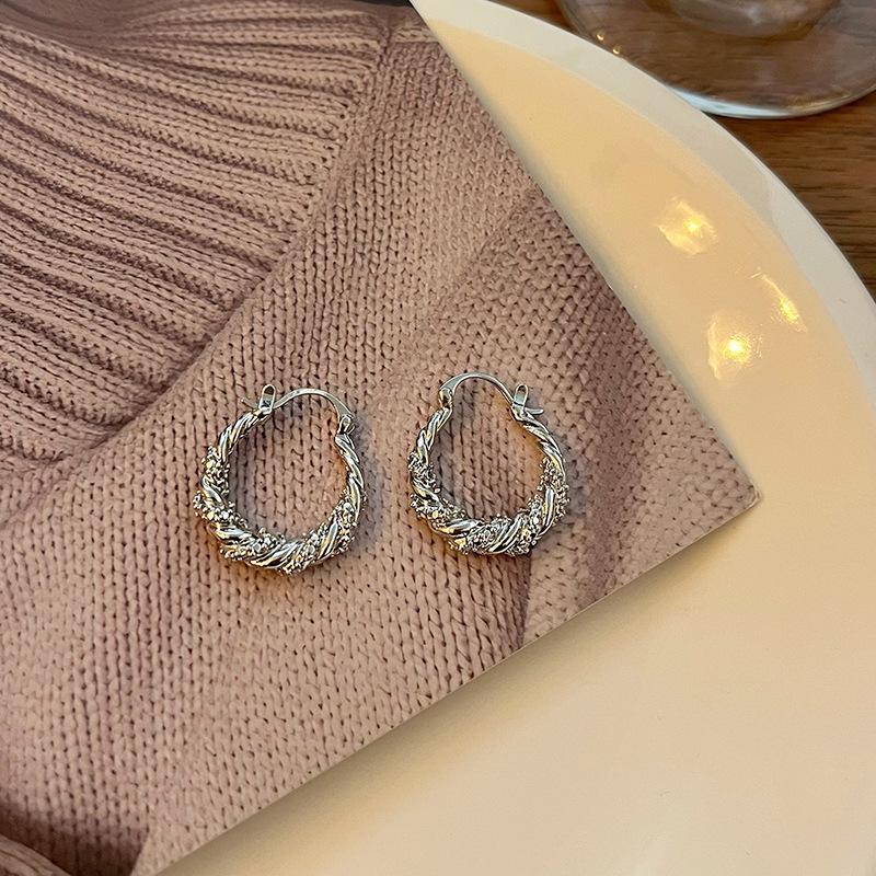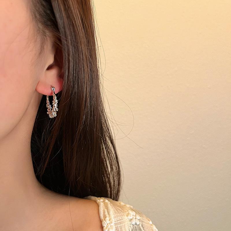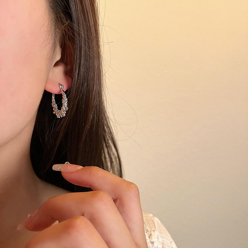 Nuevos pendientes de hebilla de oreja de diamante de destello de bobinado de alta calidad, ligeros, de lujo, de nicho, con personalidad única, pendientes de botón para mujer, venta al por mayor