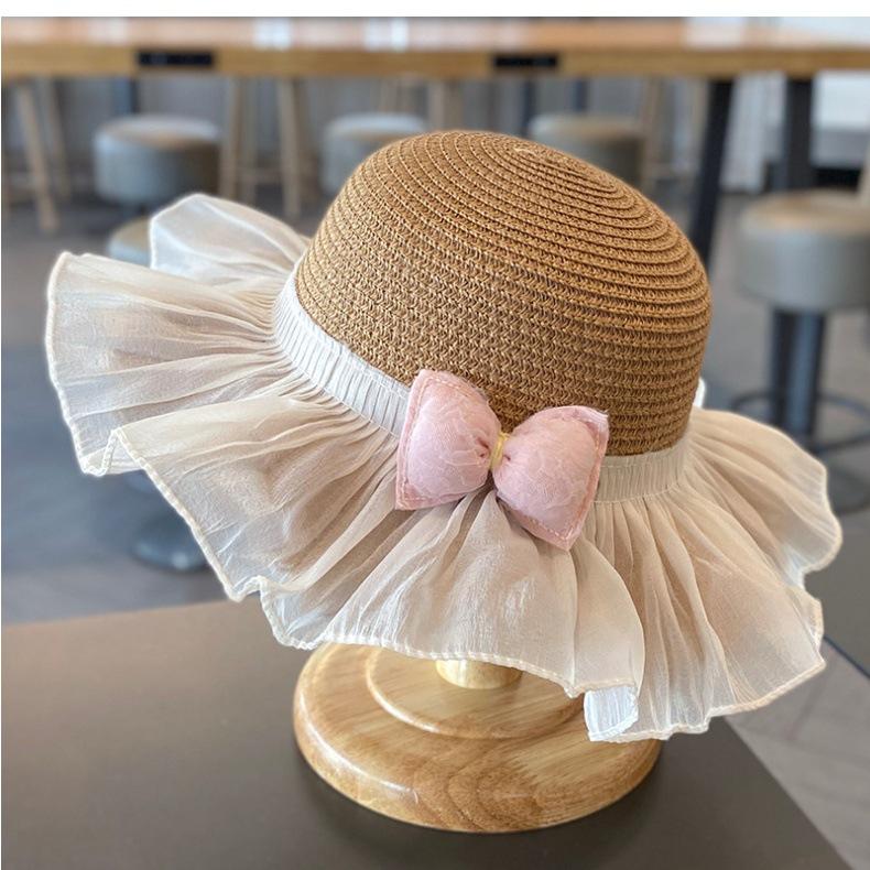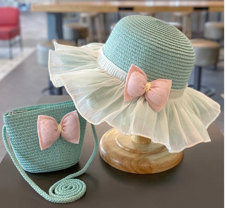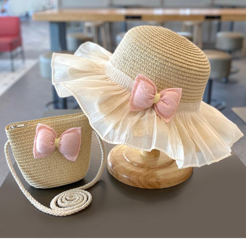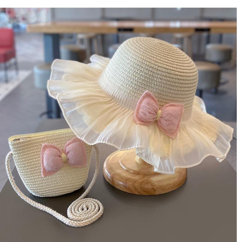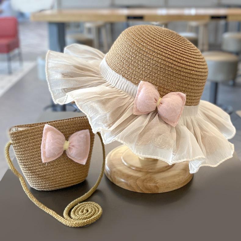 Sombrero de paja para niña de verano, sombrero de ala grande para bebé, sombrero de playa con protección solar, sombrero de pescador para niña pequeña, bolso