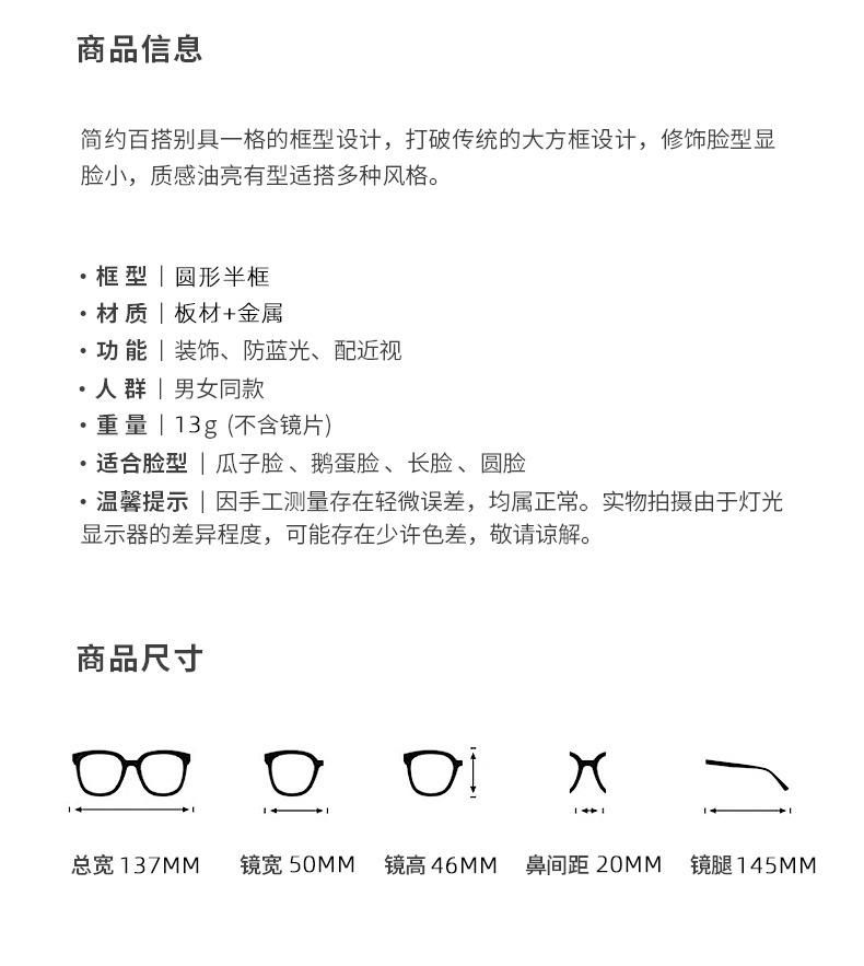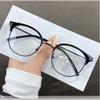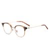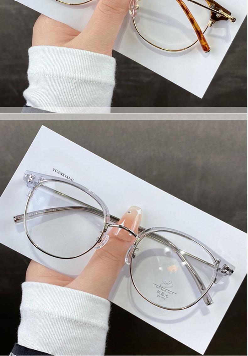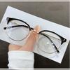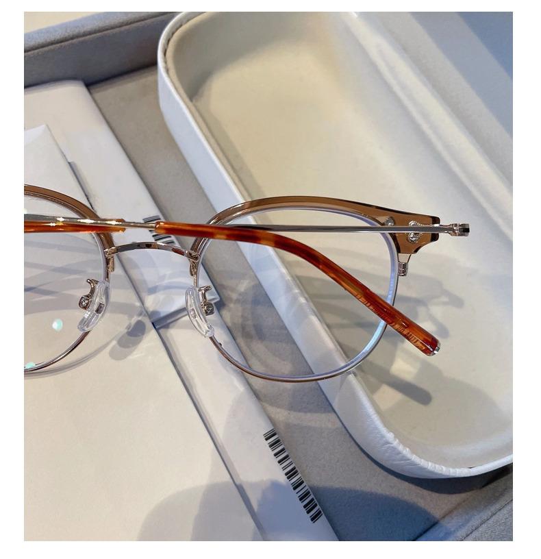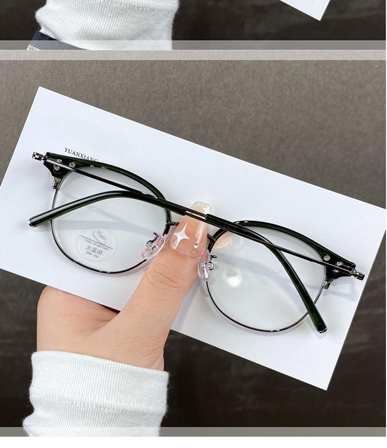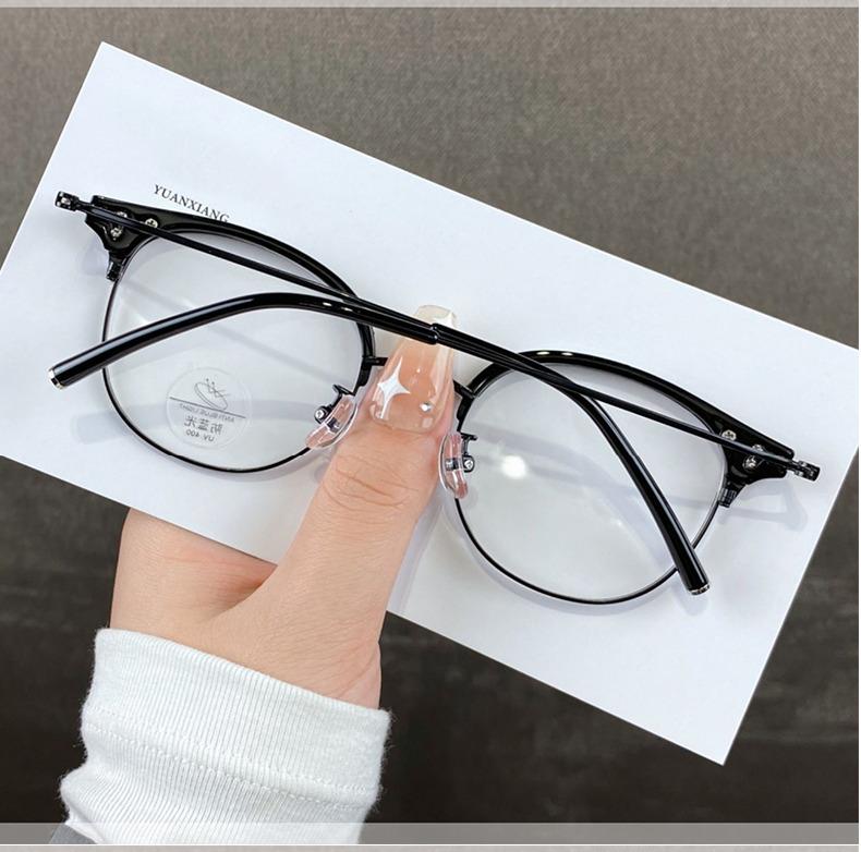 Gafas de media montura negras estilo japonés, estilo retro artístico, para mujer, con cara redonda cuadrada, adelgazantes, lisas, con marco para miopía