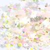 Concha mixta, corazón de melocotón, PVC, arte de uñas láser, pequeñas lentejuelas, bricolaje, slime, material de relleno de cristal