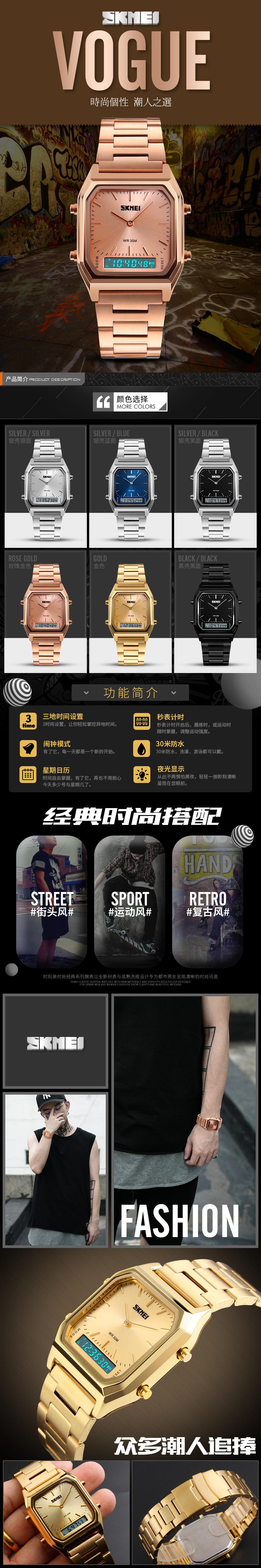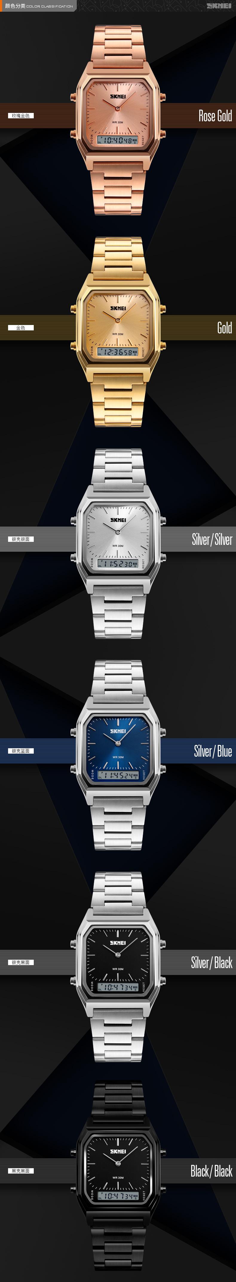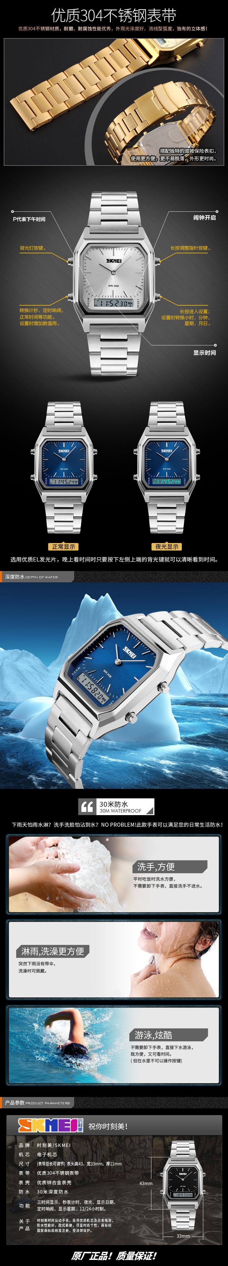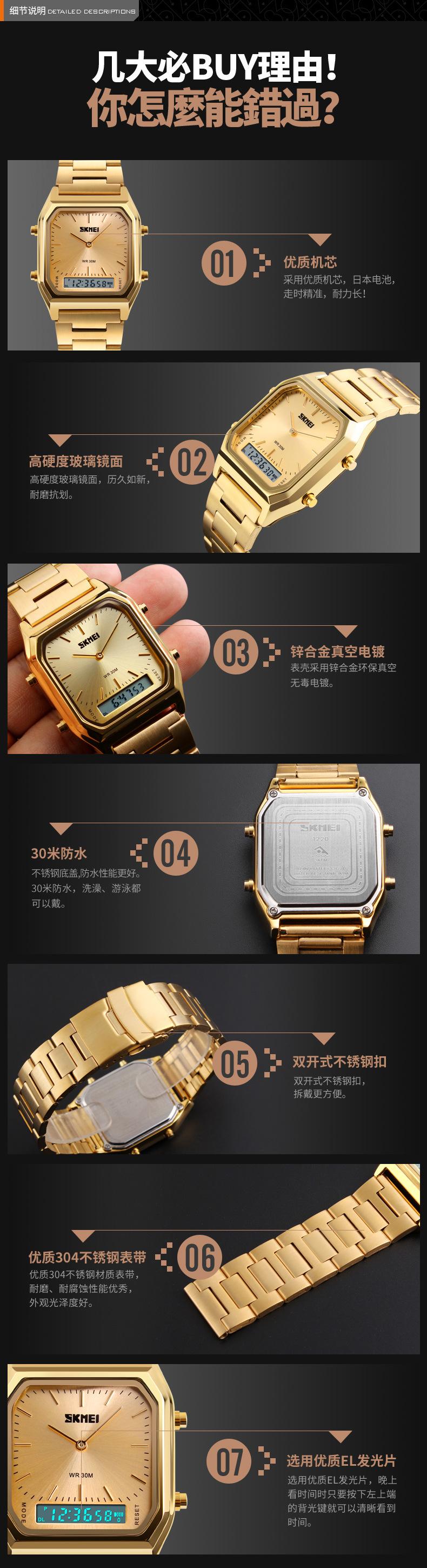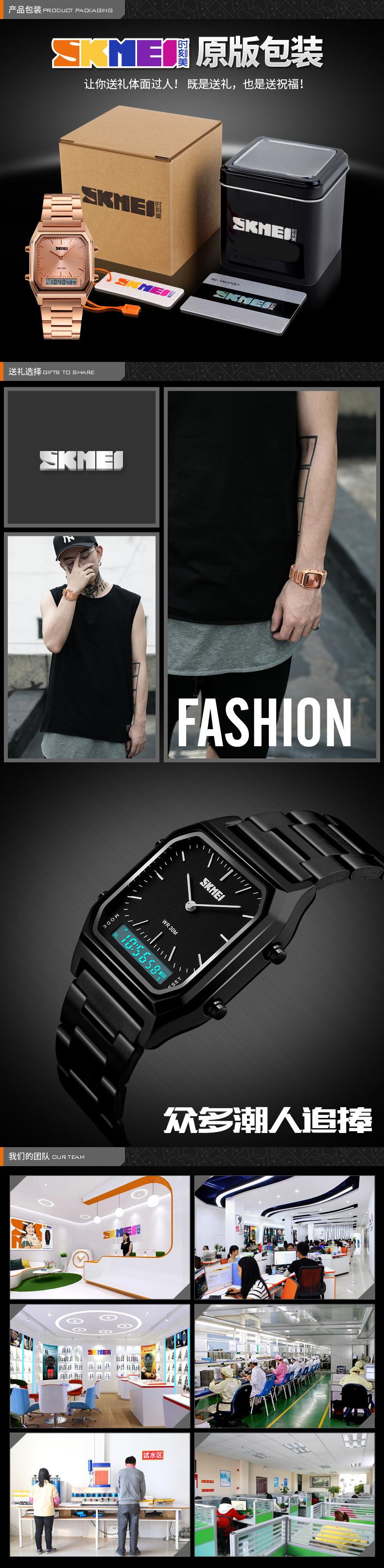 | Material | Caja de aleación de zinc, correa de acero inoxidable, espejo de vidrio engrosado y endurecido, cubierta inferior de acero inoxidable, hebilla de acero inoxidable. |