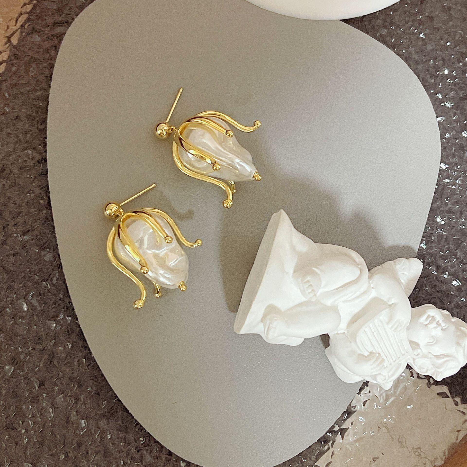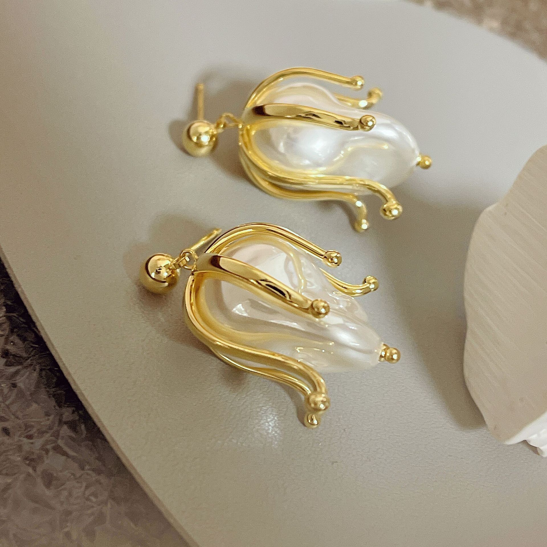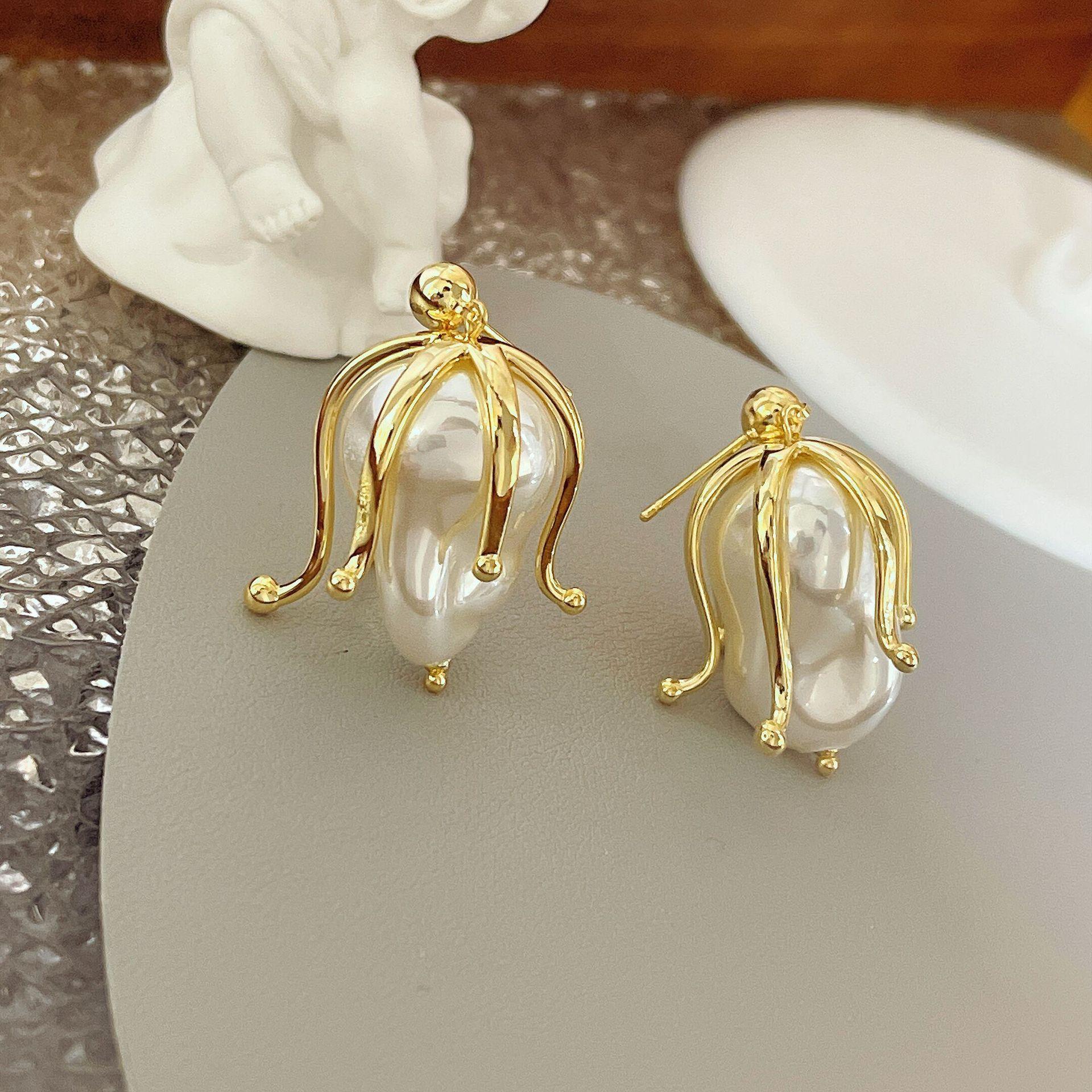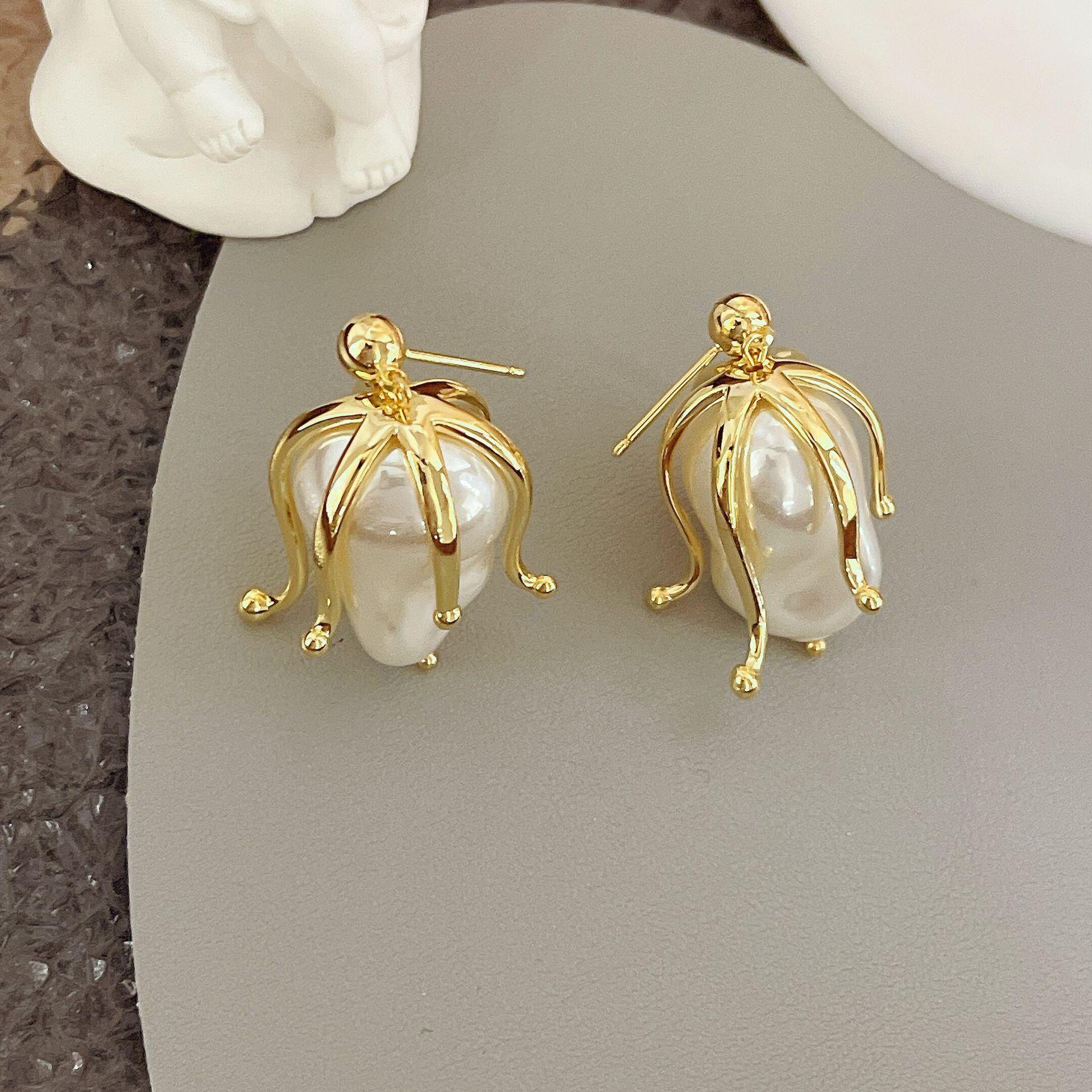 Pendientes de flores de perla exageradas estilo retro francés, temperamento dulce, alta gama, estilo frío único, pendientes que combinan con todo.