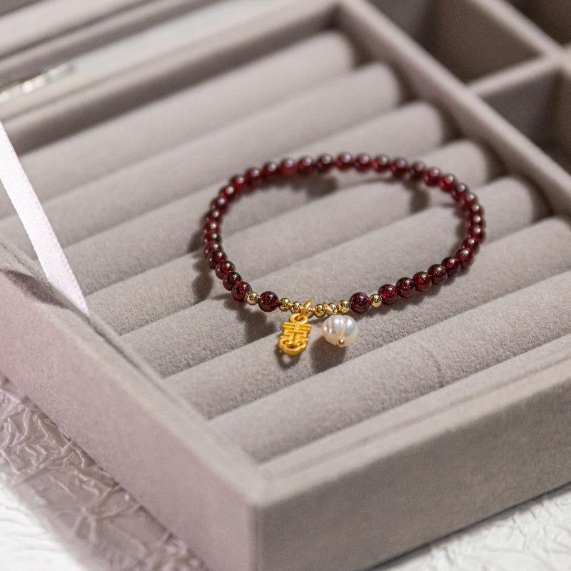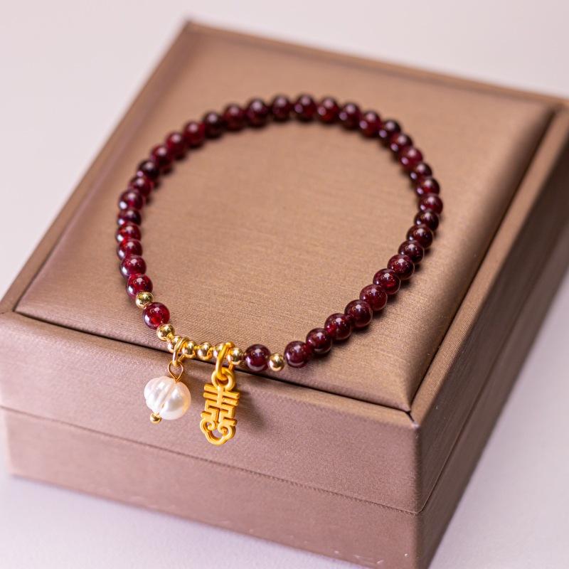 Compra Pulsera de granate natural para mujer Pulsera de boda de granate Pulsera de cristal de joyería de estilo simple retro al por mayor en Joom.pro