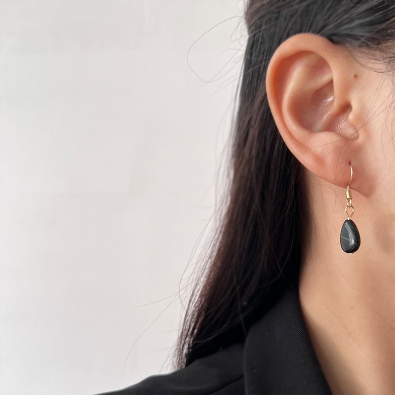 Pendientes de metal con piedra natural para mujer, aretes pequeños sencillos de moda que combinan con todo, aretes de moda estilo retro 2023
