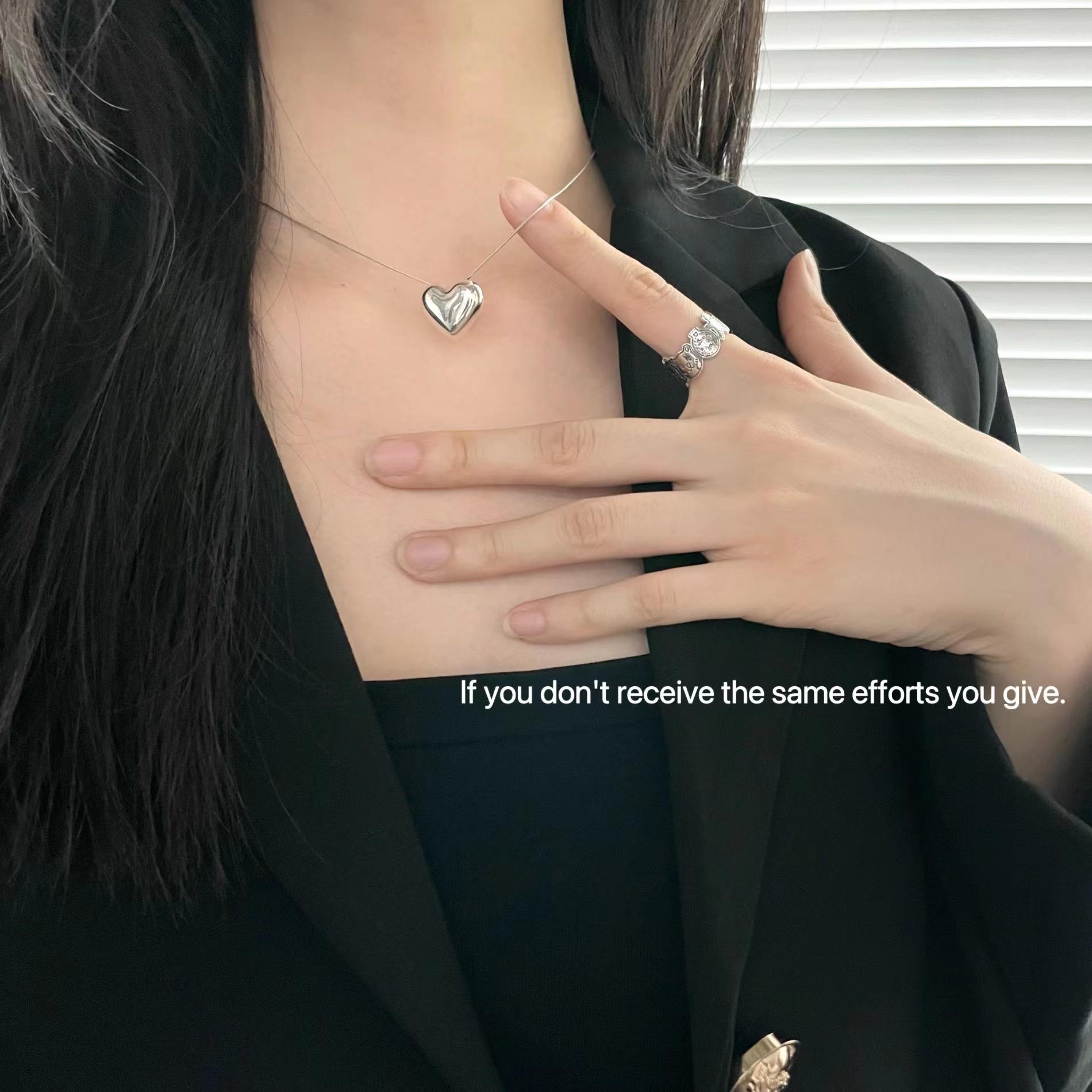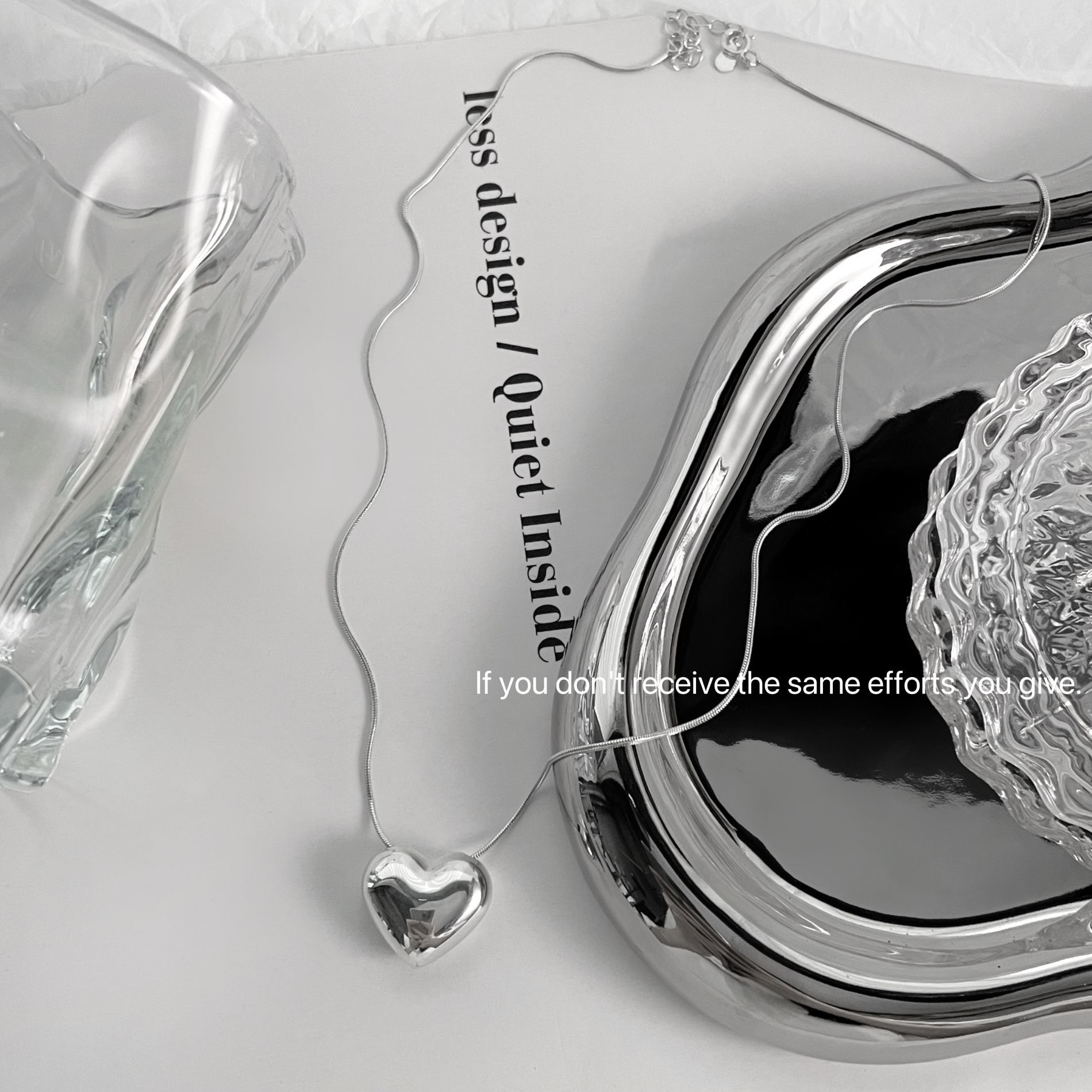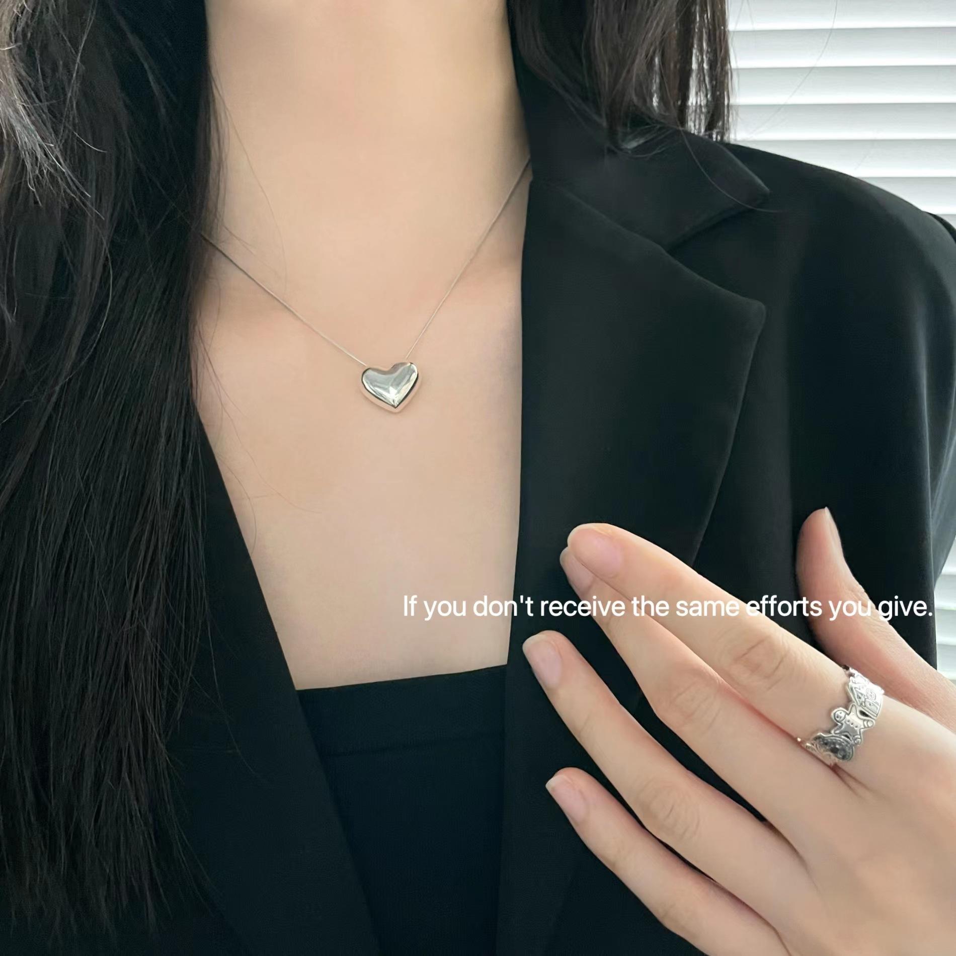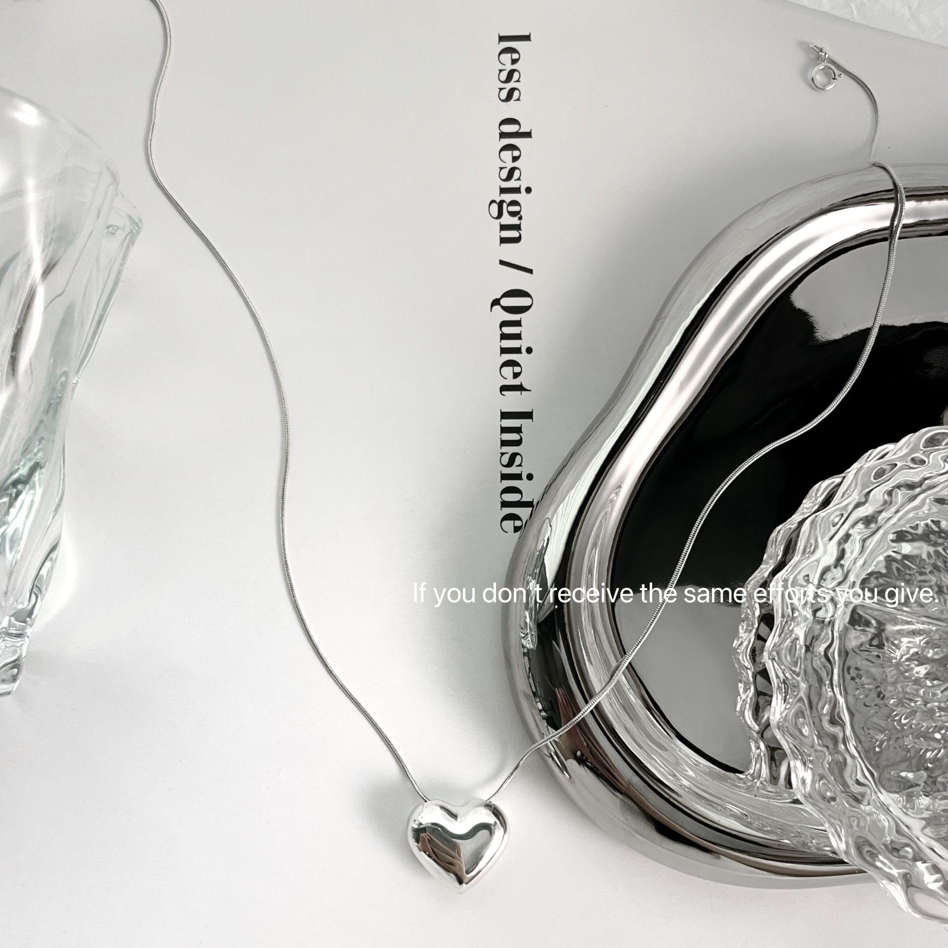 Collar de amor tridimensional de alta calidad en plata esterlina S925 para mujer, elegante y sencillo collar con cadena de clavícula con forma de corazón de melocotón.