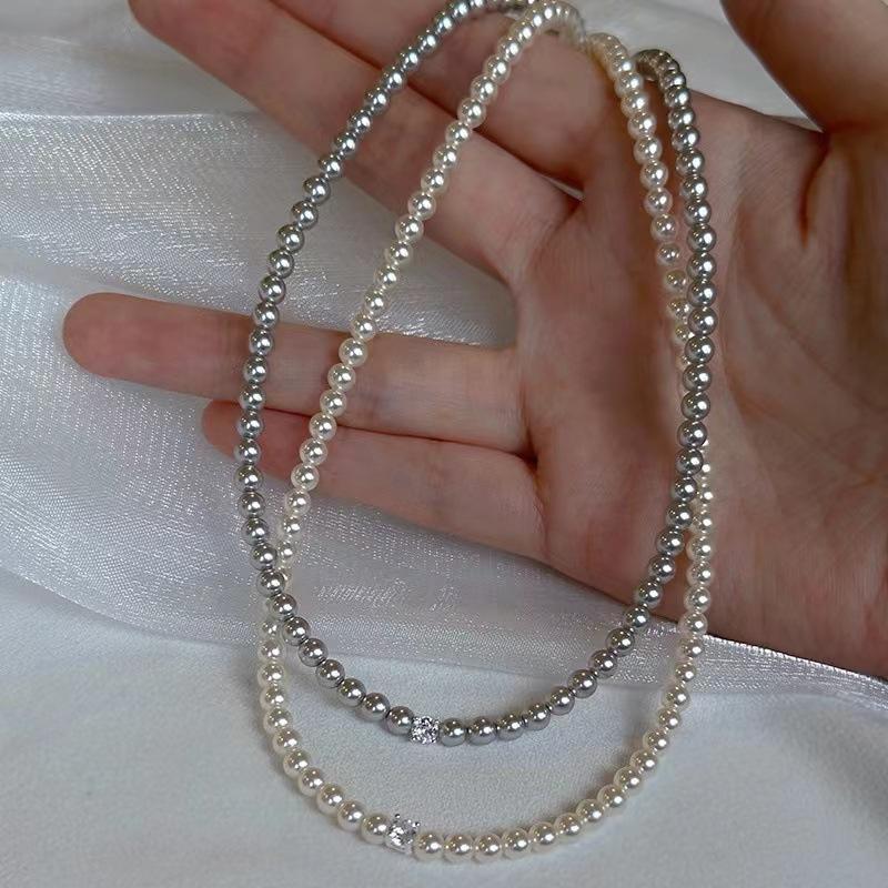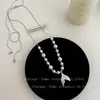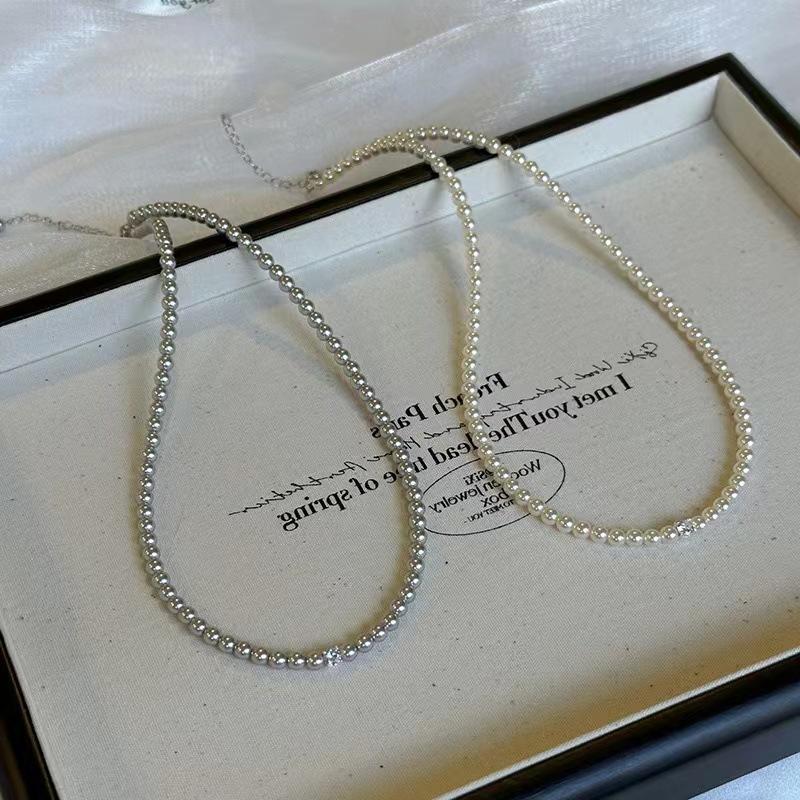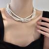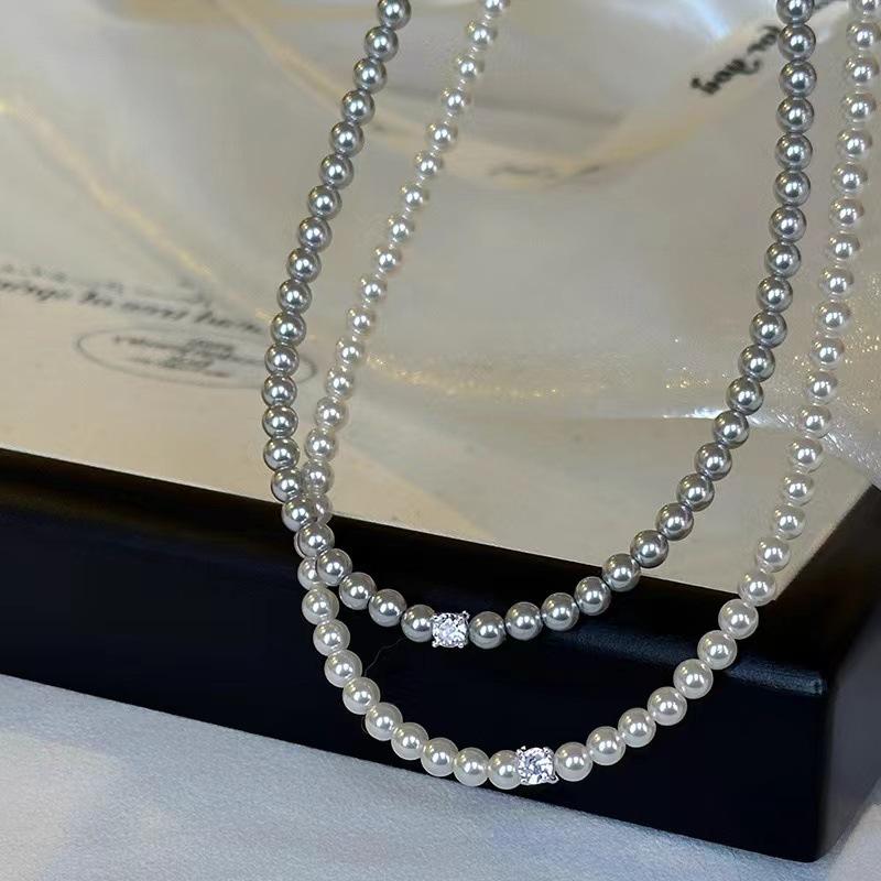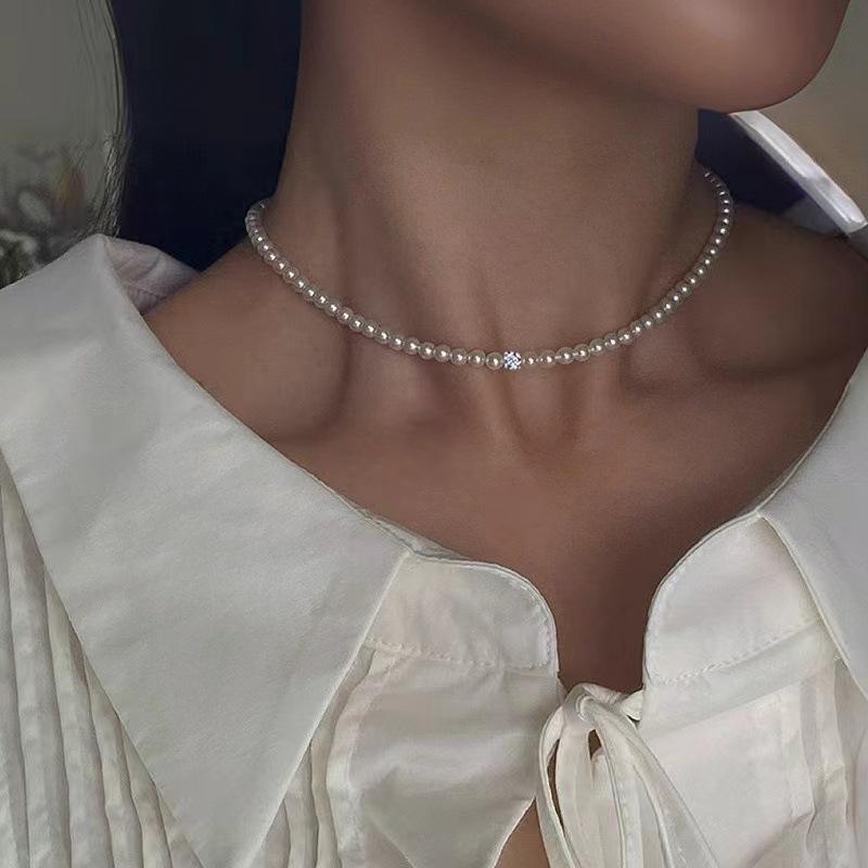 Collar de perlas y circón estilo retro francés para mujer, ligero, de lujo, de alta gama, elegante, a la moda, con personalidad, elegante cadena para el cuello y la clavícula.