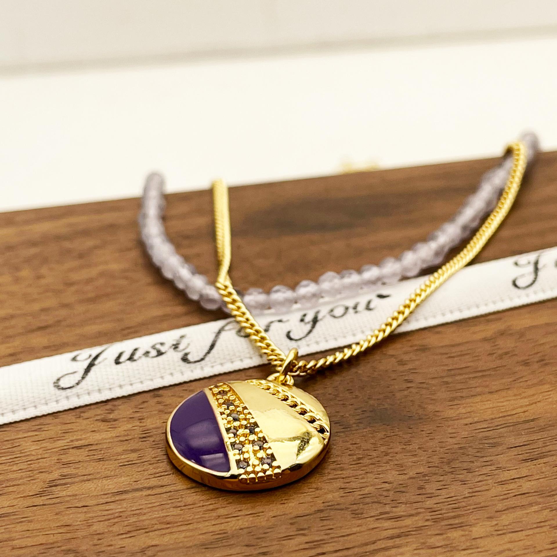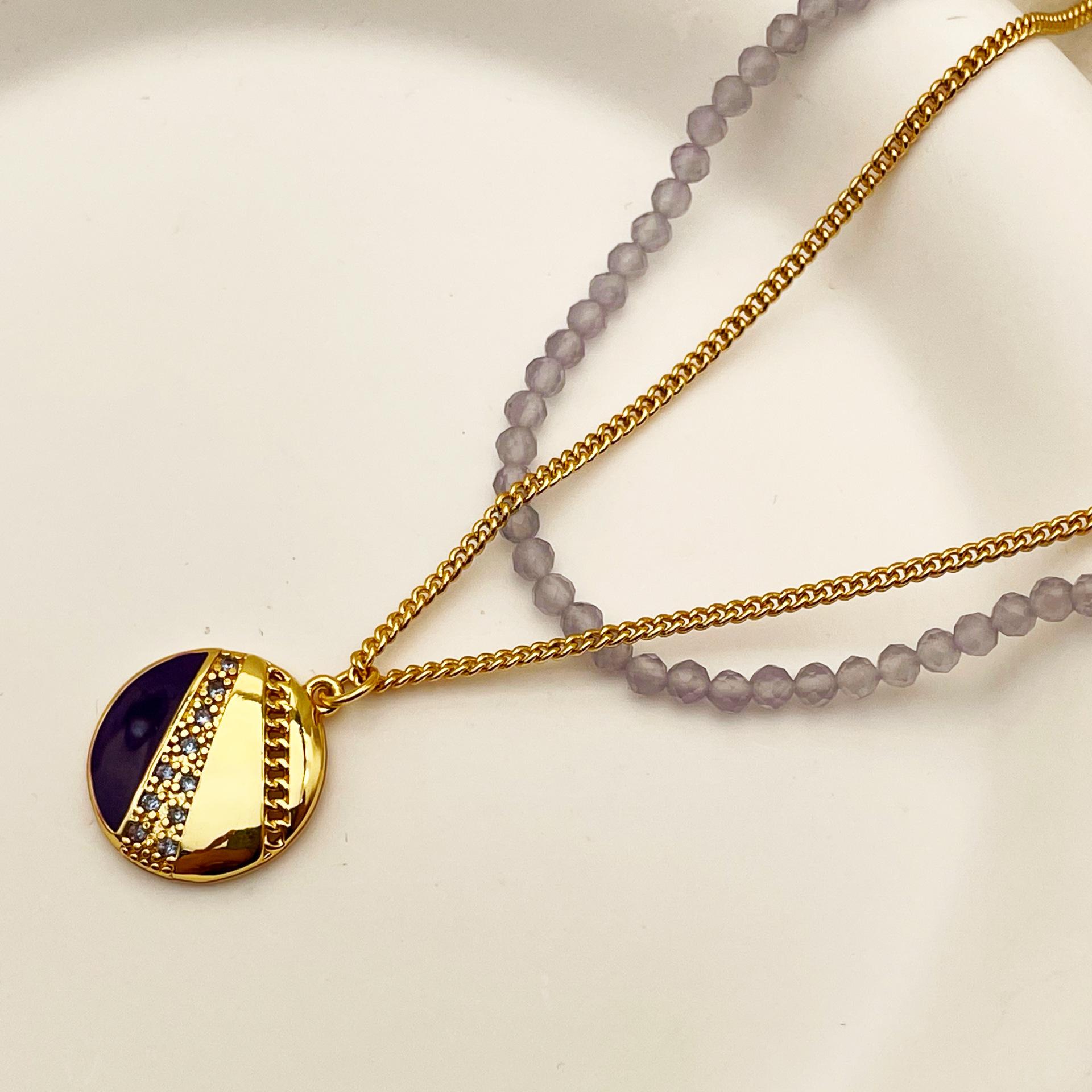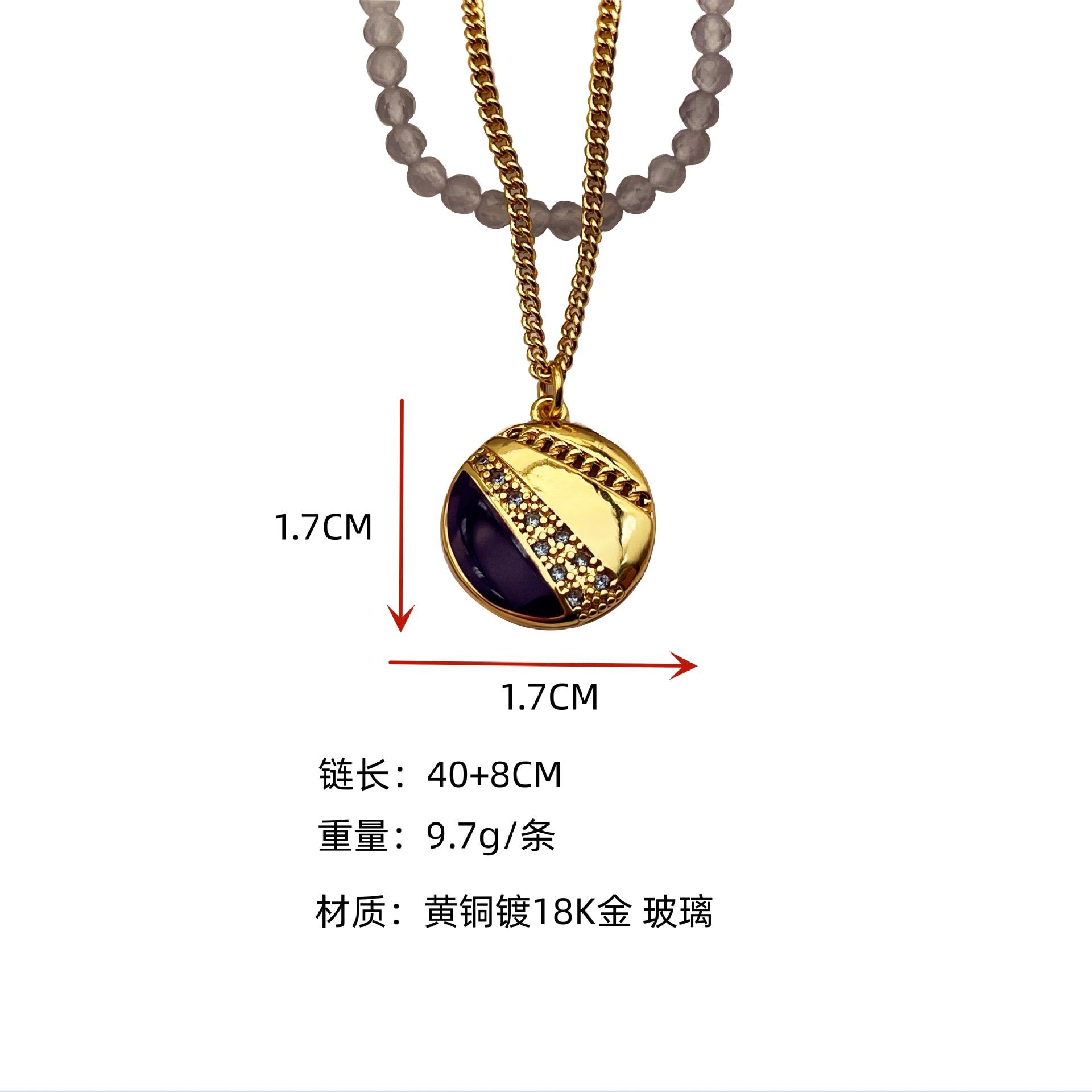 Collar con cuentas de cristal de vidrio estilo retro simple de nicho europeo y americano, colgante redondo apilado para mujer, collar con cadena de clavícula