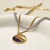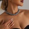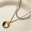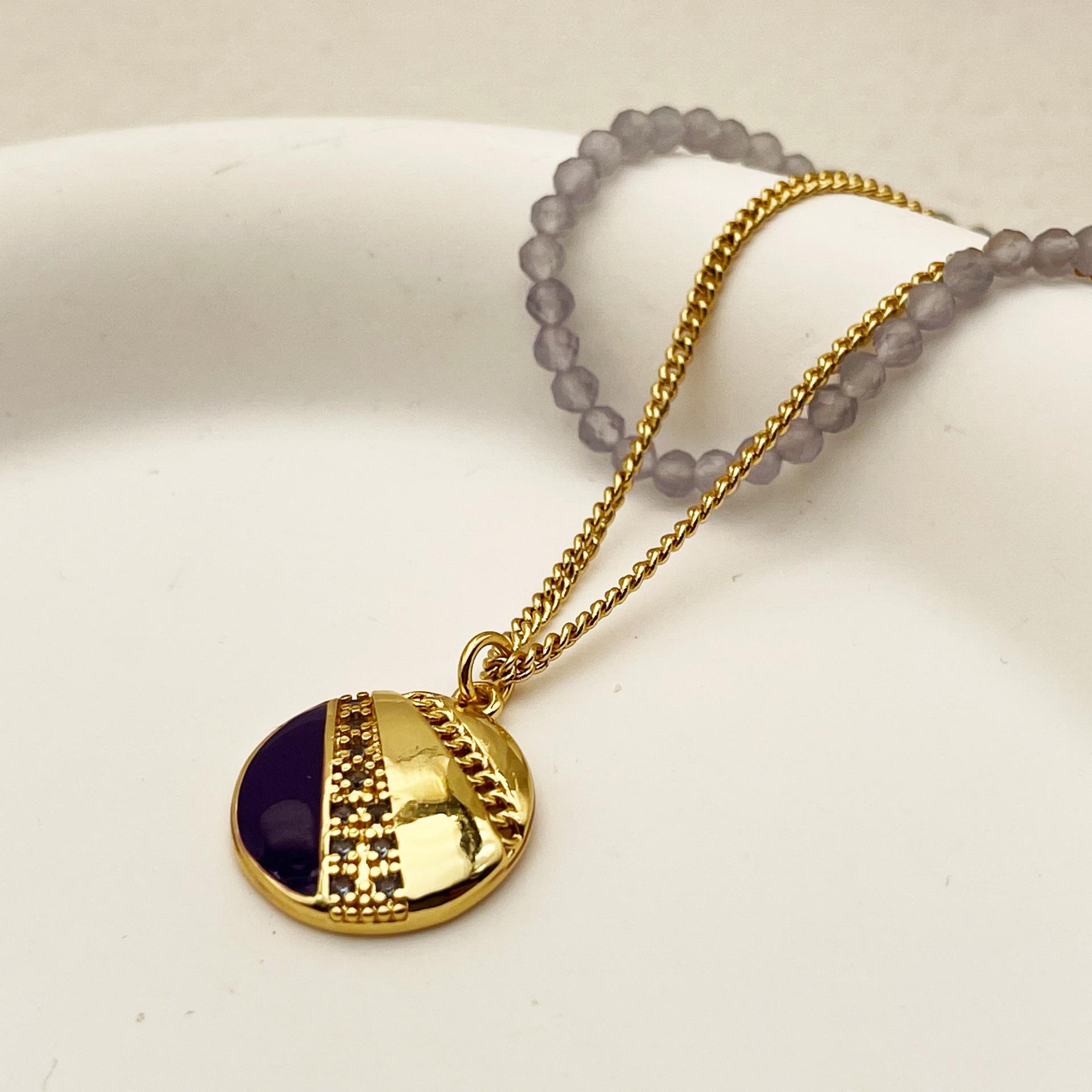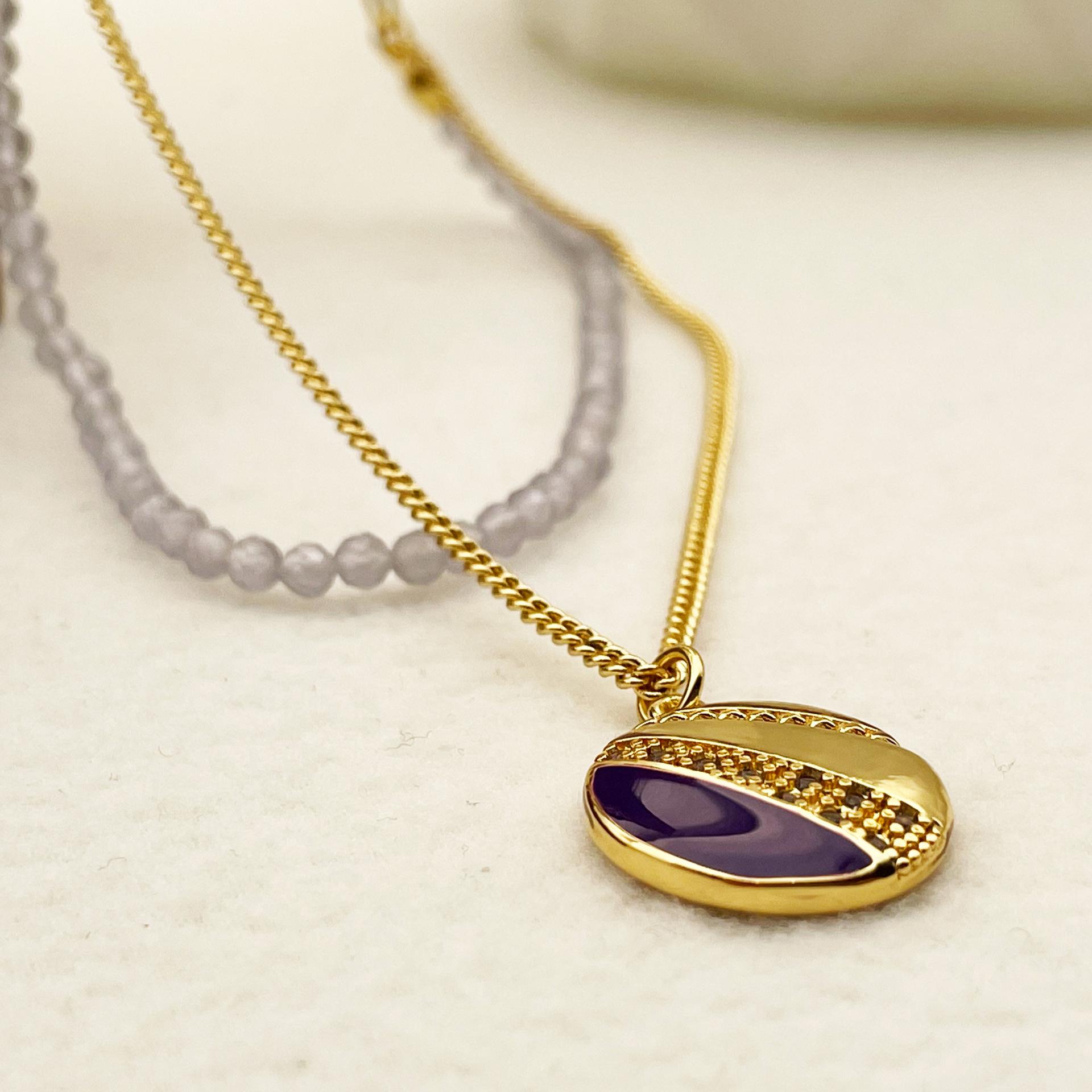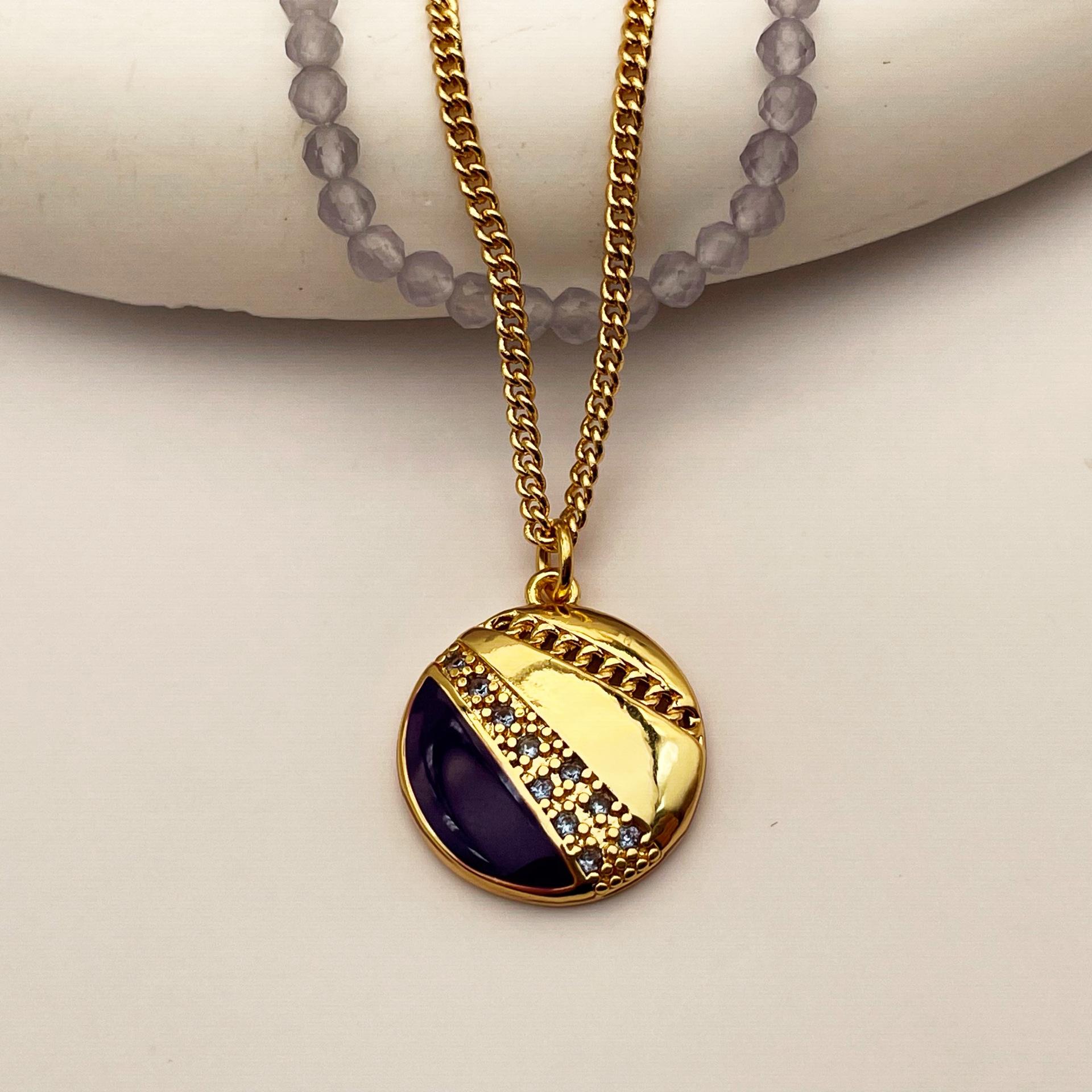 Collar con cuentas de cristal de vidrio estilo retro simple de nicho europeo y americano, colgante redondo apilado para mujer, collar con cadena de clavícula
