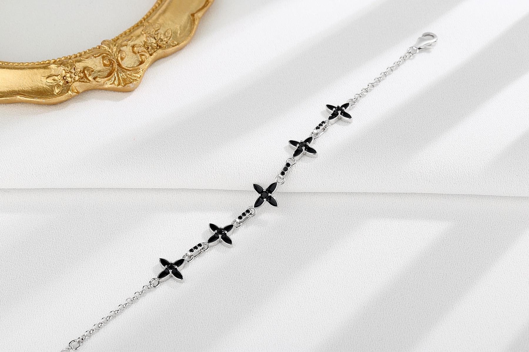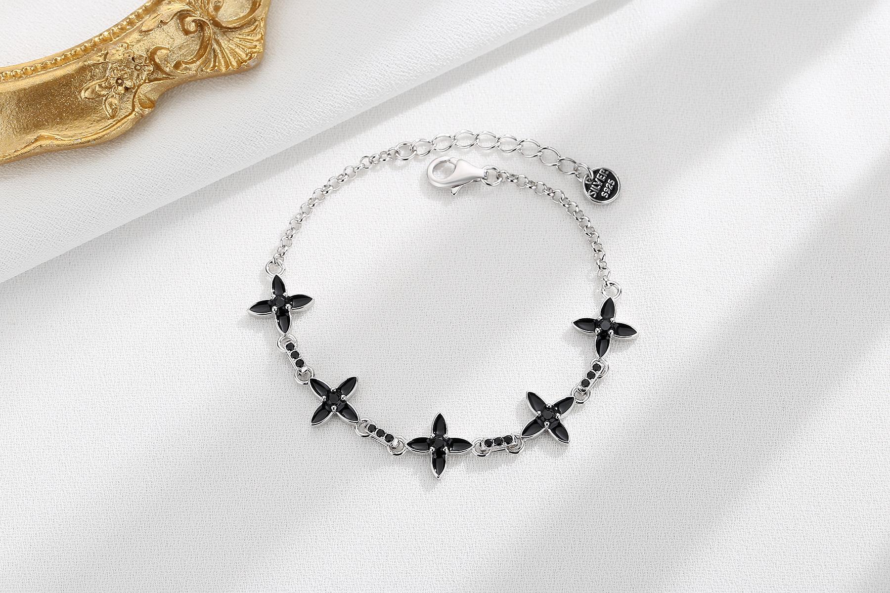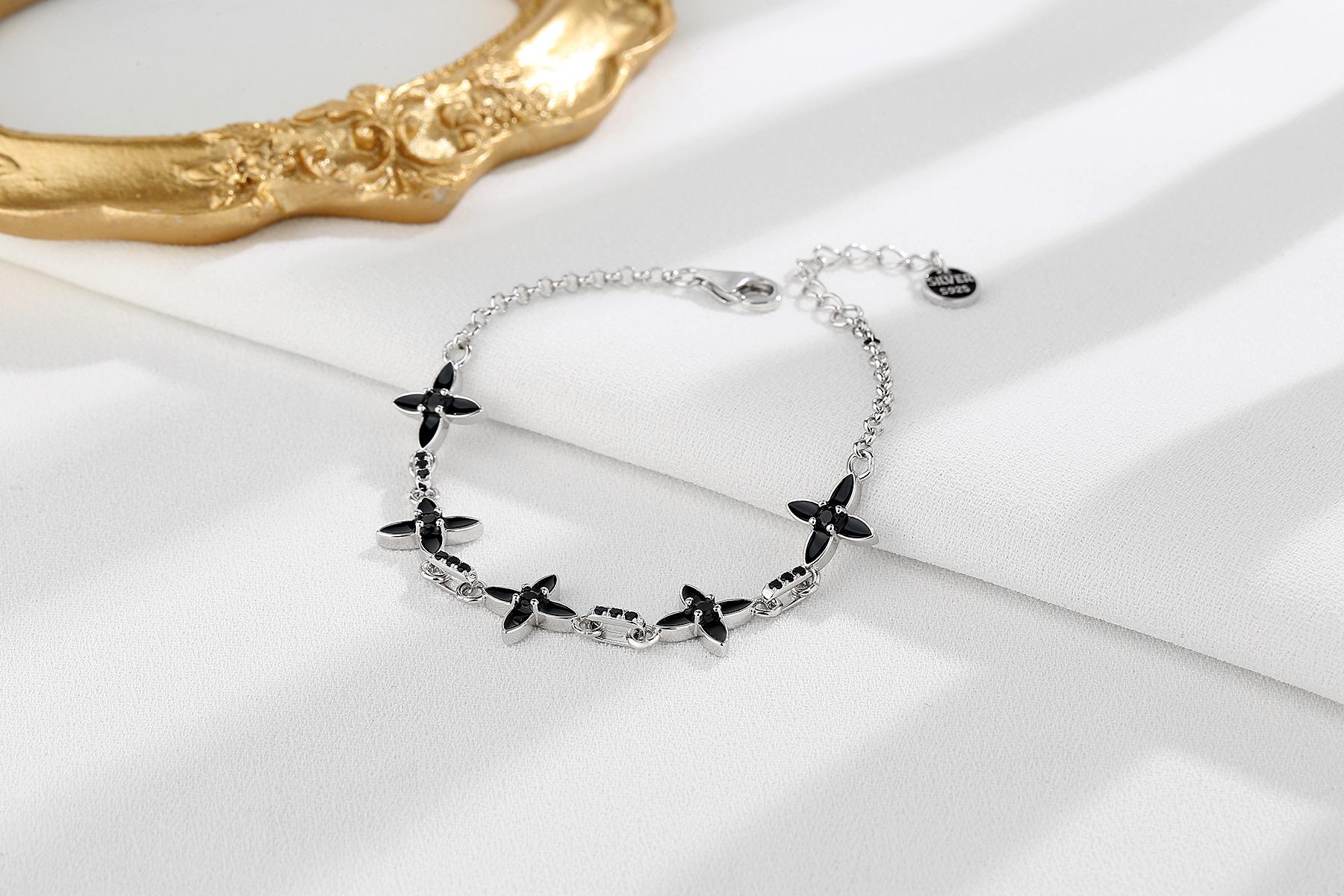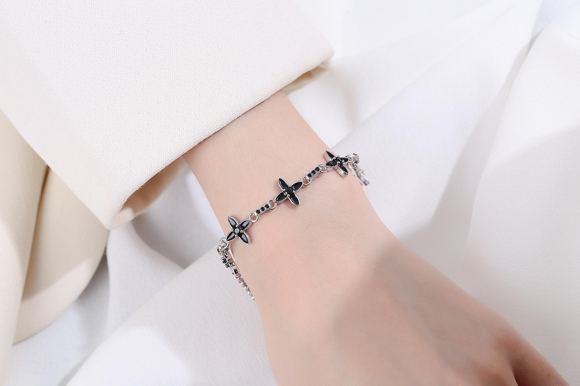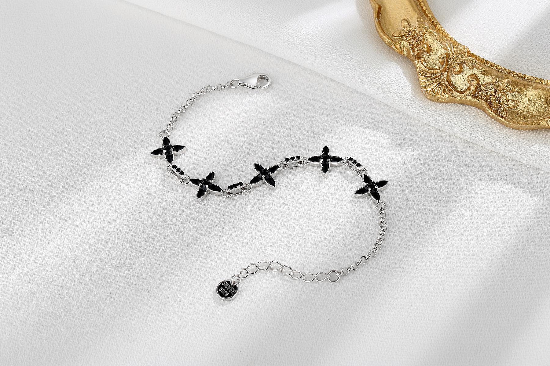 Pulsera de plata s925 para mujer, nueva moda, diseño de nicho, de alta calidad, ligera, de lujo, con diamantes negros y trébol de cuatro hojas para novia.
