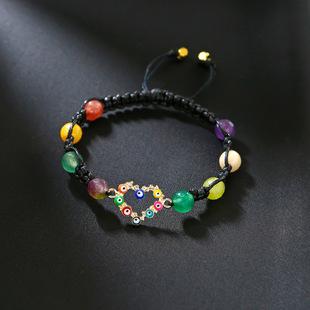 Pulsera Trenzada Ojo del Diablo DIY Pulsera de Amor Amatista Ágata Cristal de Fresa con Cuentas Corazón OjoOrdene ahora