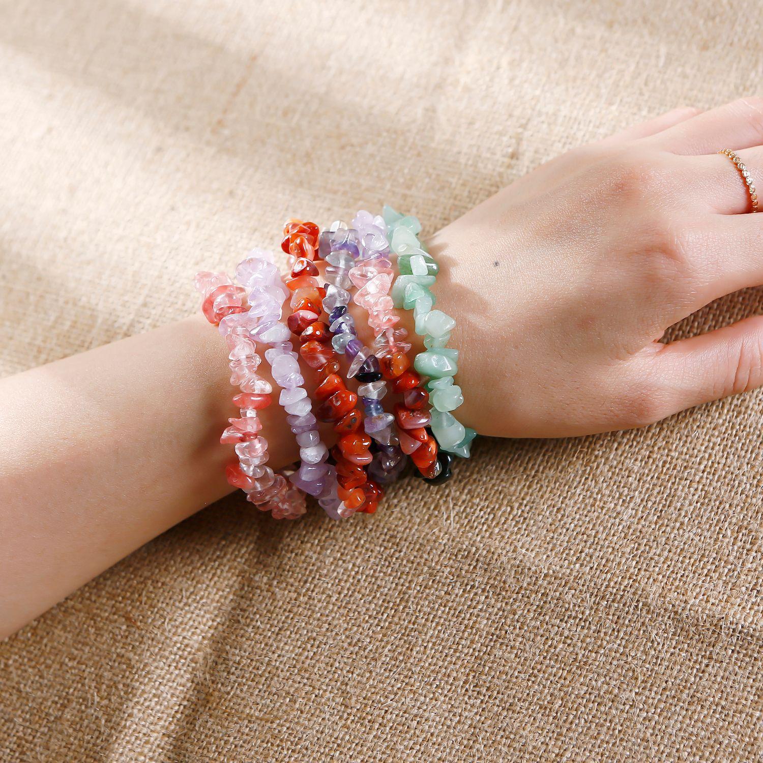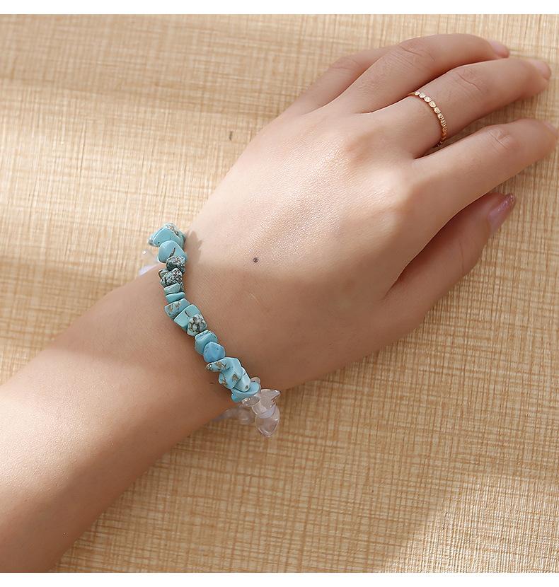 Nuevas pulseras de cuentas de personalidad europea y americana pulsera de ágata turquesa natural pulseras de cristal de grava de aguamarinaOrdene ahora