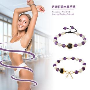 Pulsera de amatista 2022 nueva europea y americana Amazon superventas lazo cristal francés cristal natural piedra lunar pulsera femeninaOrdene ahora