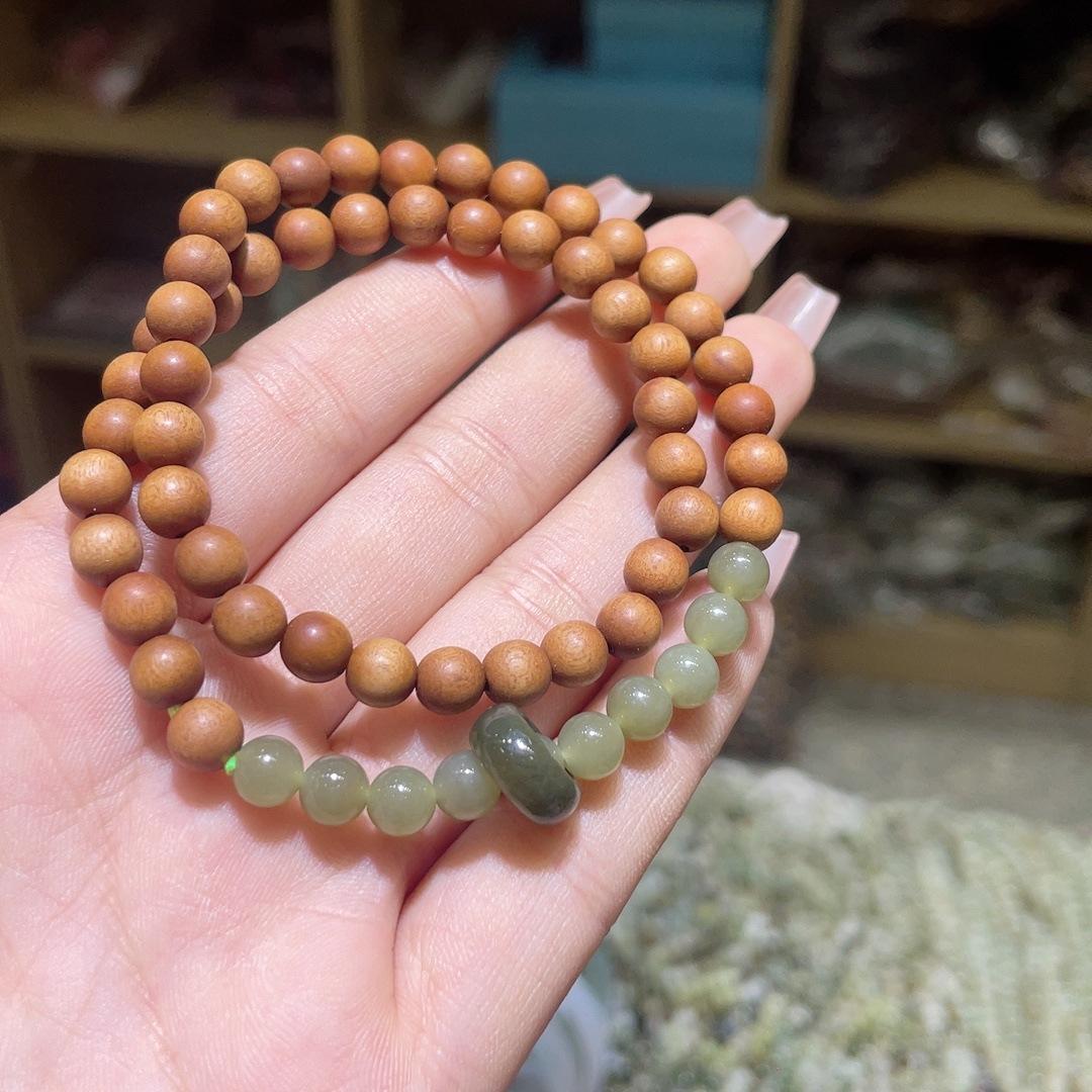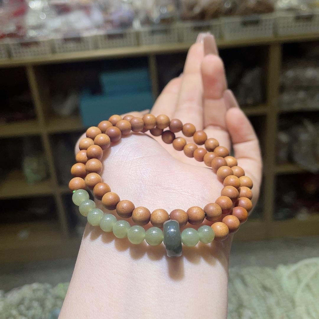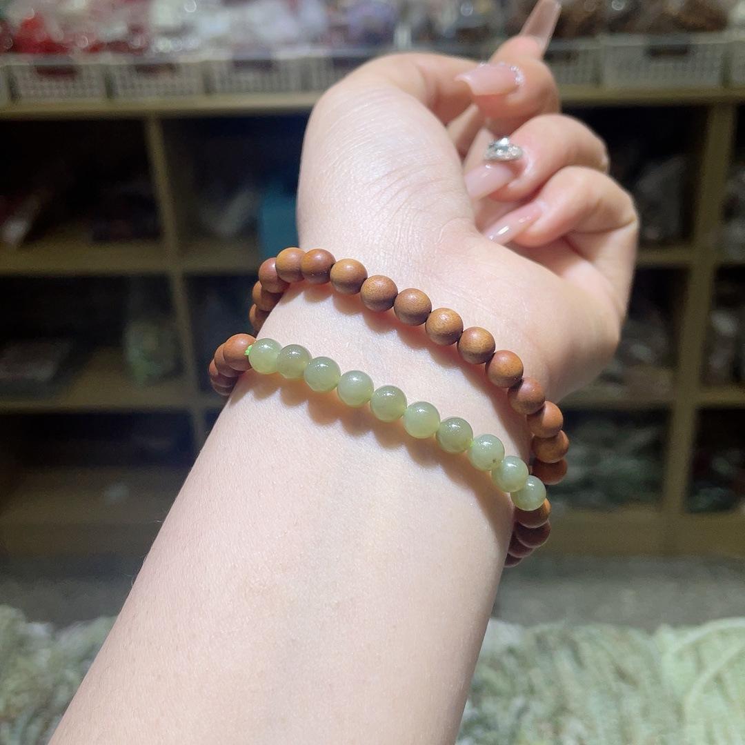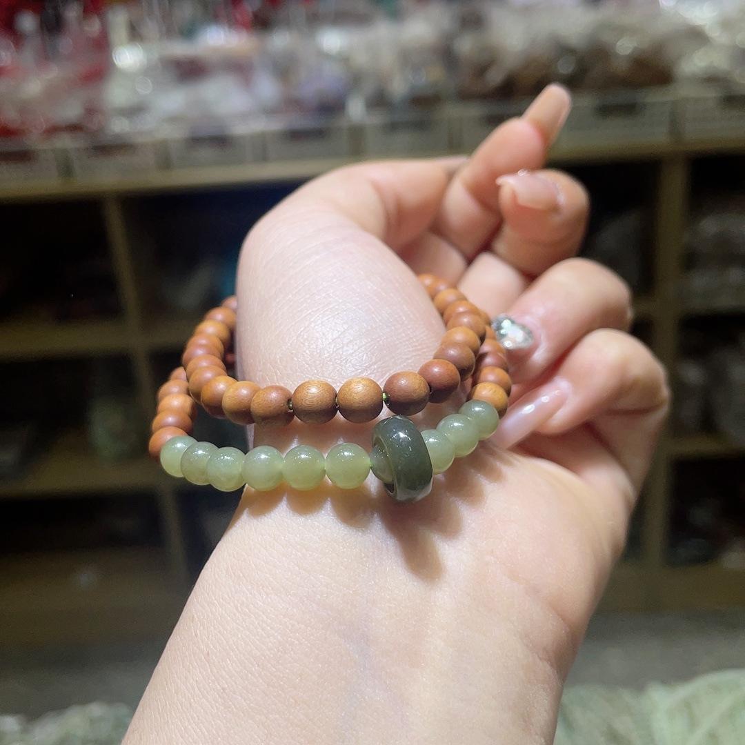 Ciprés Empalmado Jade Hetian Anillo Giratorio Pulsera de Doble Círculo Pulsera Simple Versátil Joyería de Cuentas Redondas de 6 mm para Mujer