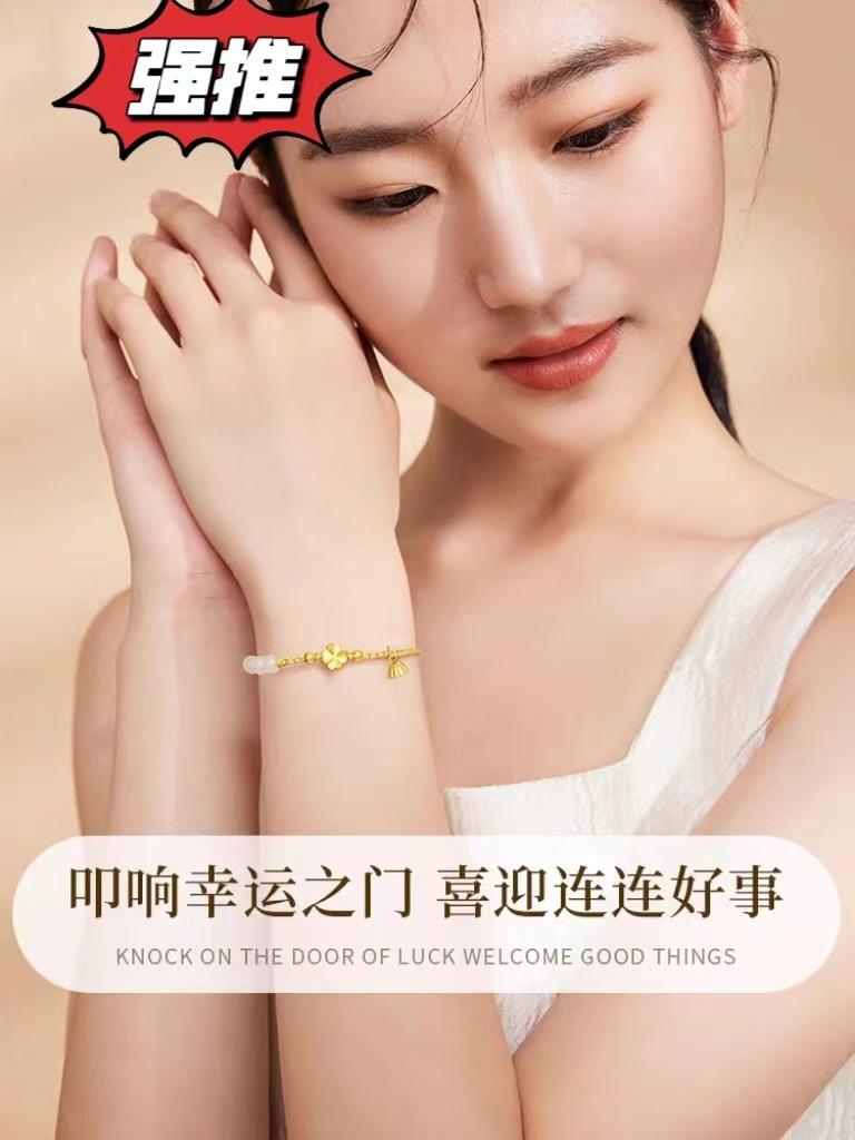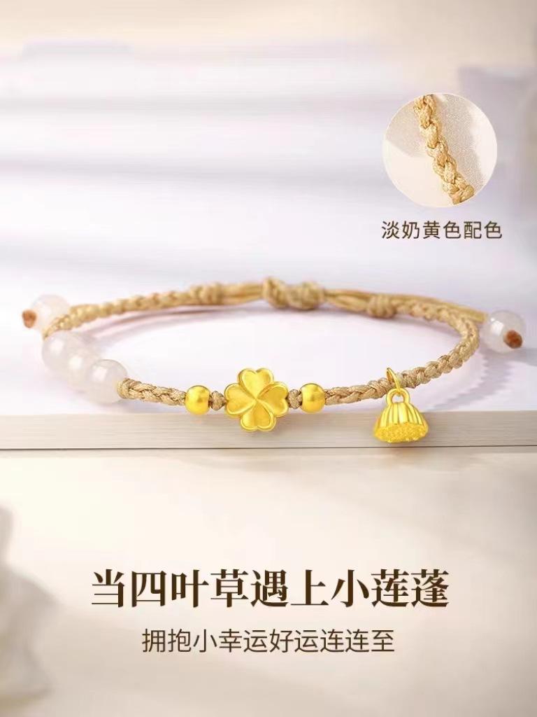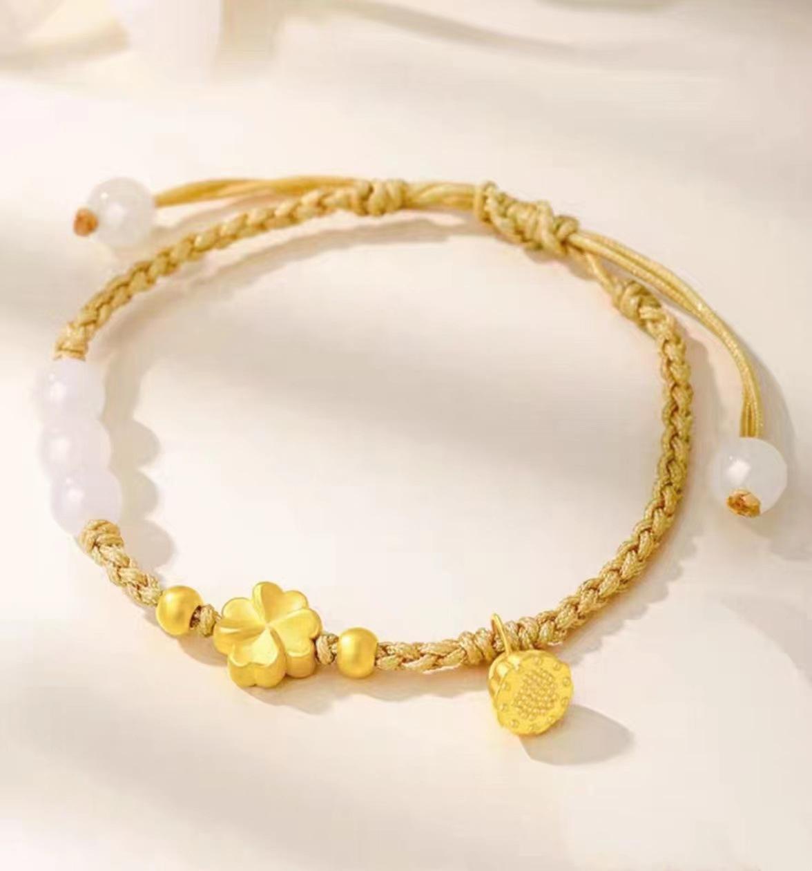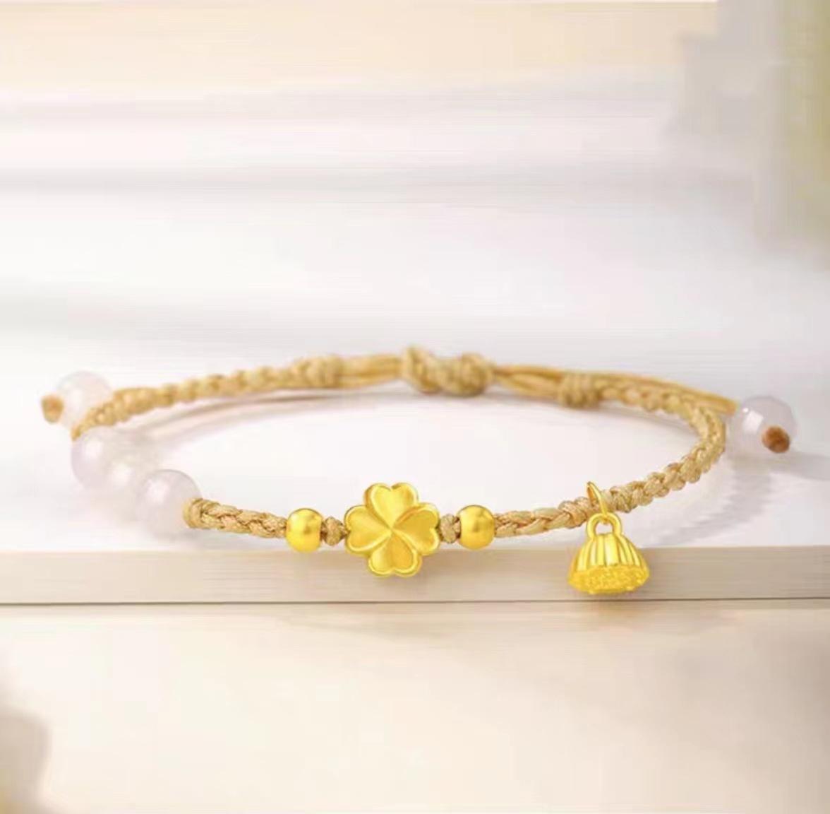 Pulsera de trébol de cuatro hojas oro arena de Vietnam imitación jade Hetian cuentas de la suerte pulsera tejida de loto regalo de pulsera para novia