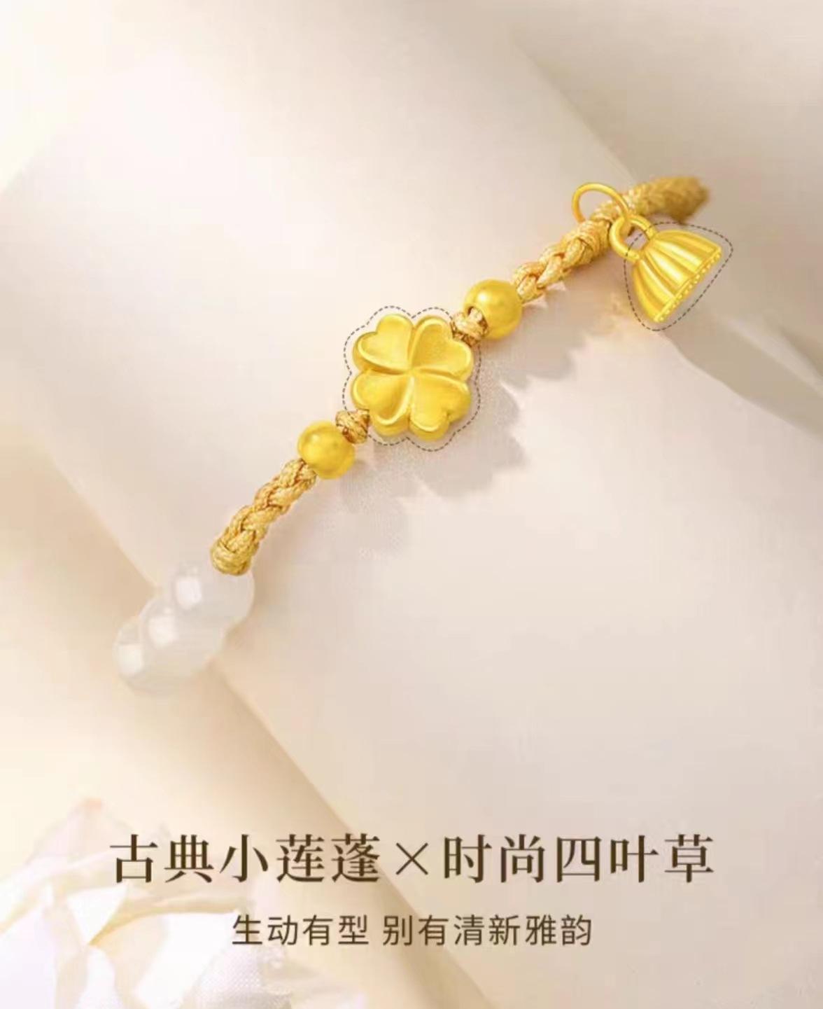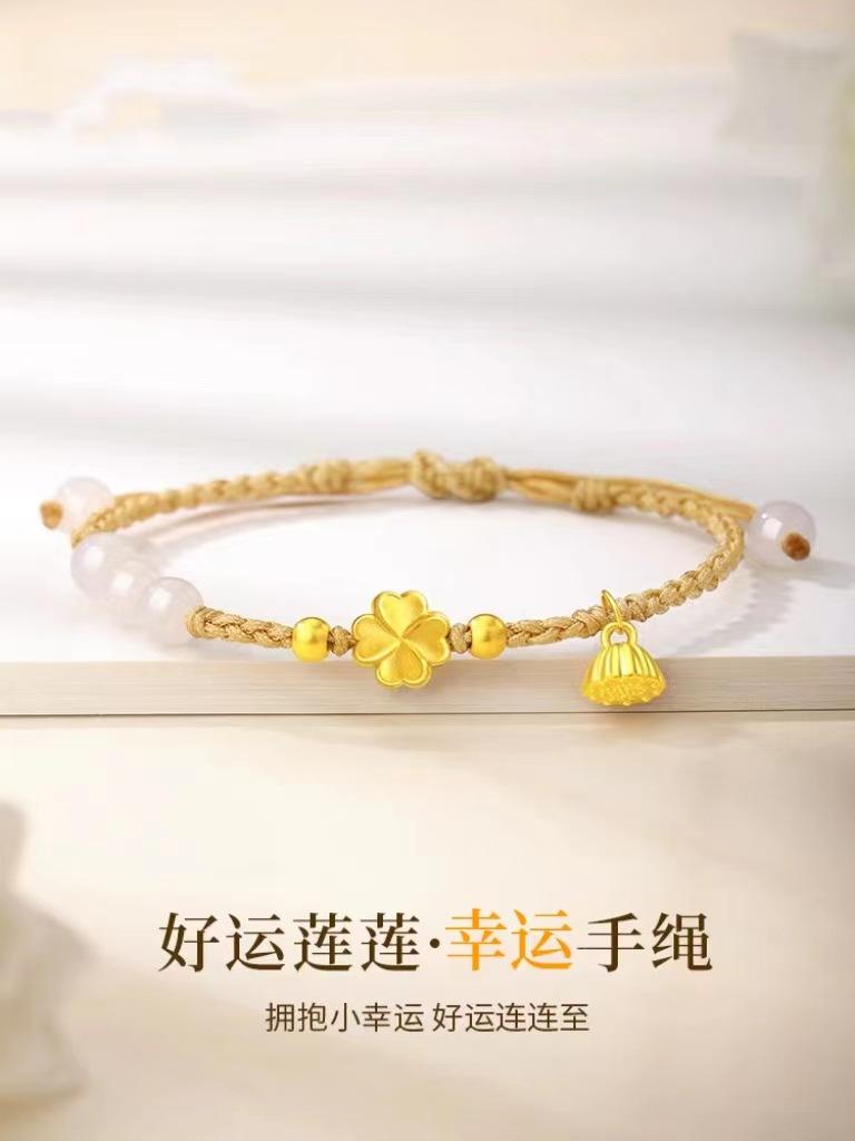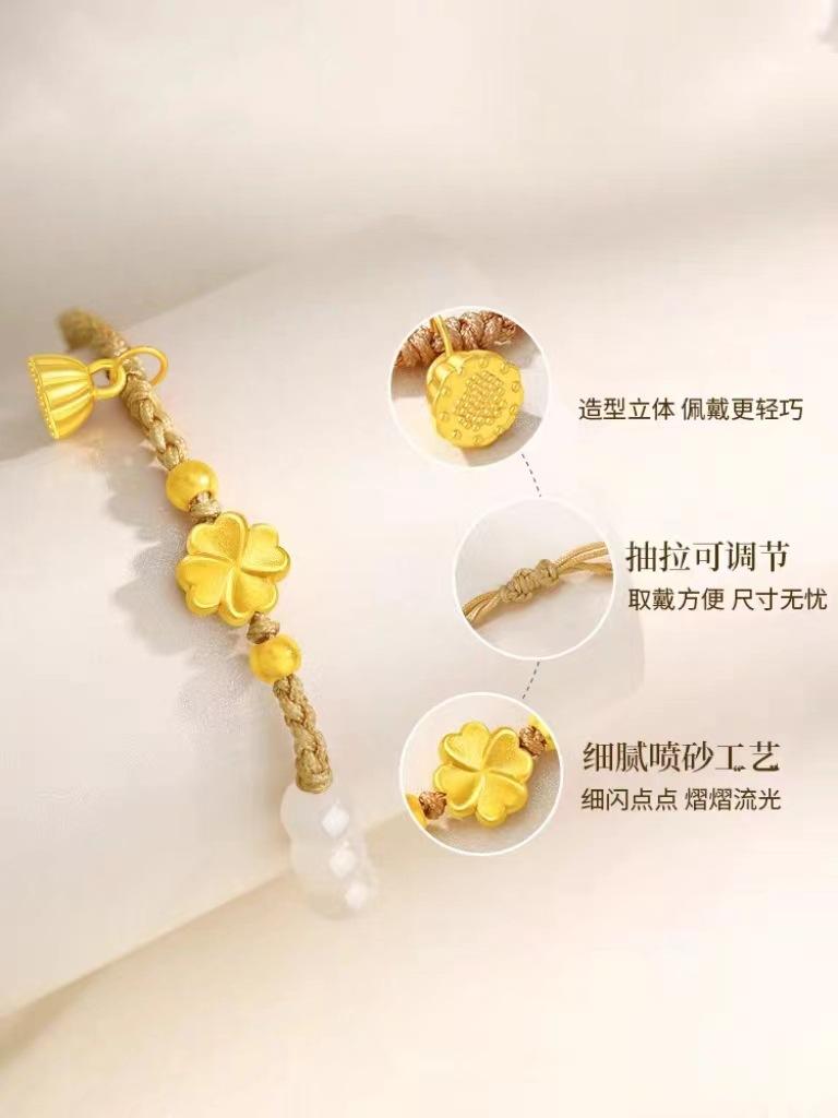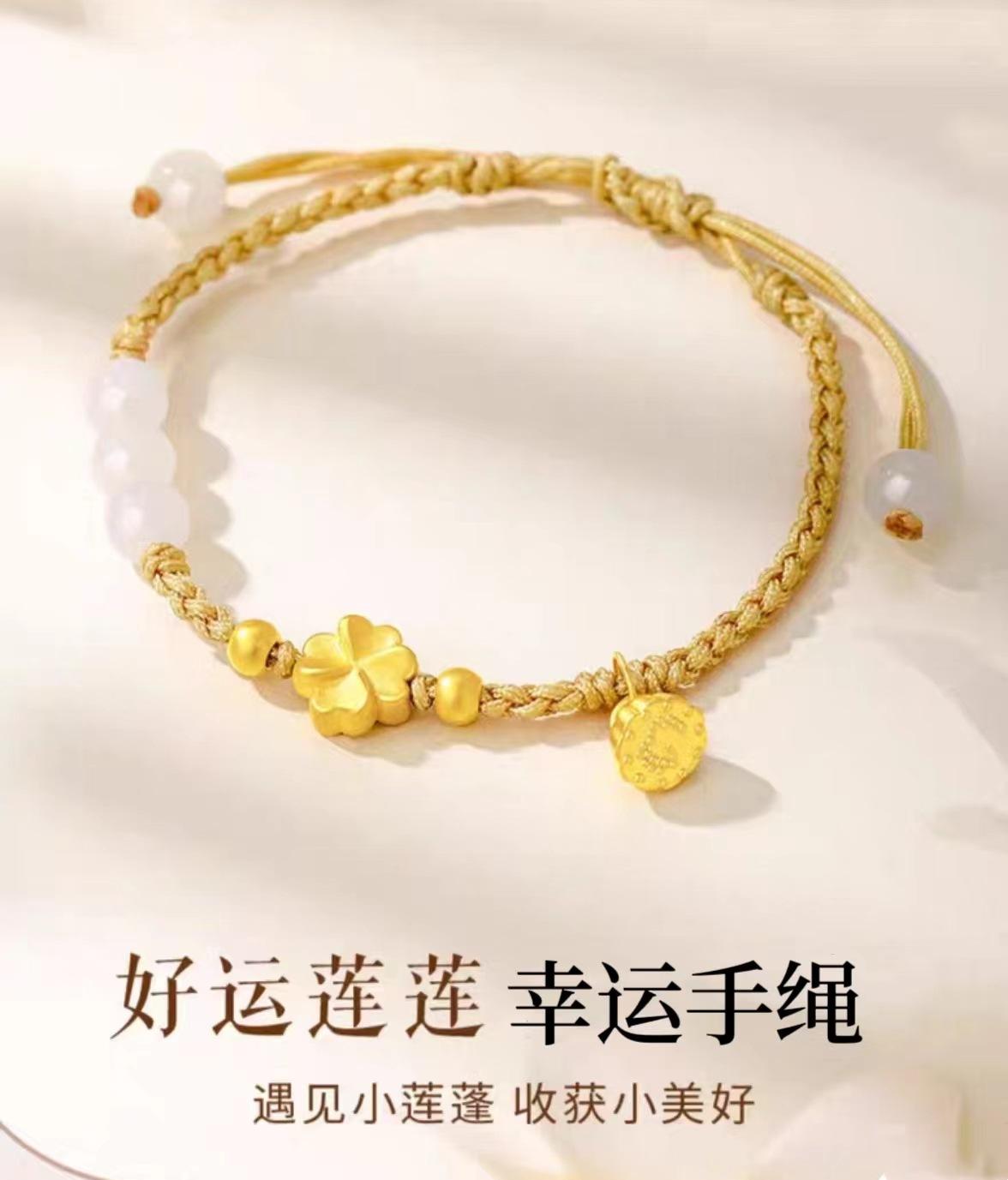 Pulsera de trébol de cuatro hojas oro arena de Vietnam imitación jade Hetian cuentas de la suerte pulsera tejida de loto regalo de pulsera para novia