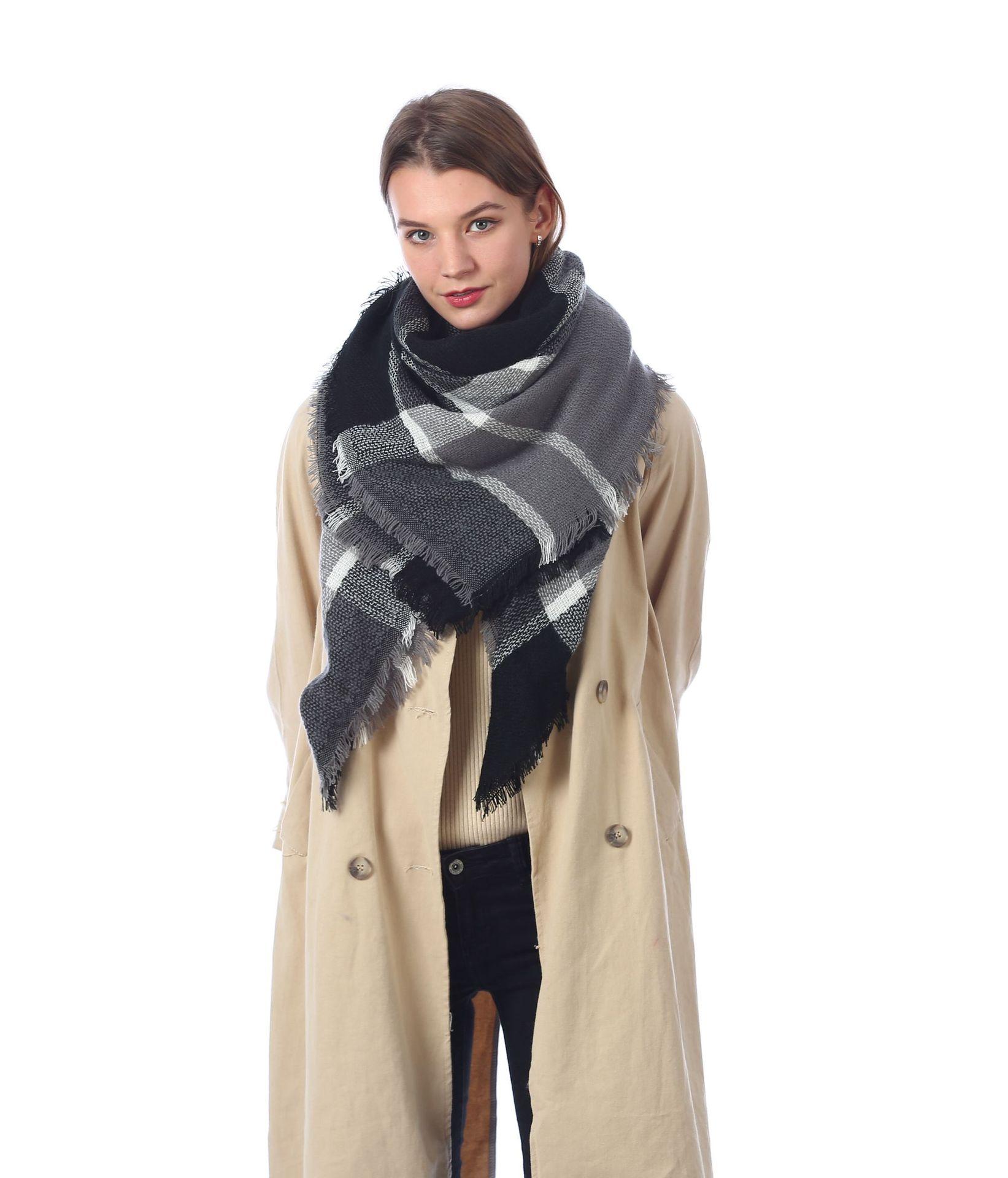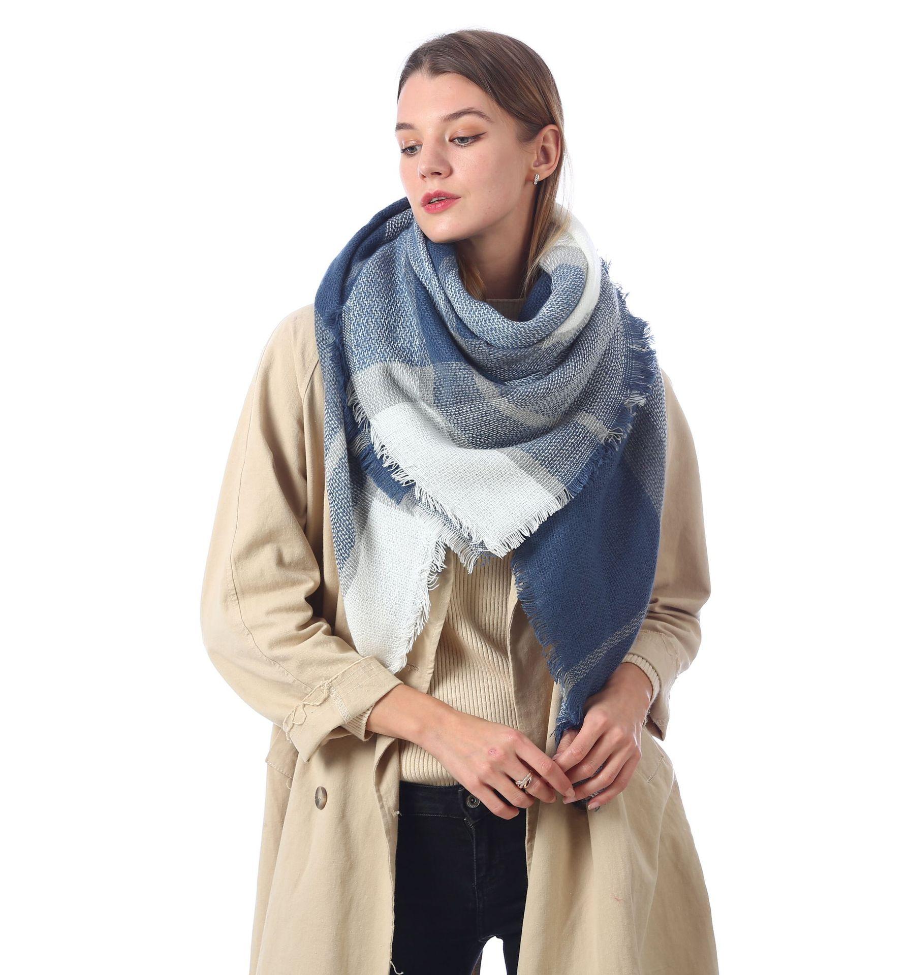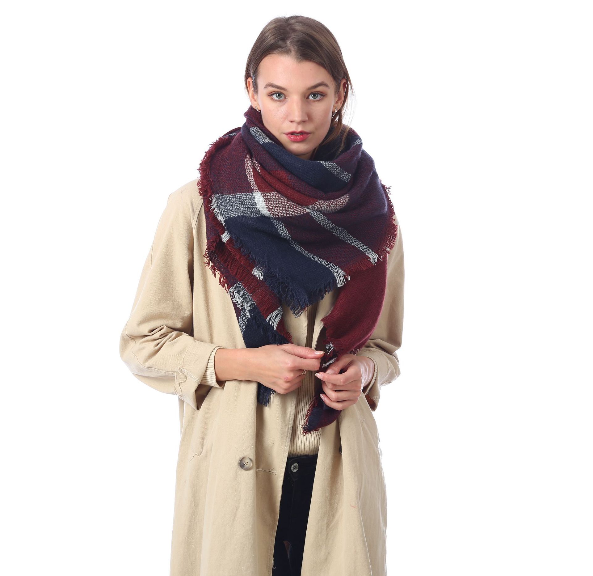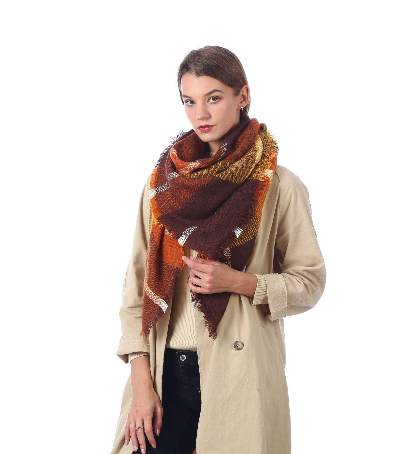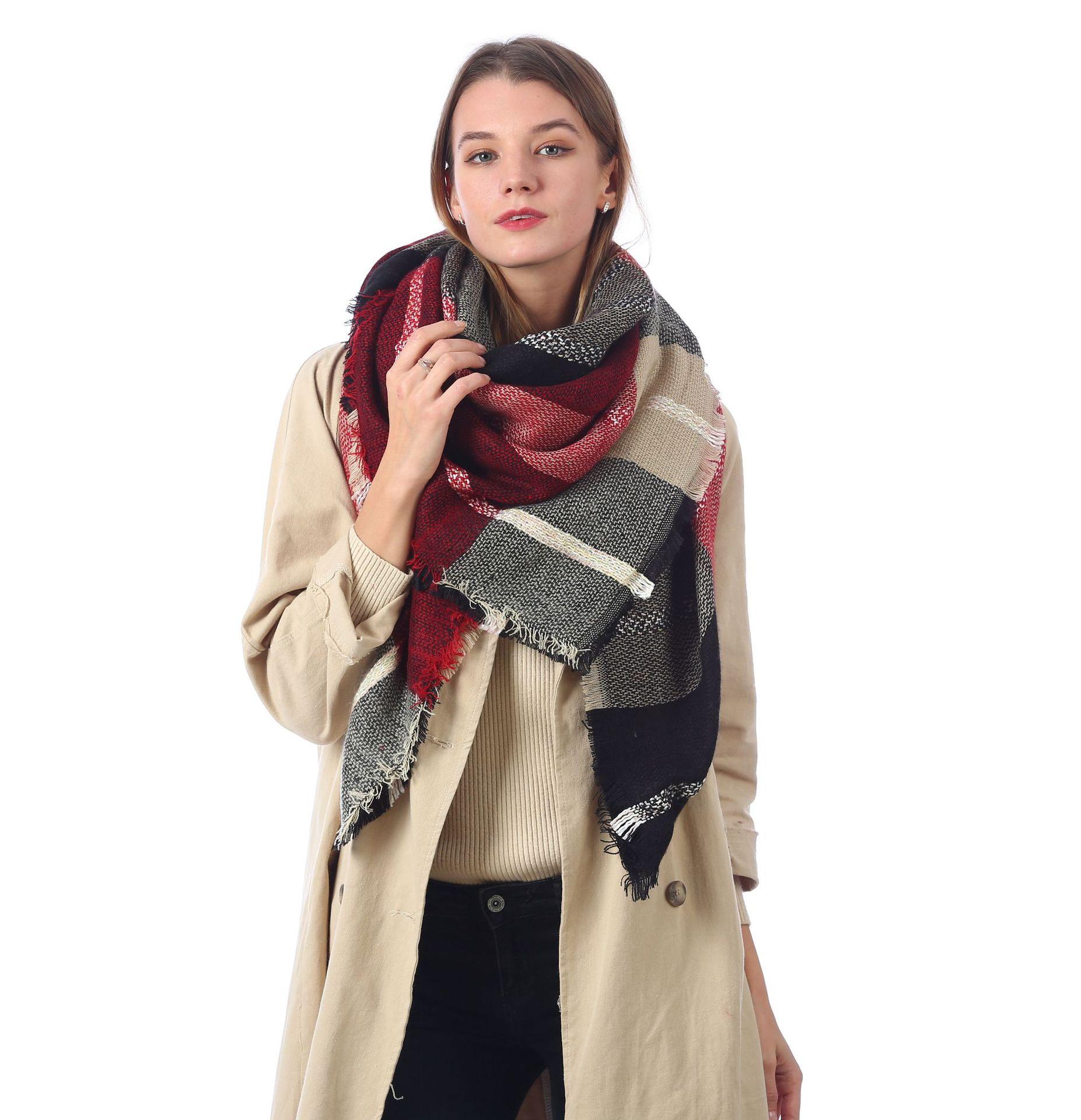 Chal Nuevo Europeo y Americano Imitación Cachemira Chal Bufanda Original de Comercio Exterior para Mujer Otoño e Invierno para Mujer Engrosado Cálido Cuadrado Grande a Cuadros Colorido