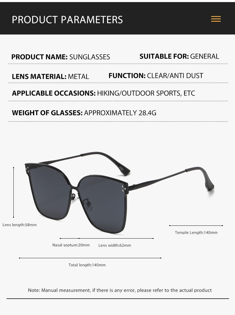 Nuevas gafas de sol de moda con montura grande y protección UV, de metal, estilo ojo de gato, para mujer, populares en Internet.