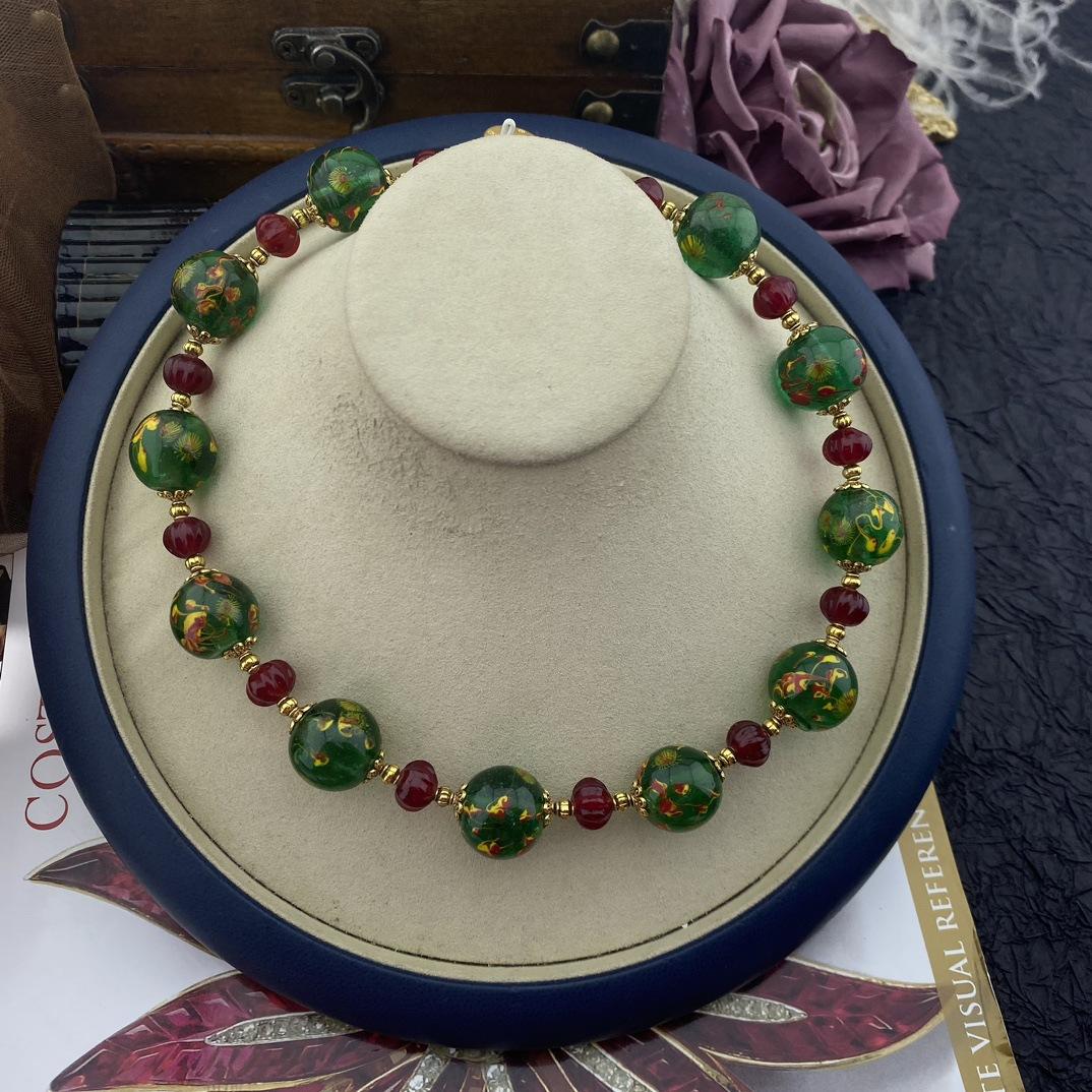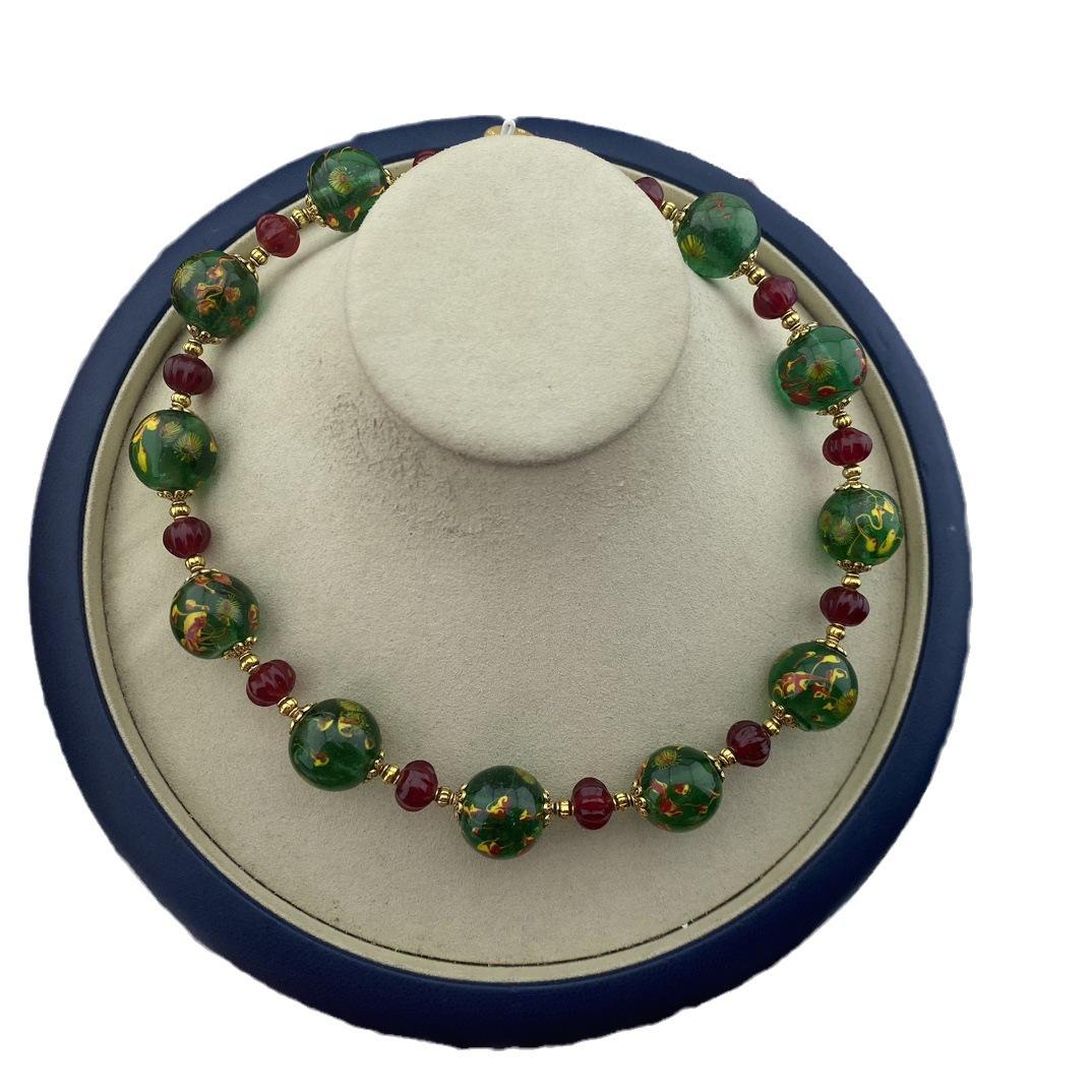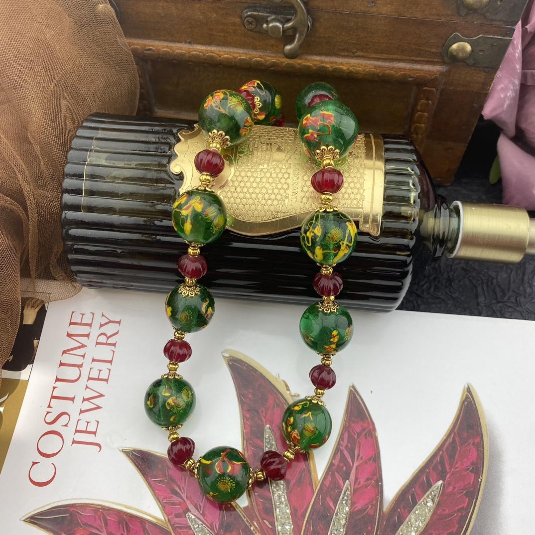 Compra Collar de cristal con forma de ojo de fénix verde y calabaza roja pequeña de estilo antiguo palacio de Mi Nan al por mayor en Joom.pro