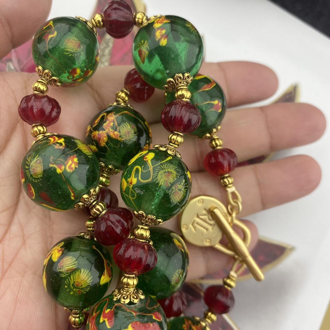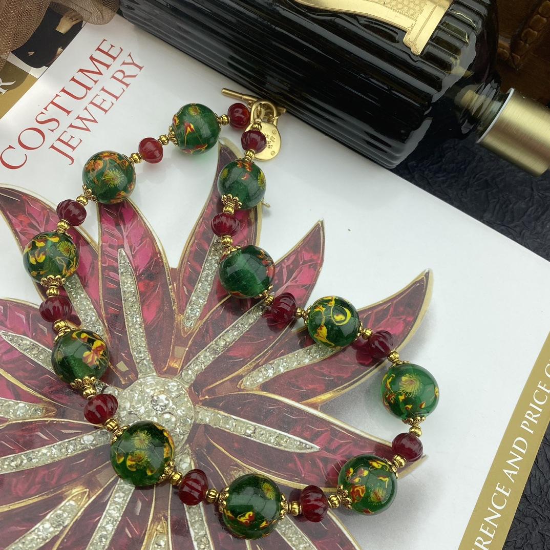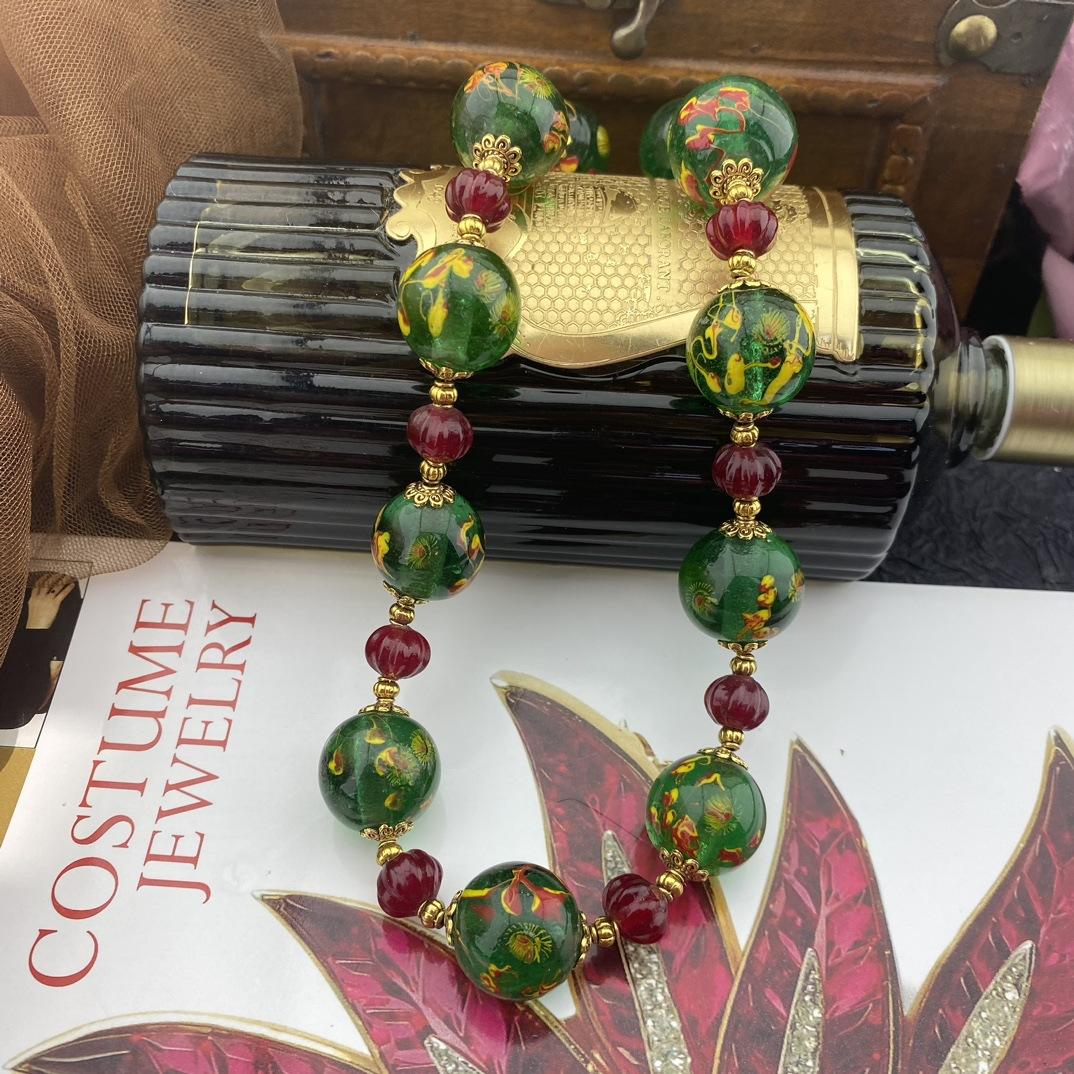 Compra Collar de cristal con forma de ojo de fénix verde y calabaza roja pequeña de estilo antiguo palacio de Mi Nan al por mayor en Joom.pro