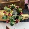 Collar de cristal con forma de ojo de fénix verde y calabaza roja pequeña de estilo antiguo palacio de Mi Nan