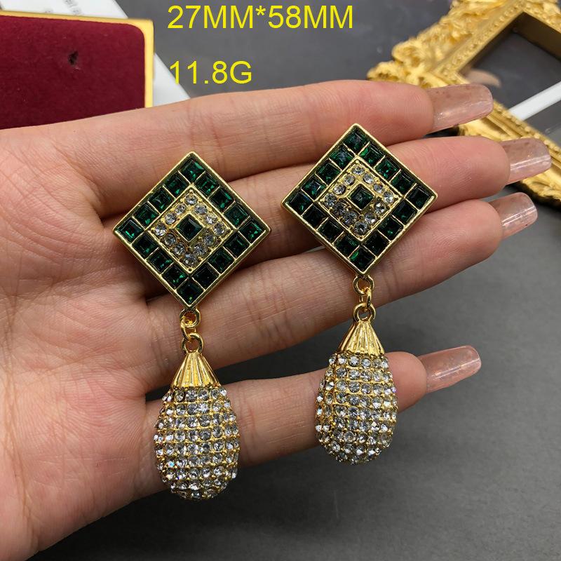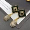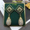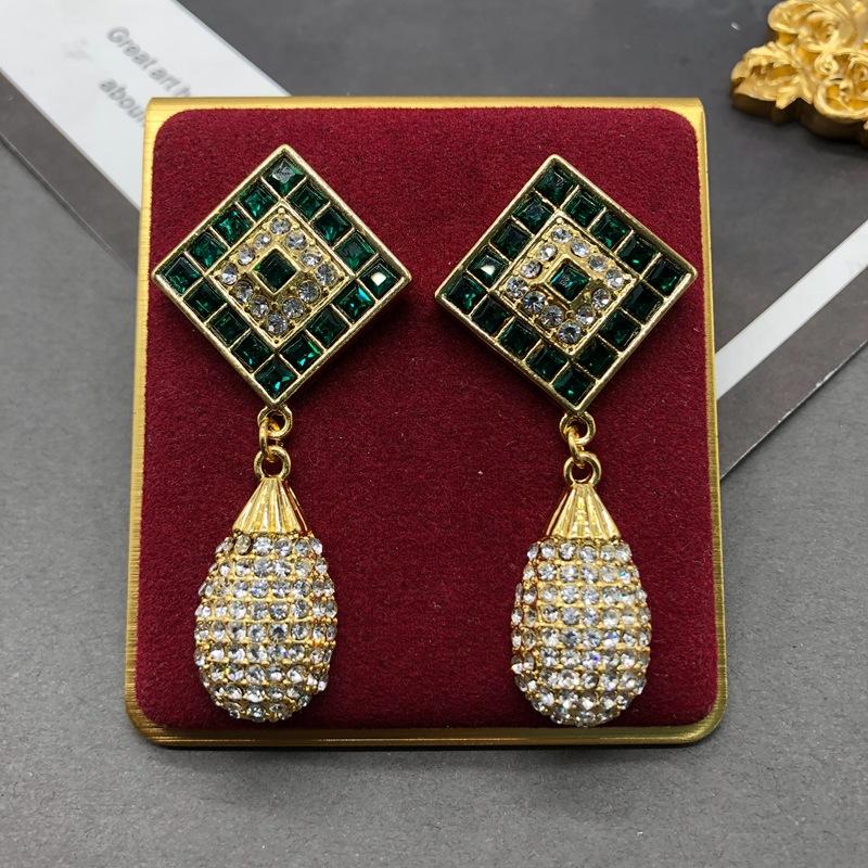 Pendientes occidentales de mediados de la antigüedad, nuevos pendientes de lujo ligeros con forma geométrica, pendientes de aguja de plata con diamante de cristal tallado verde, clip para la oreja