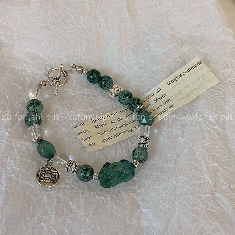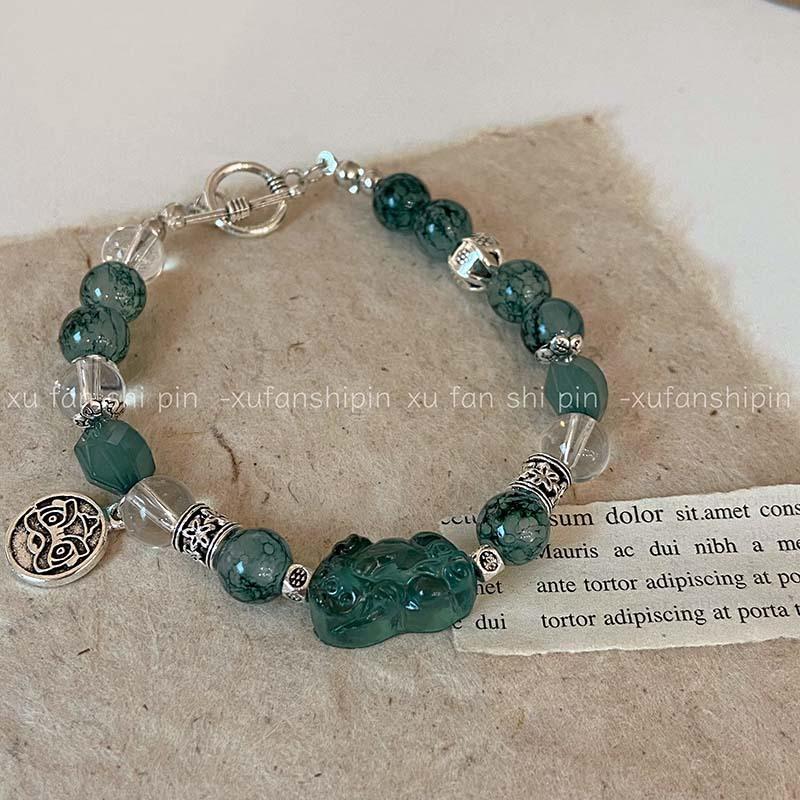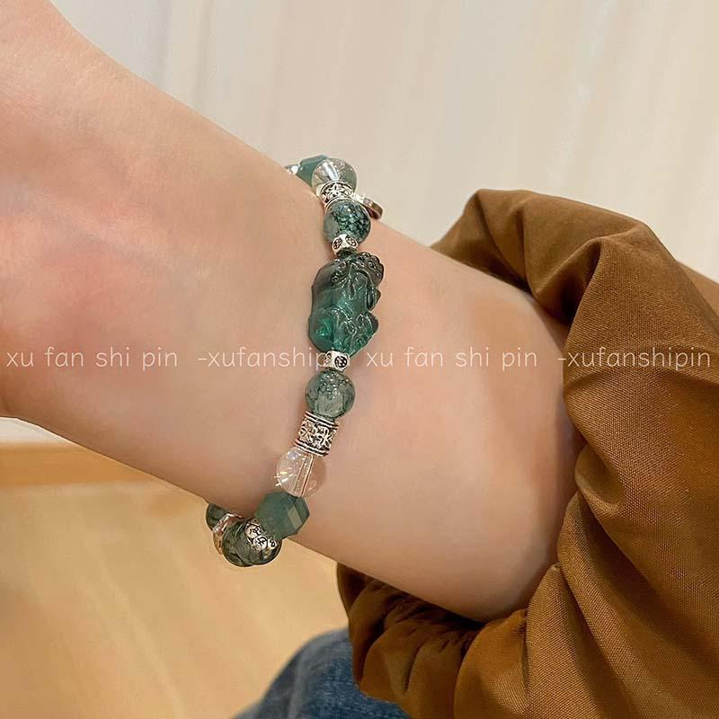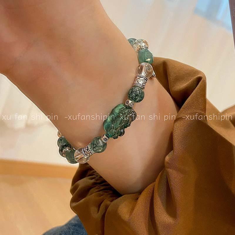 Pulsera elegante de estilo nacional 2023, personalidad femenina, temperamento simple, cuentas verdes, pulsera con etiqueta de personaje fu para novias