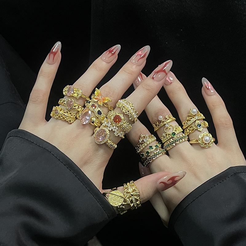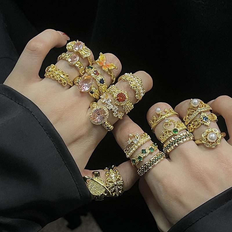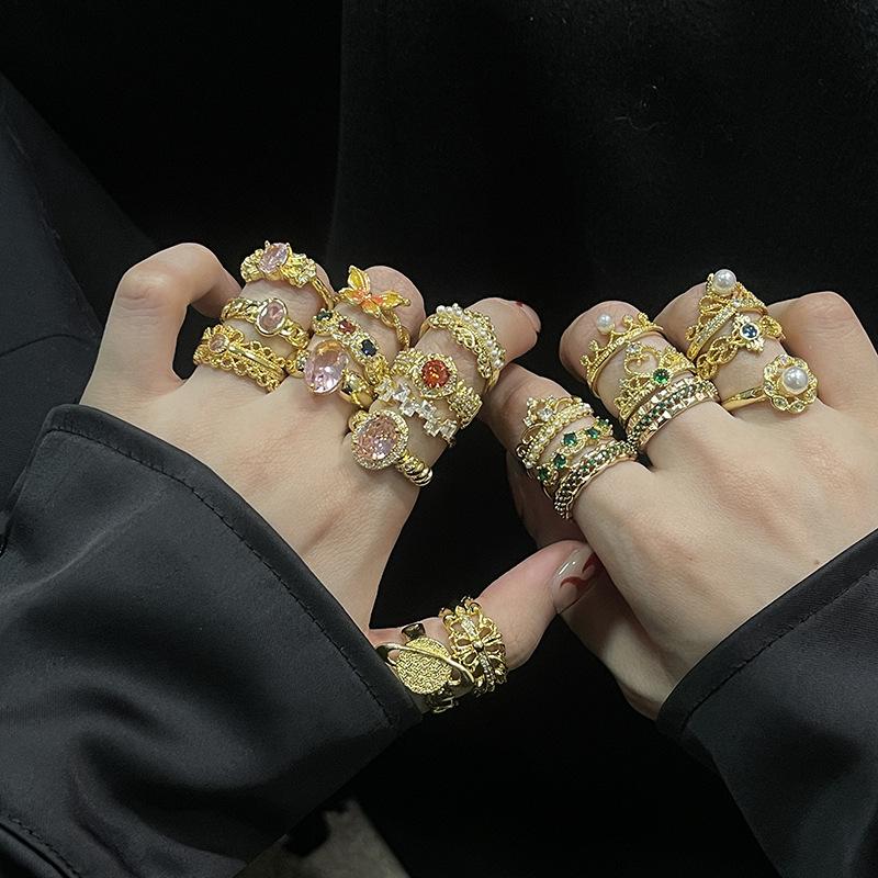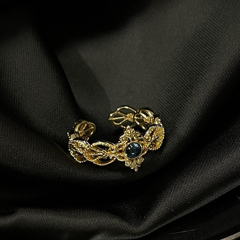 Anillo abierto estilo palacio retro de la serie Eagle Gold, estilo francés de gama media y alta, diseño de nicho, anillo de lujo ligero, moda femenina.