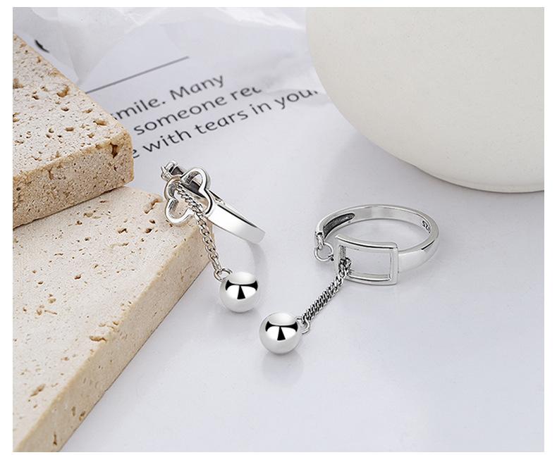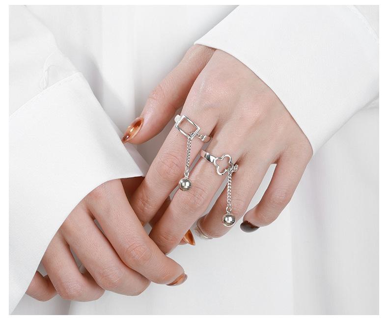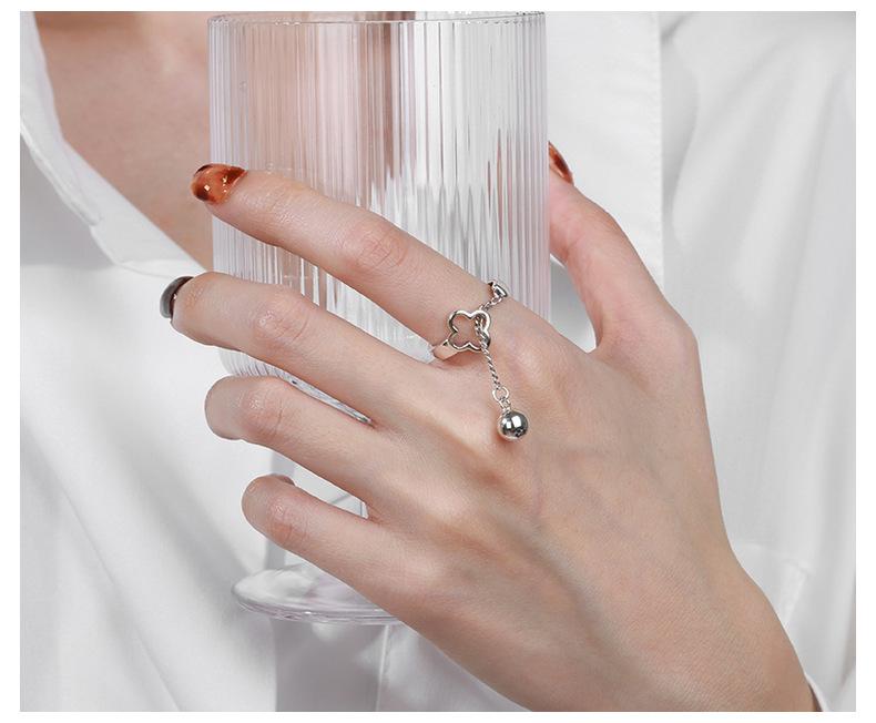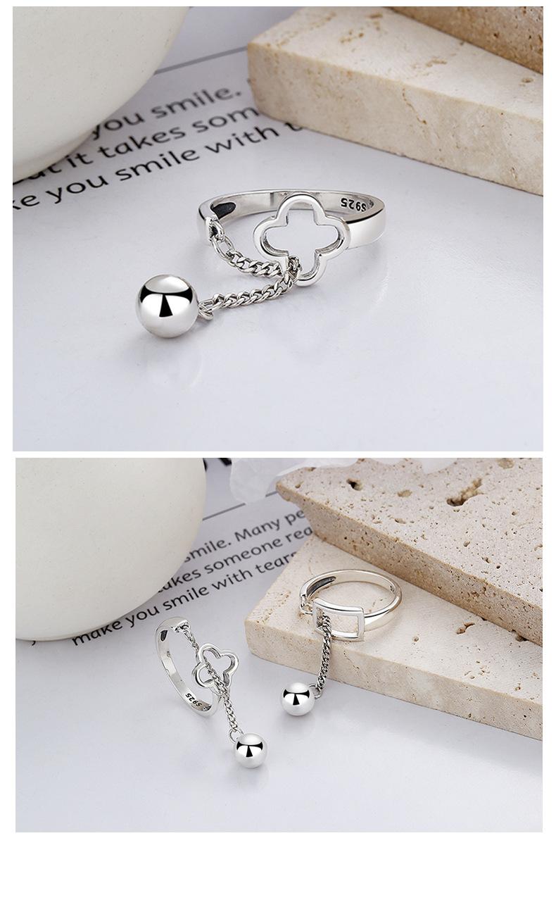 Compra Anillo de apertura de nicho con cadena de bolas redondas y borlas con costura de trébol de cuatro hojas hueco de Yun Chao Xuan S925 en plata esterlina coreana al por mayor en Joom.pro